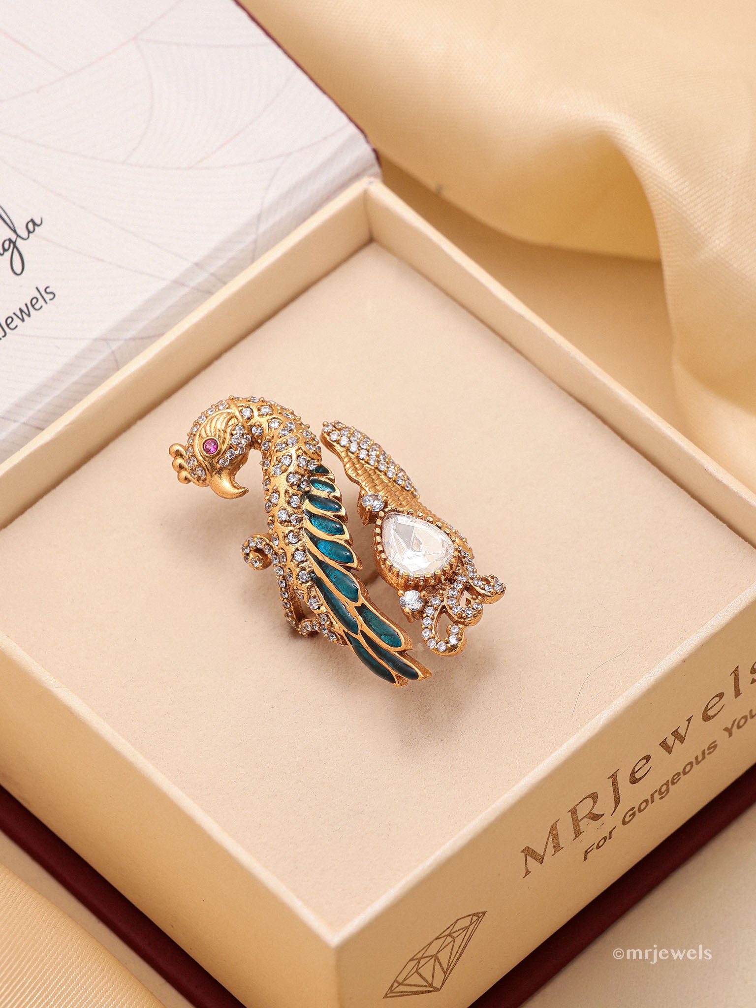 Majestic Peacock-Inspired Gold Bracelet / Kada
