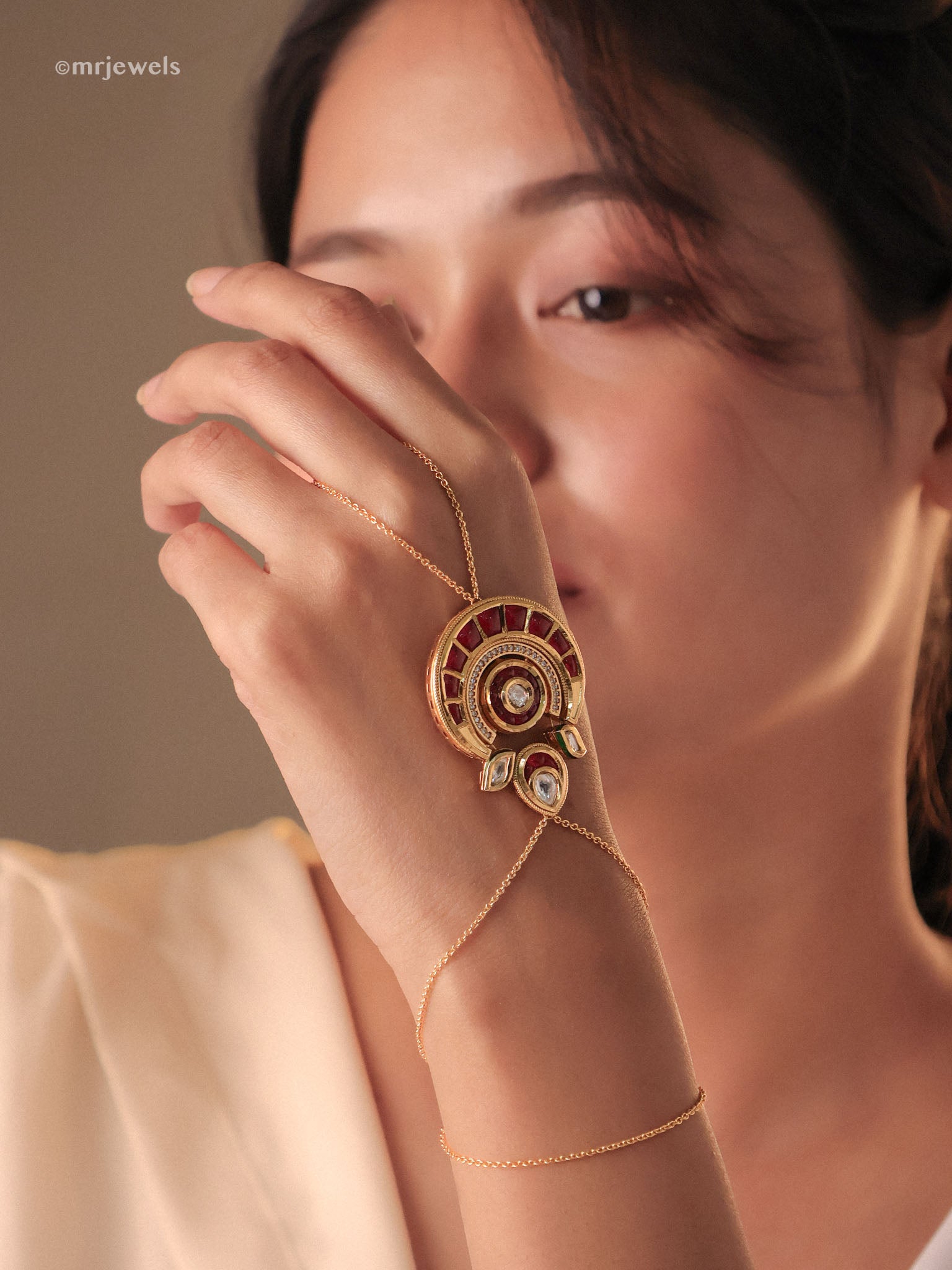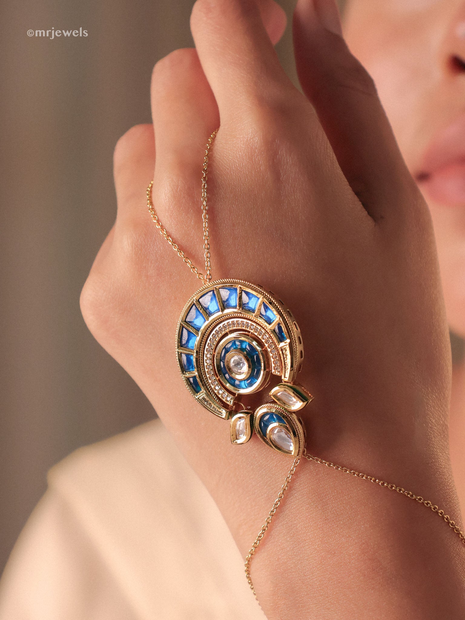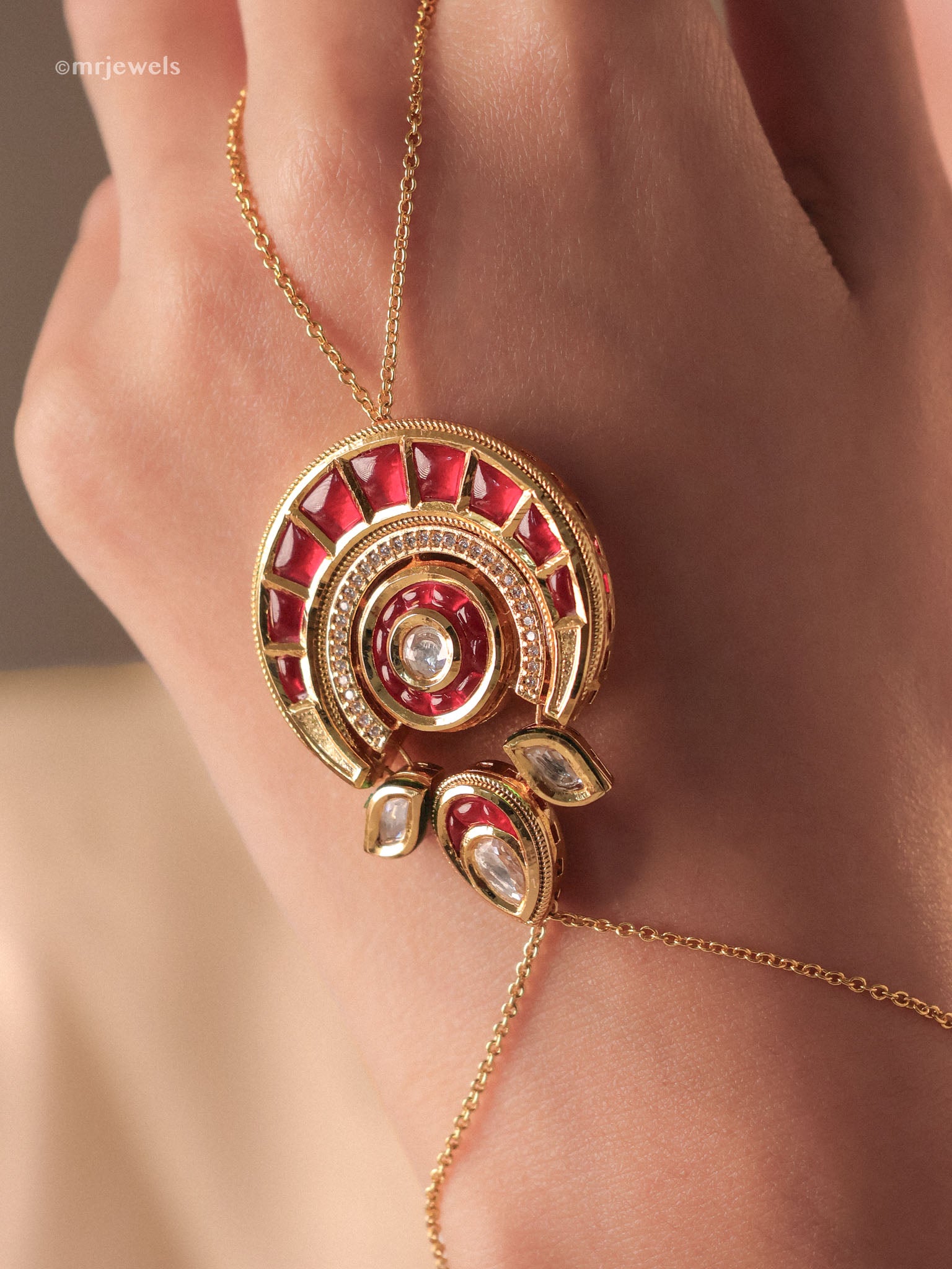 Rajwada Statement Meenakari Haathphool - Pair