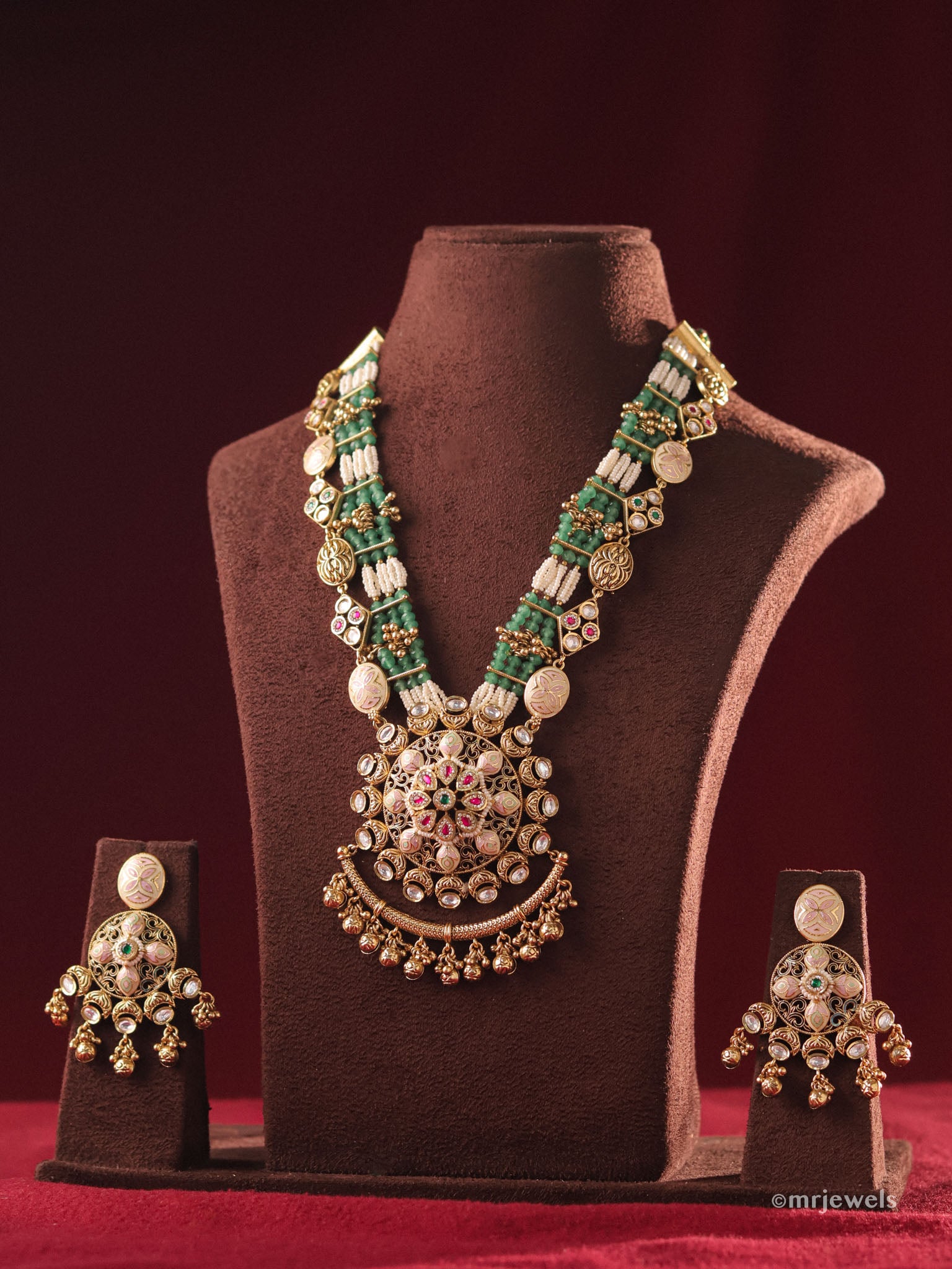 Sabyasachi inspired multi carved stone Cocktail necklace set