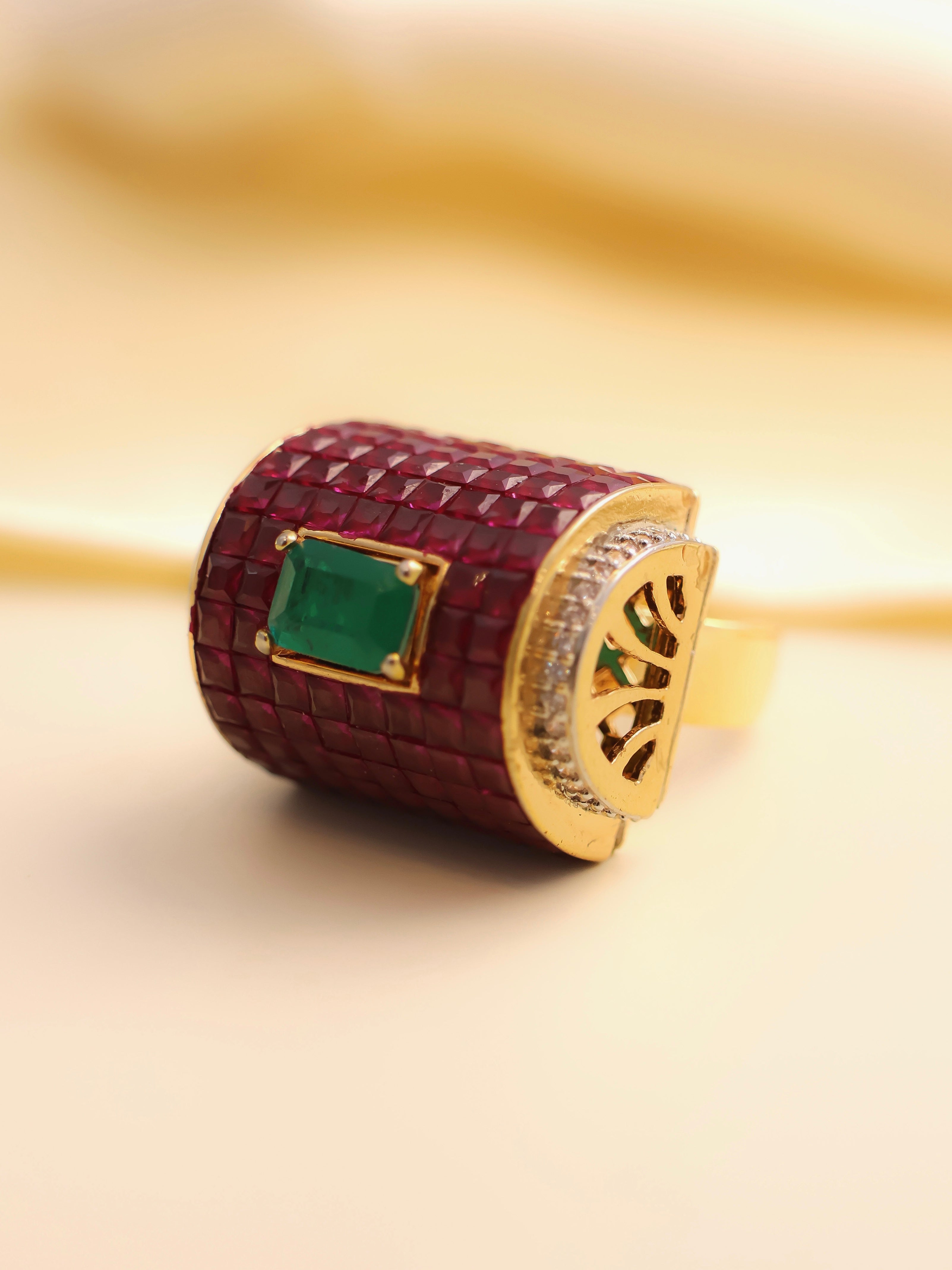 The Valentina Imperial Ruby & Emerald Ring- Free size