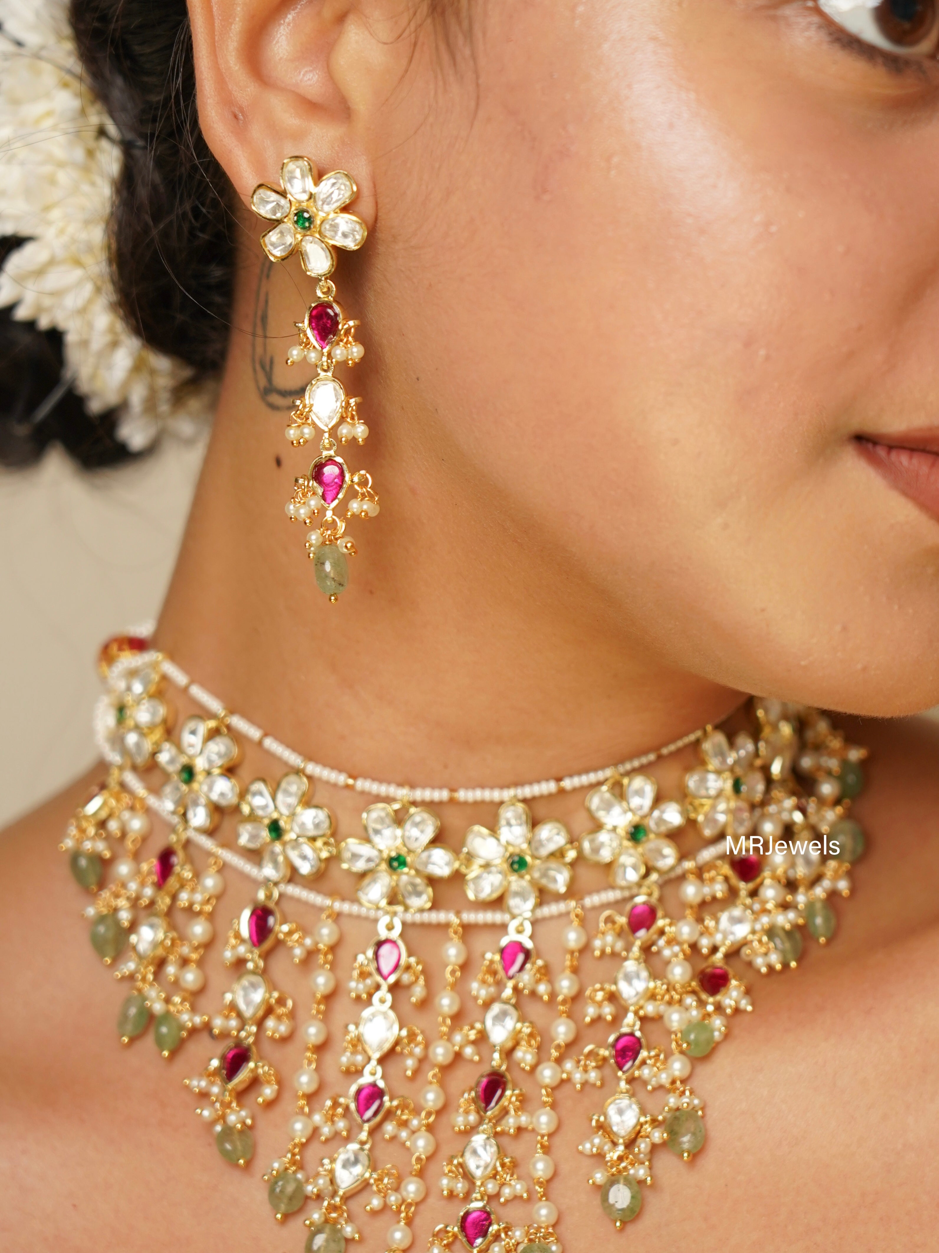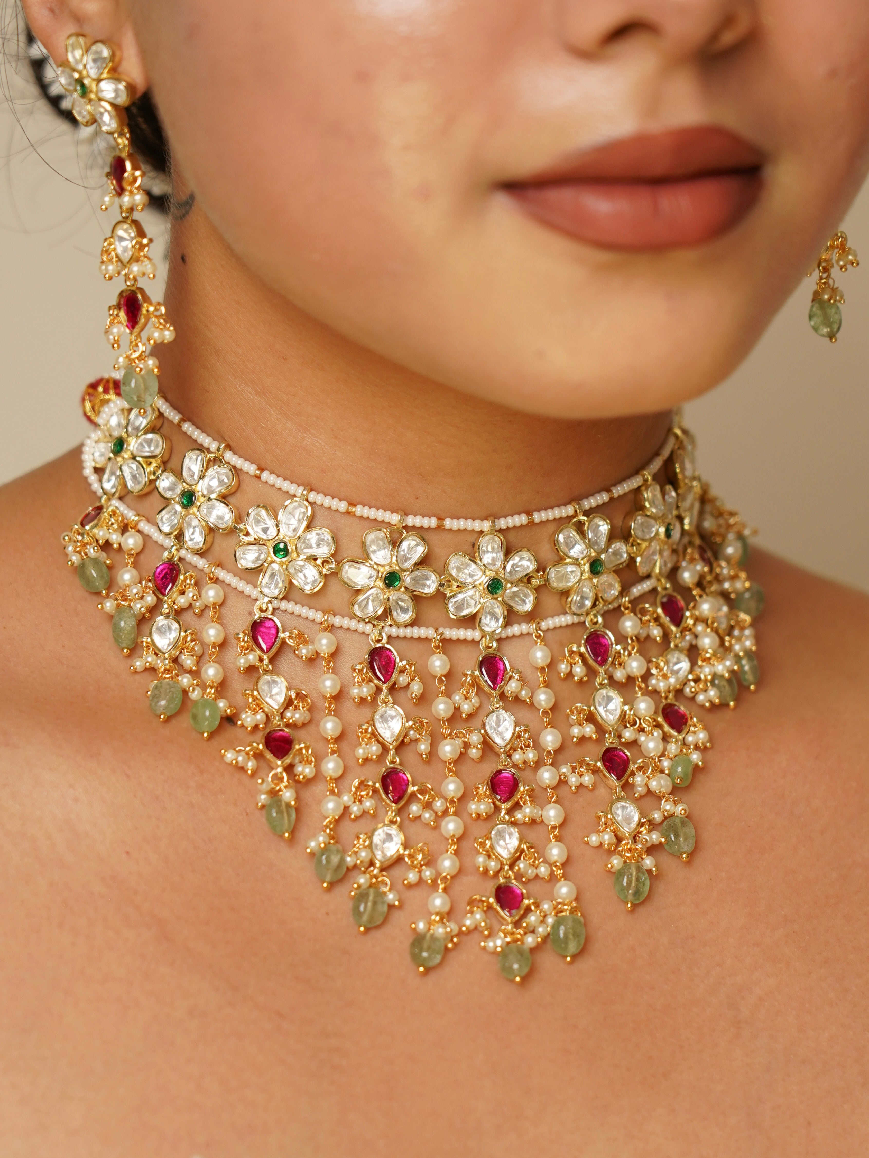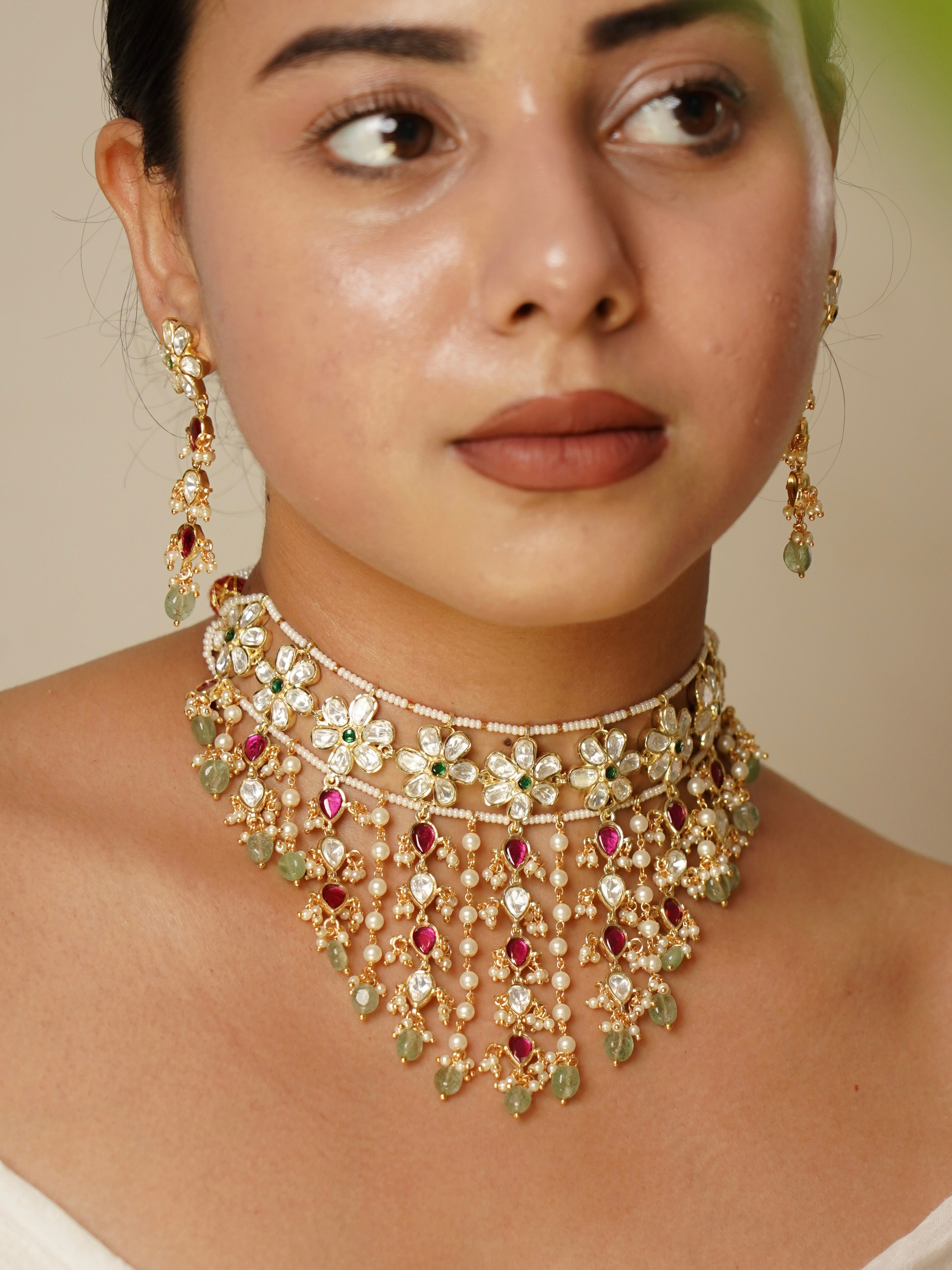 Shrishti Moissanite Fall Polki choker Set