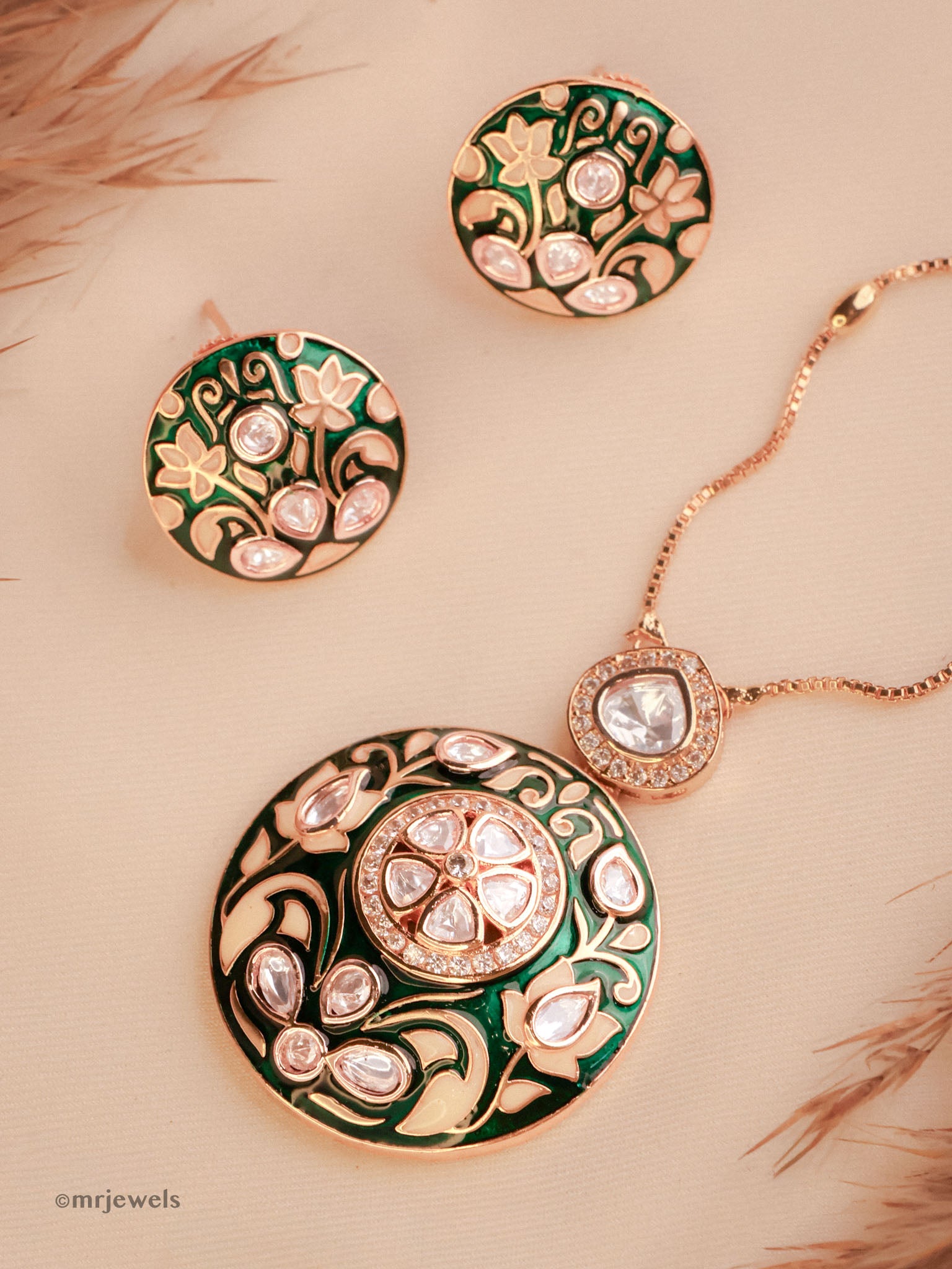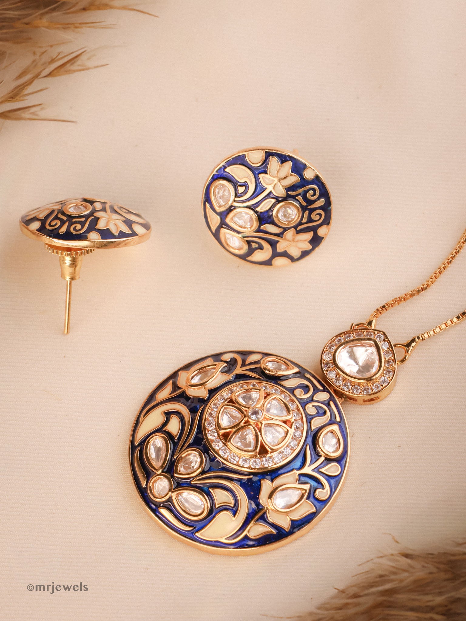 Sapphire Bloom Pendant Set- Gold-Plated Floral Jewelry