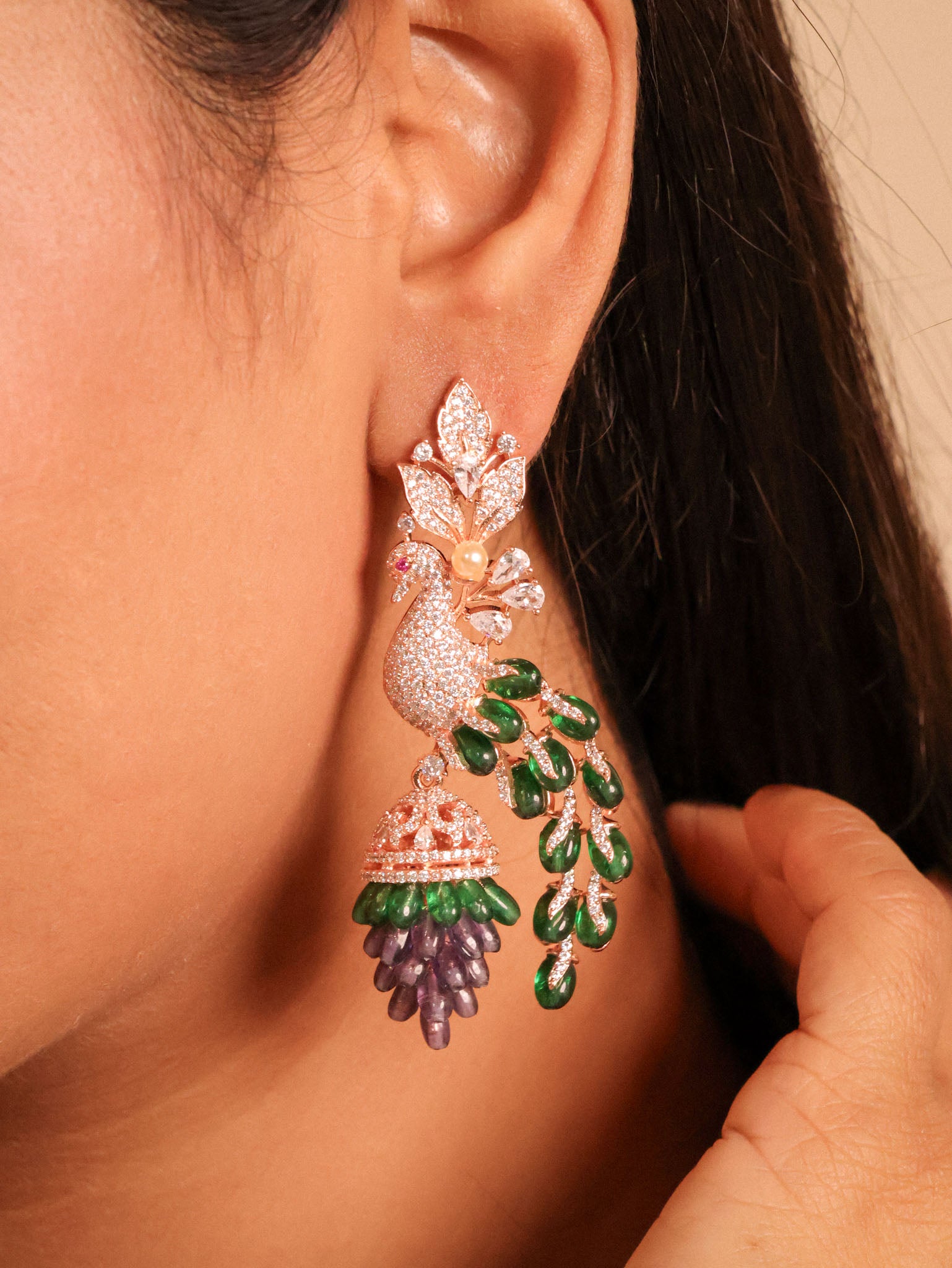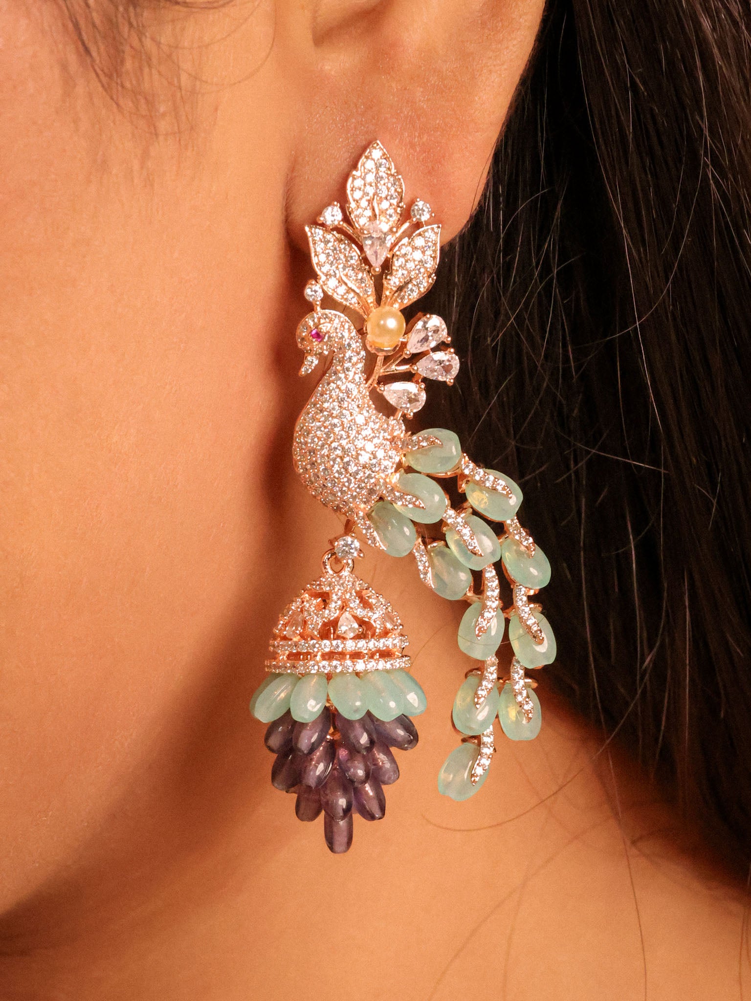 Luxury Peacock Statement Earrings with Gemstone Drops