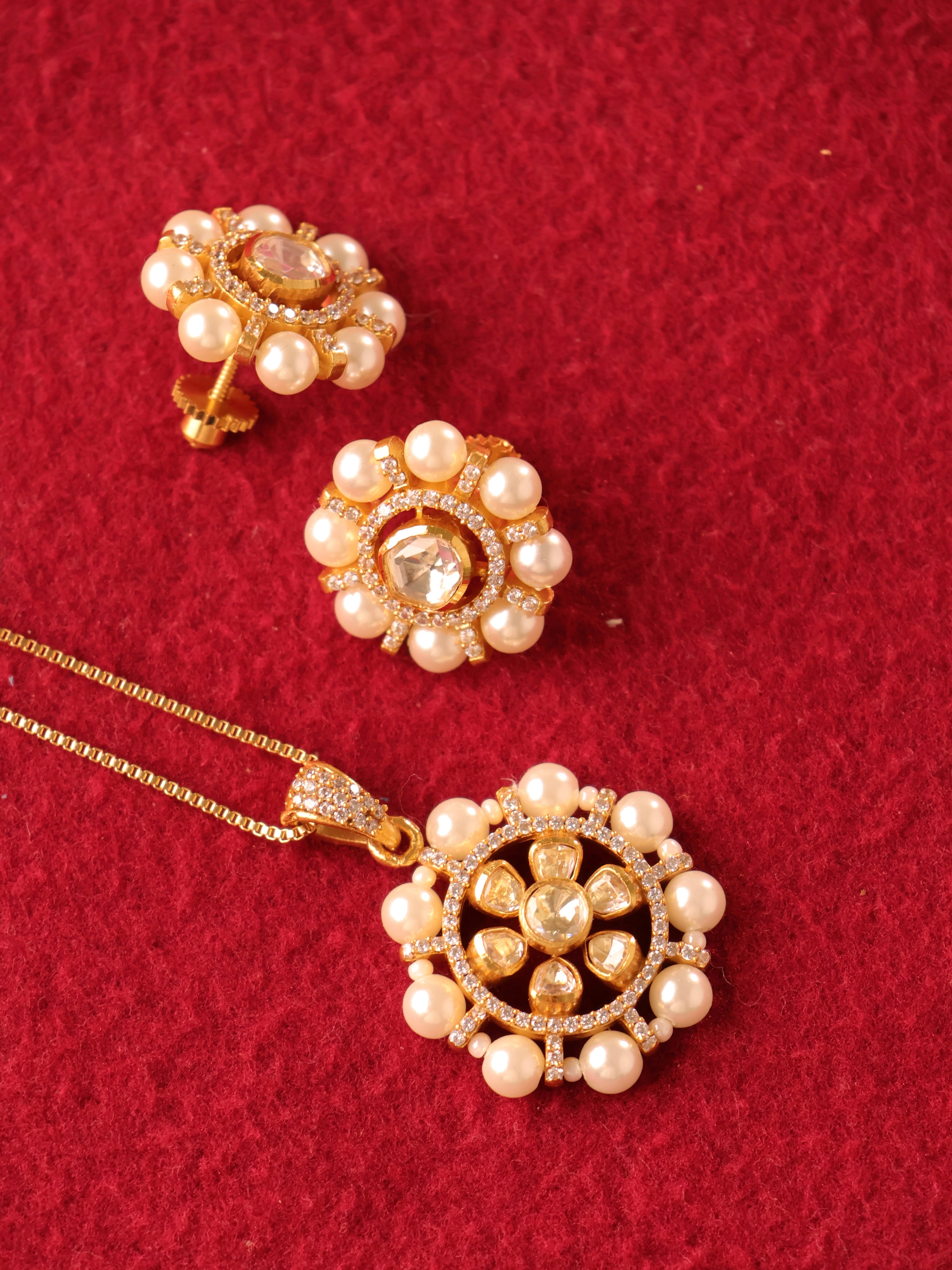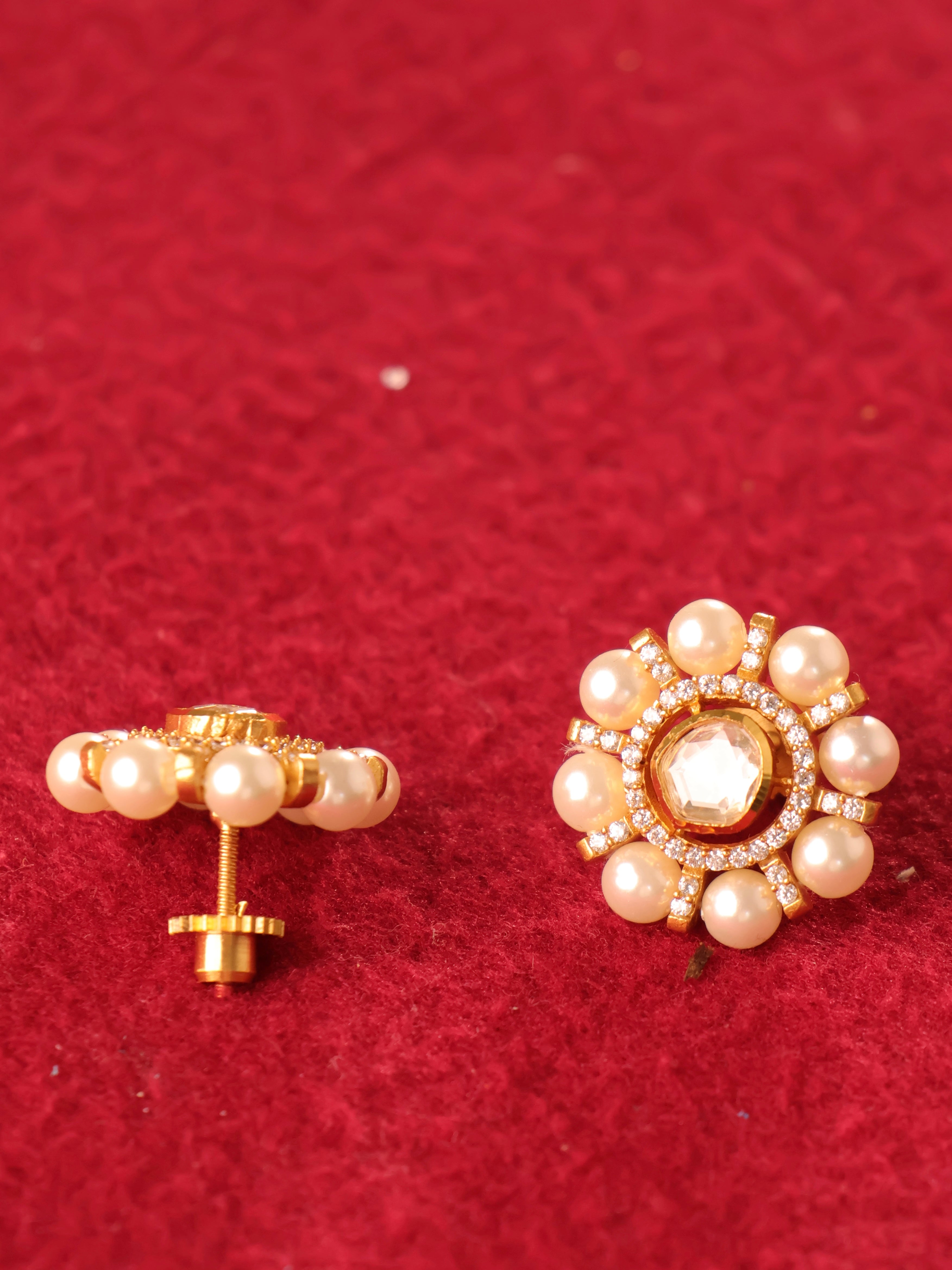 Kundan Chandbali Earrings with Pearls & Meenakari