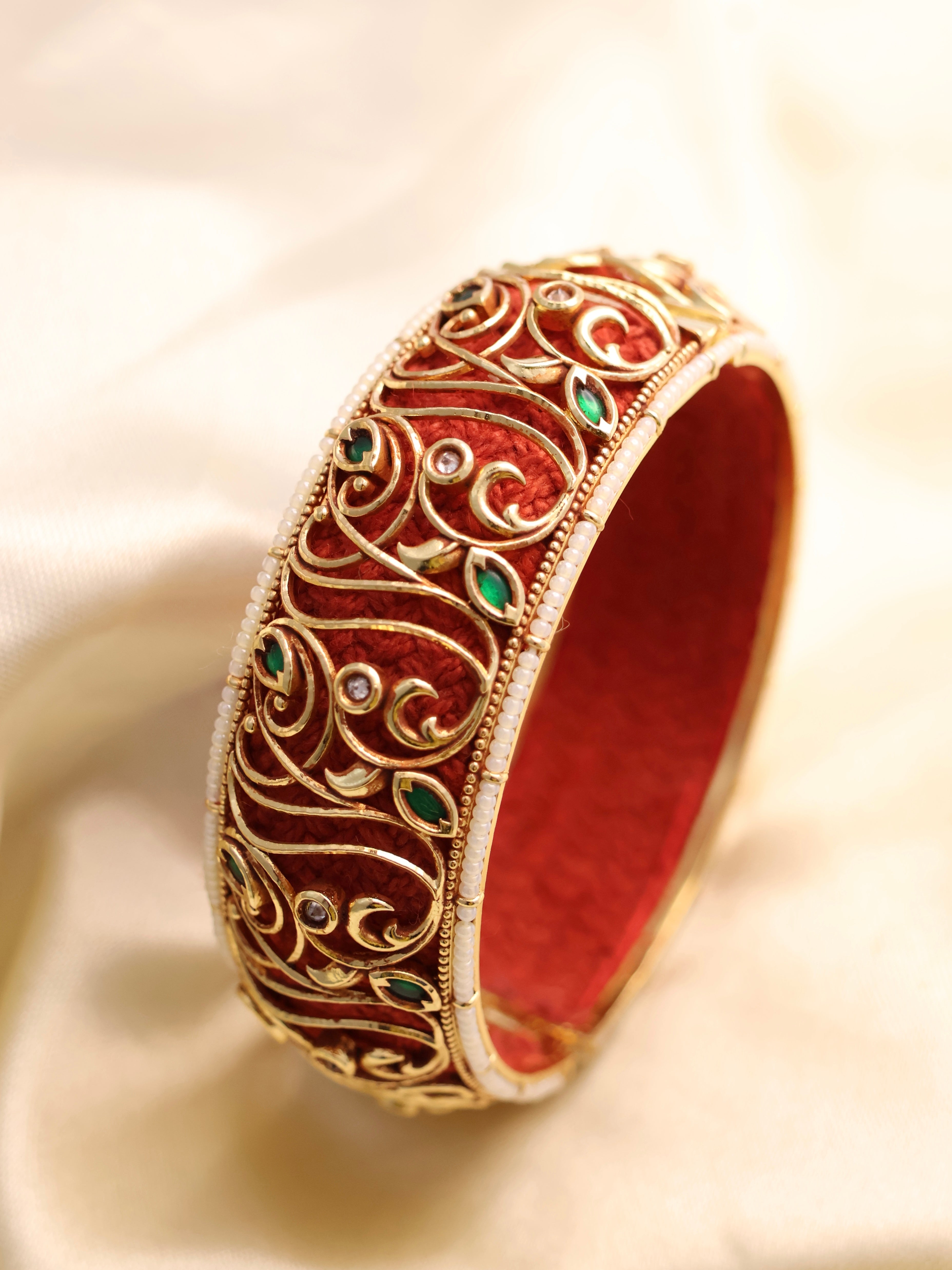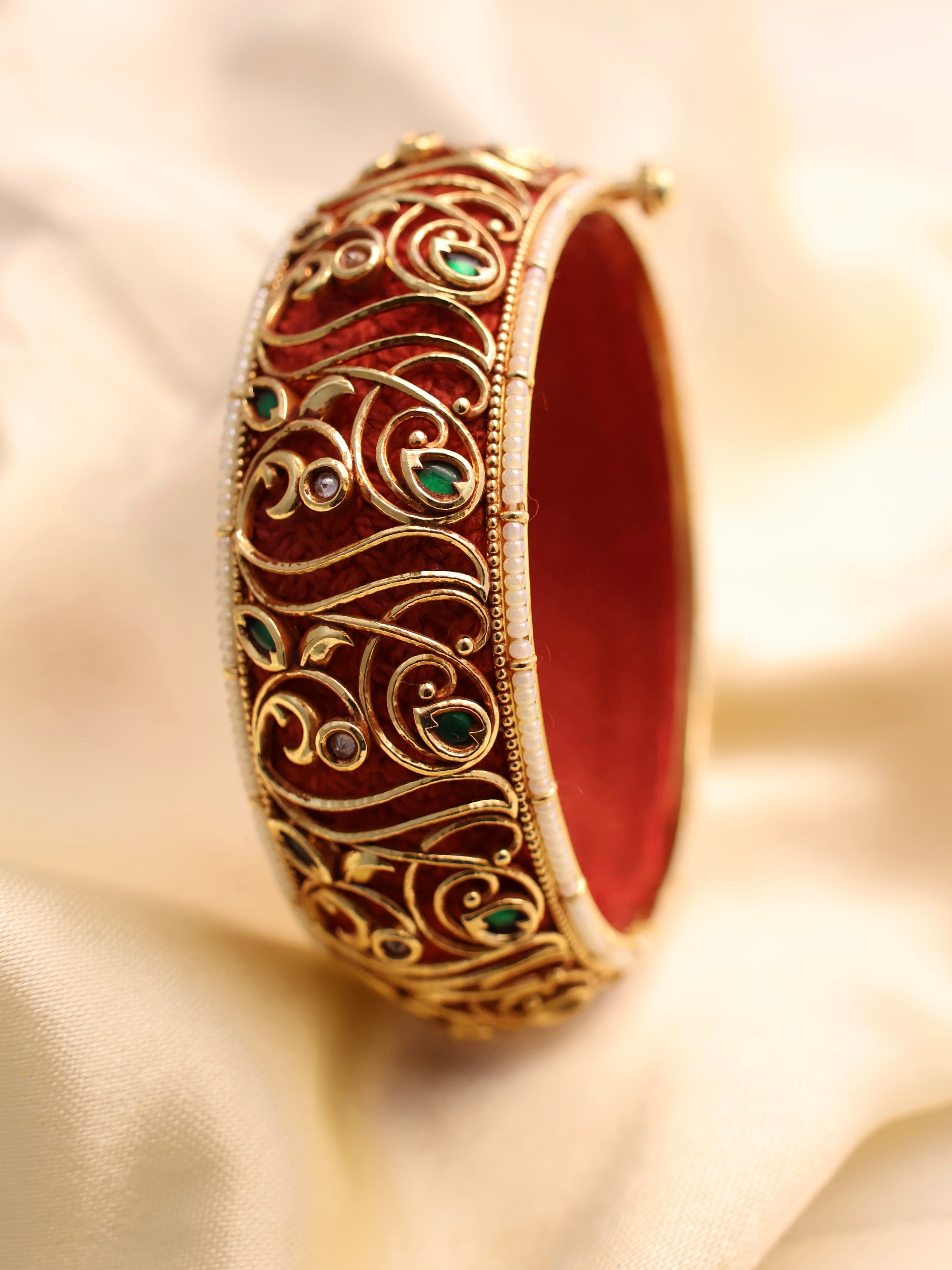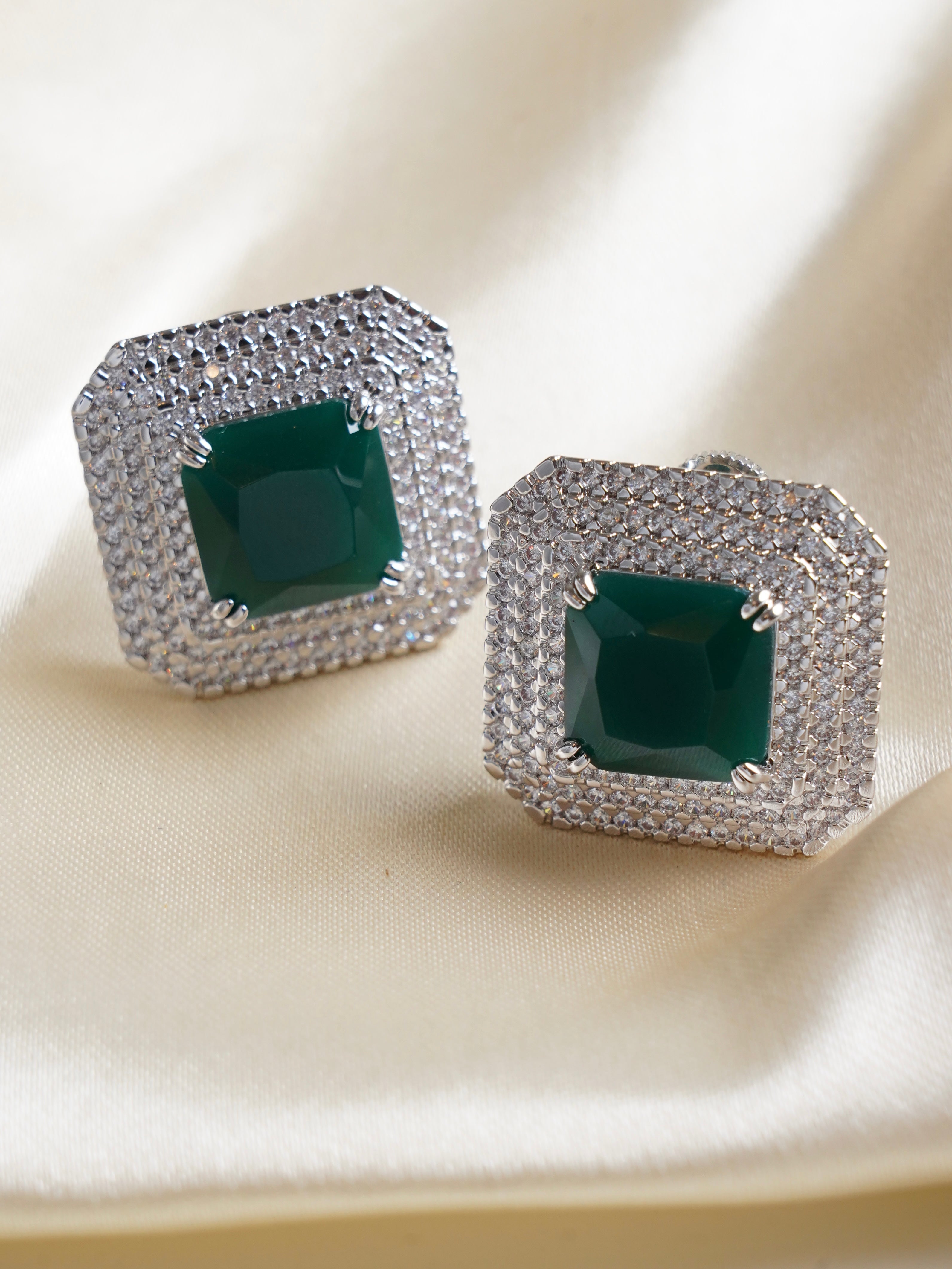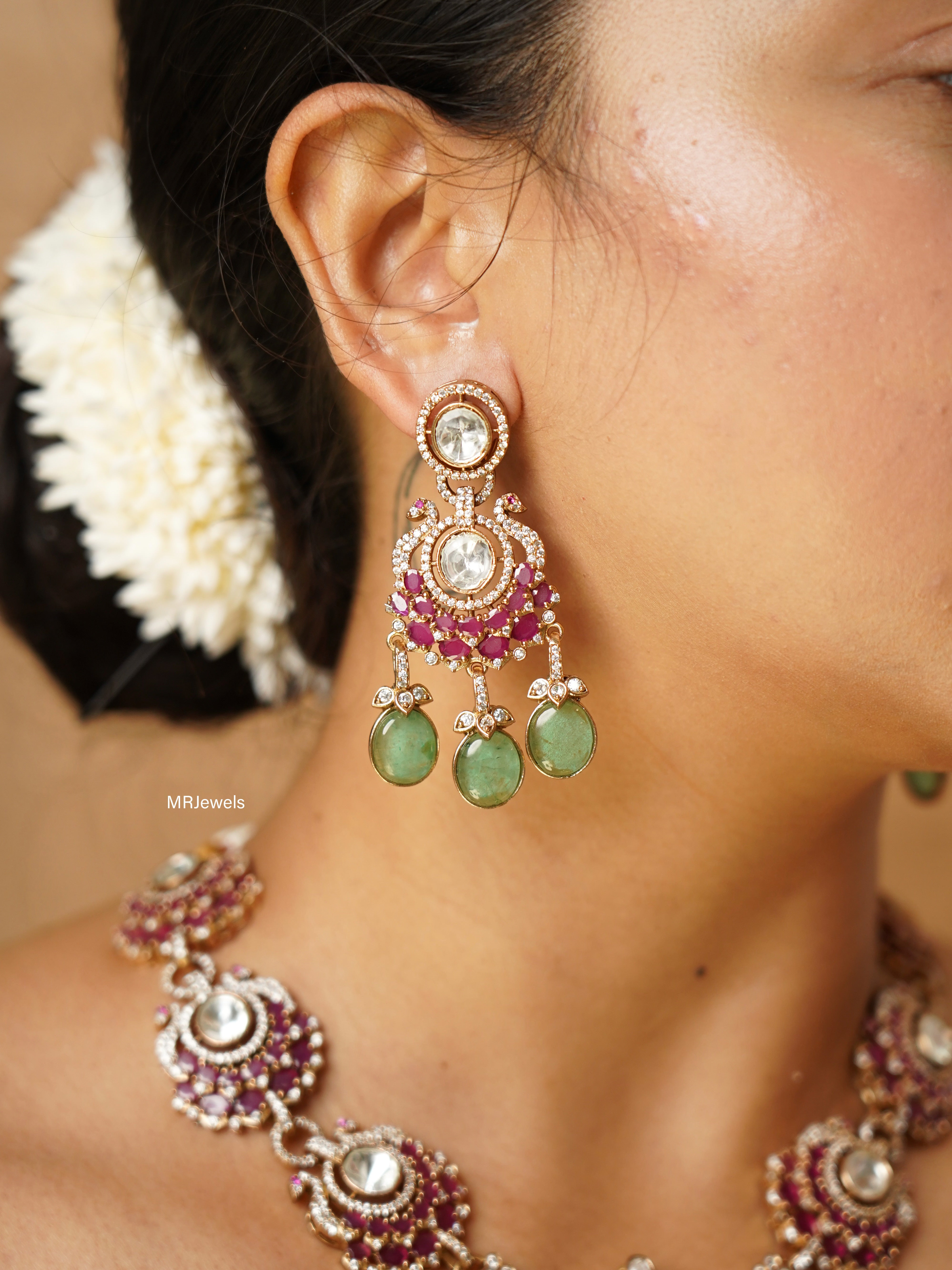 Aabroo Red Enamel Studs & Emerald Bead Choker Set