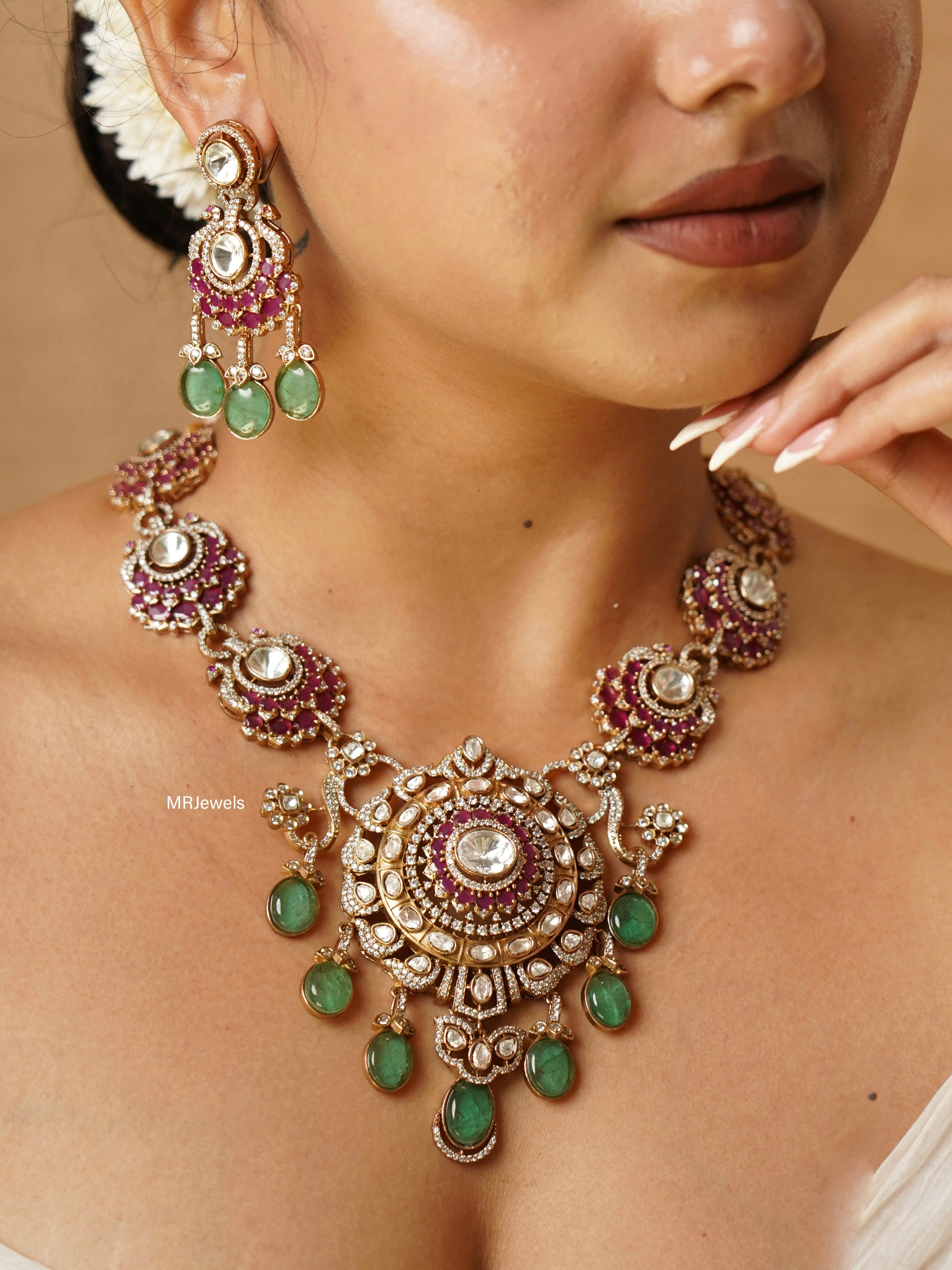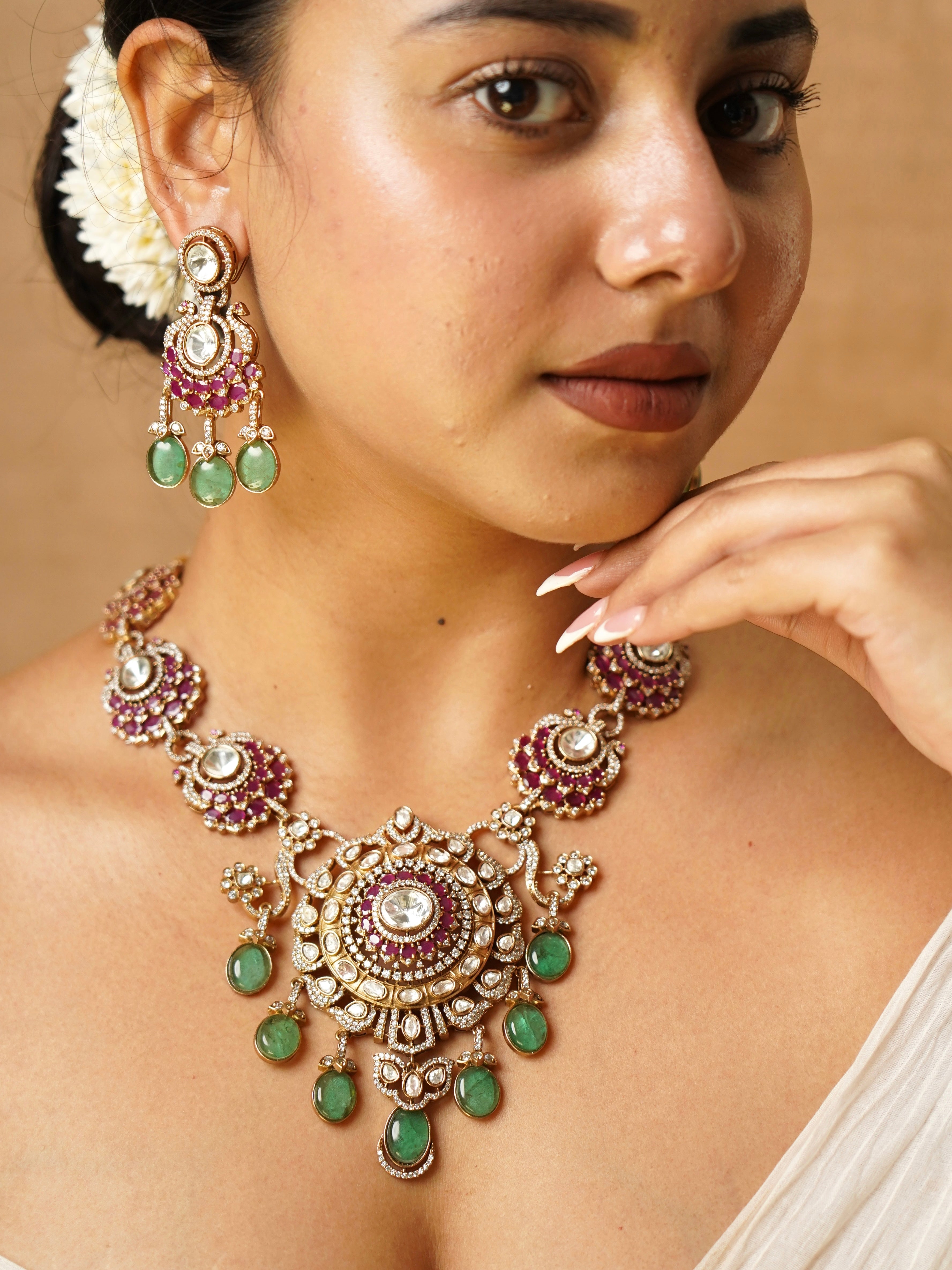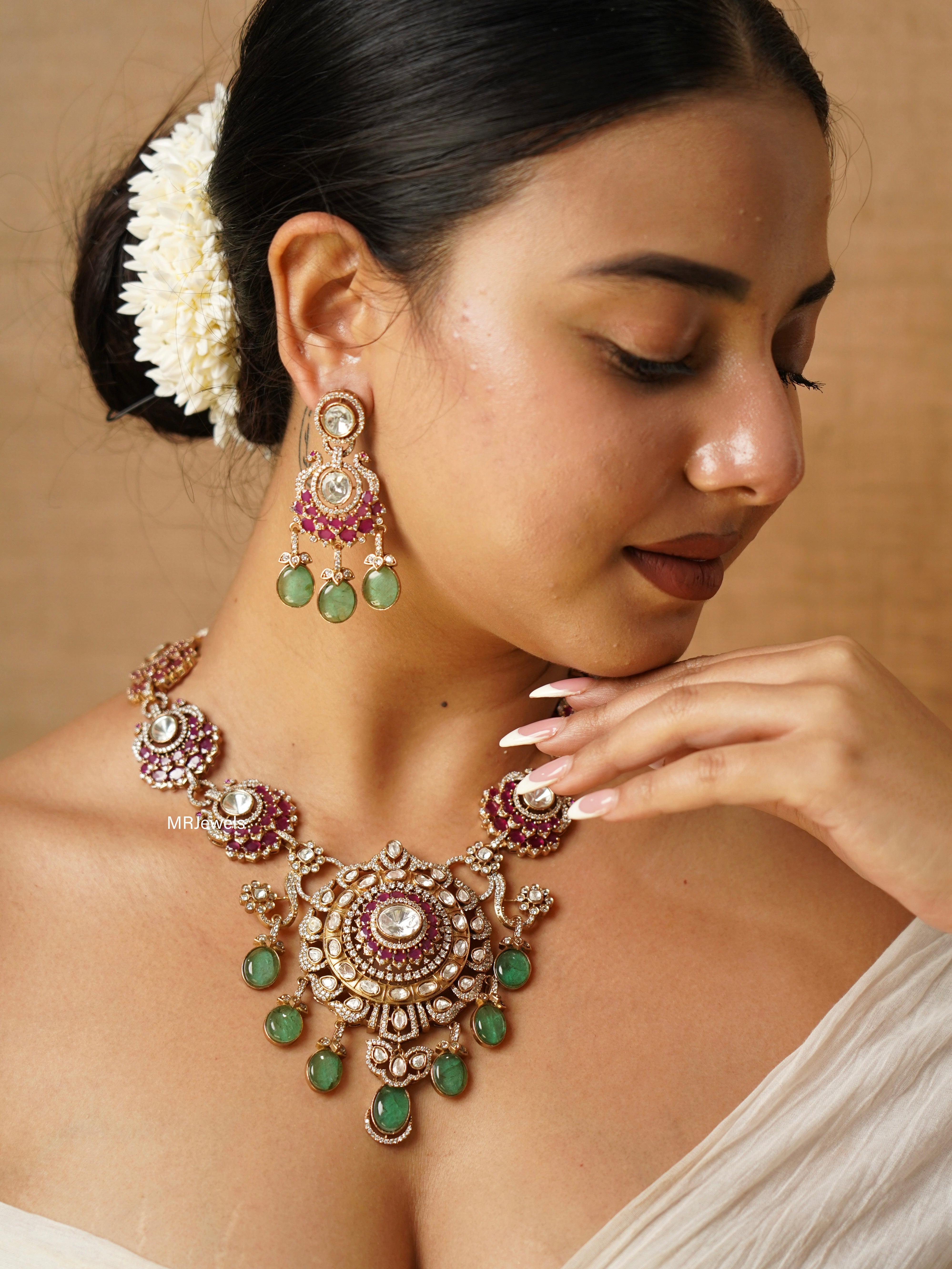 Saira Kundan-Meenakari Set with matching earrings and maangtikka
