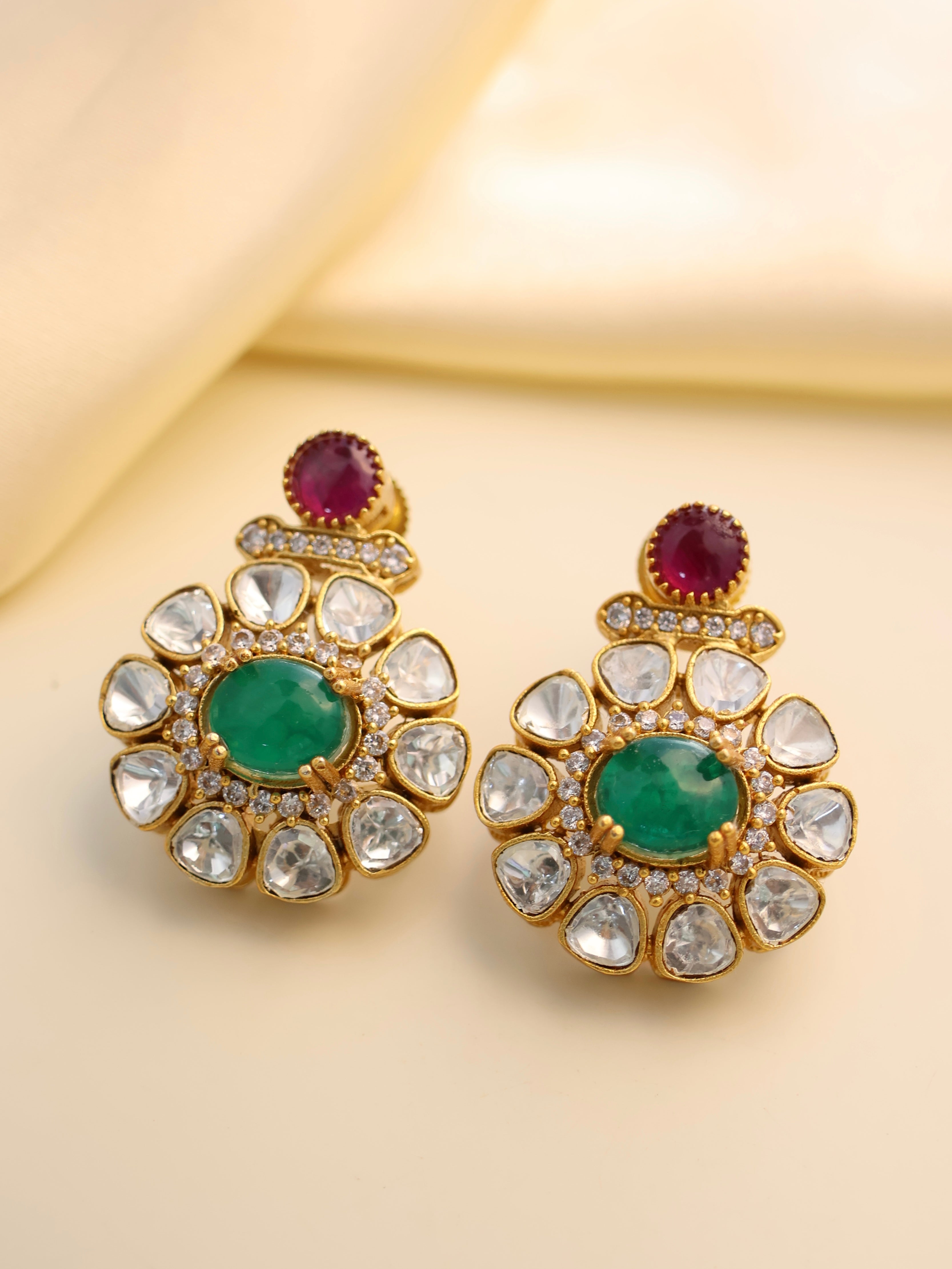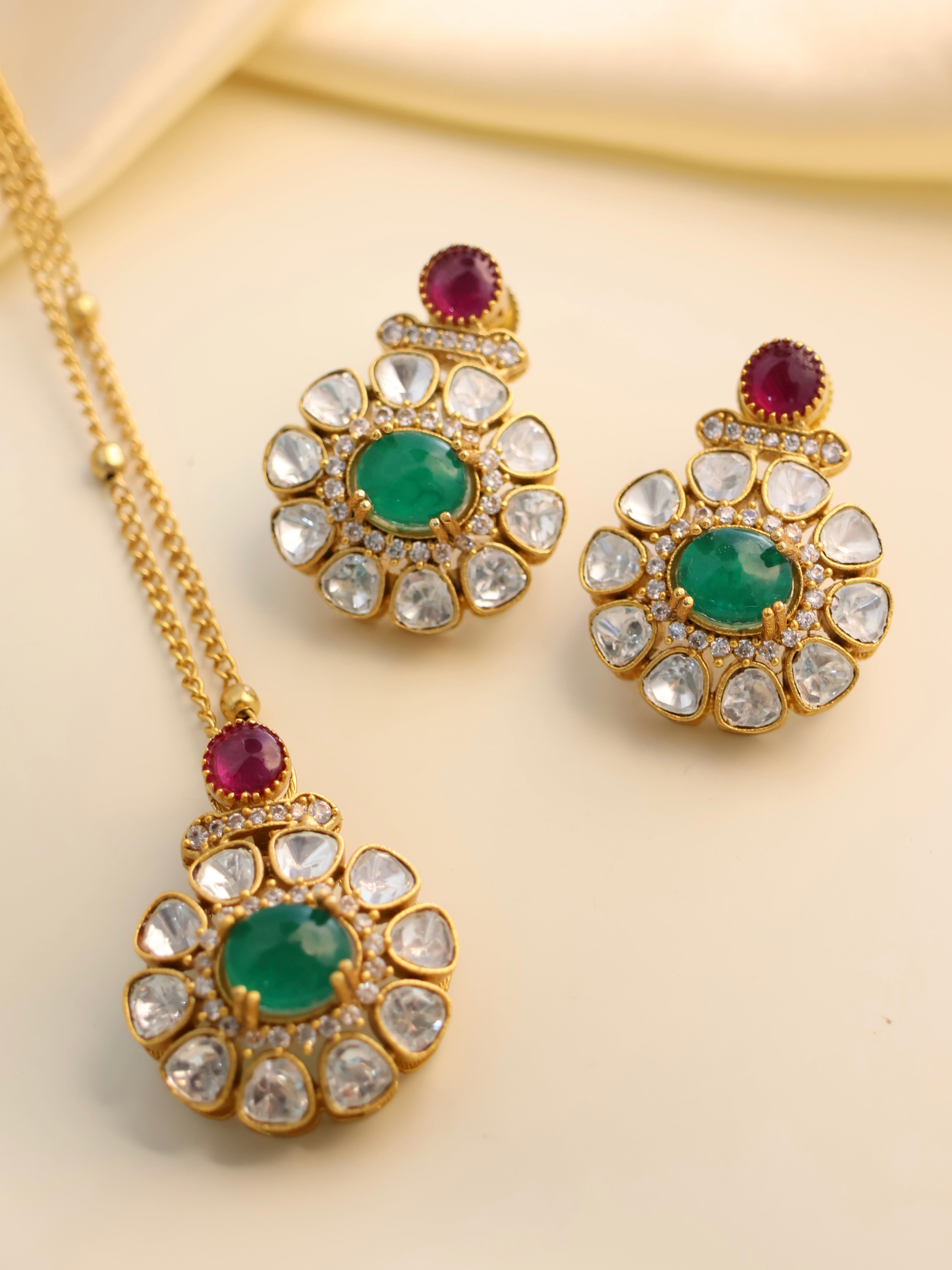 Nita Ambani inspired long Emerald Necklace set with matching earrings-Limited pieces