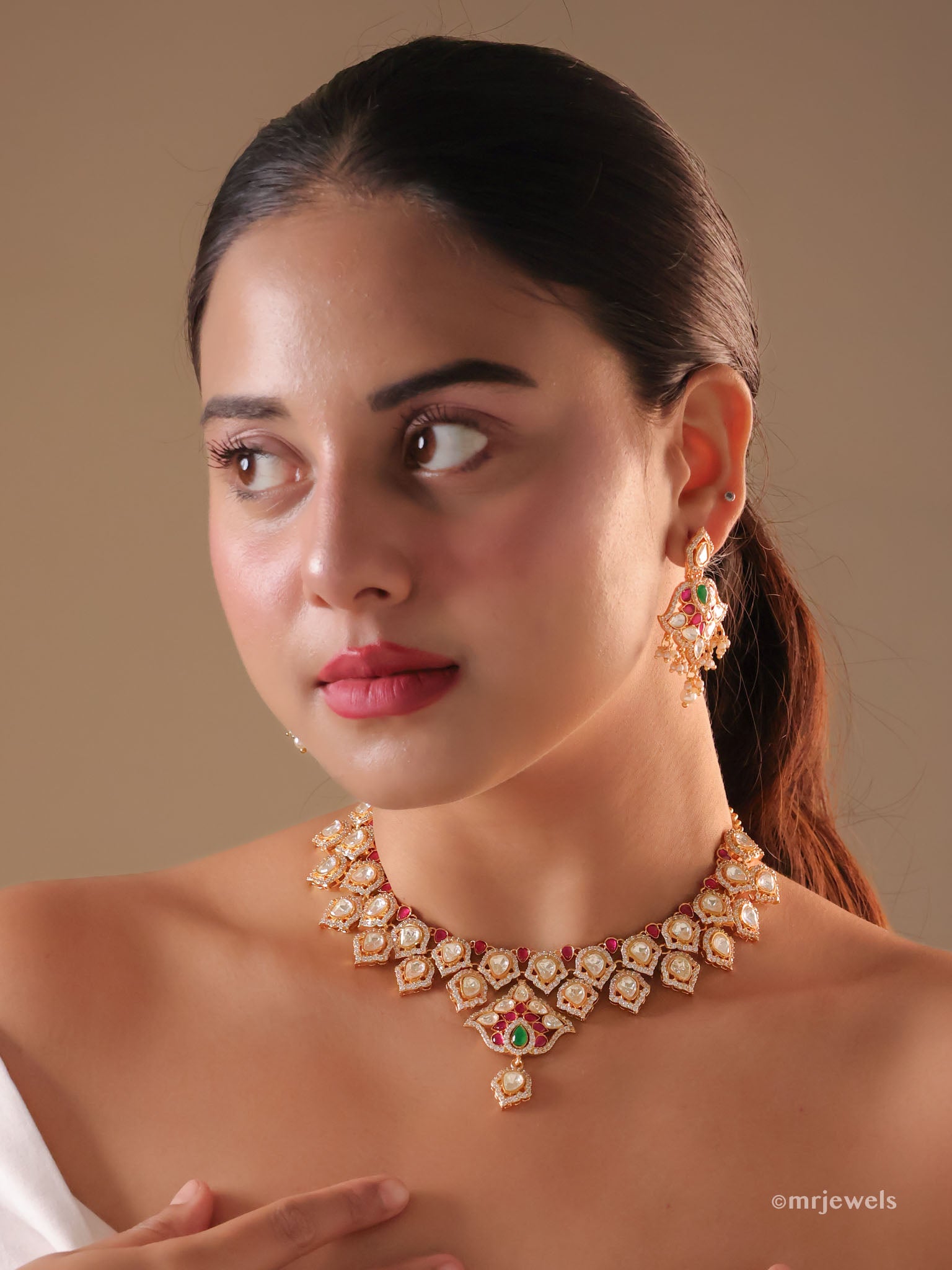 Designer Gold Plated Royal Kundan Necklace with Earrings