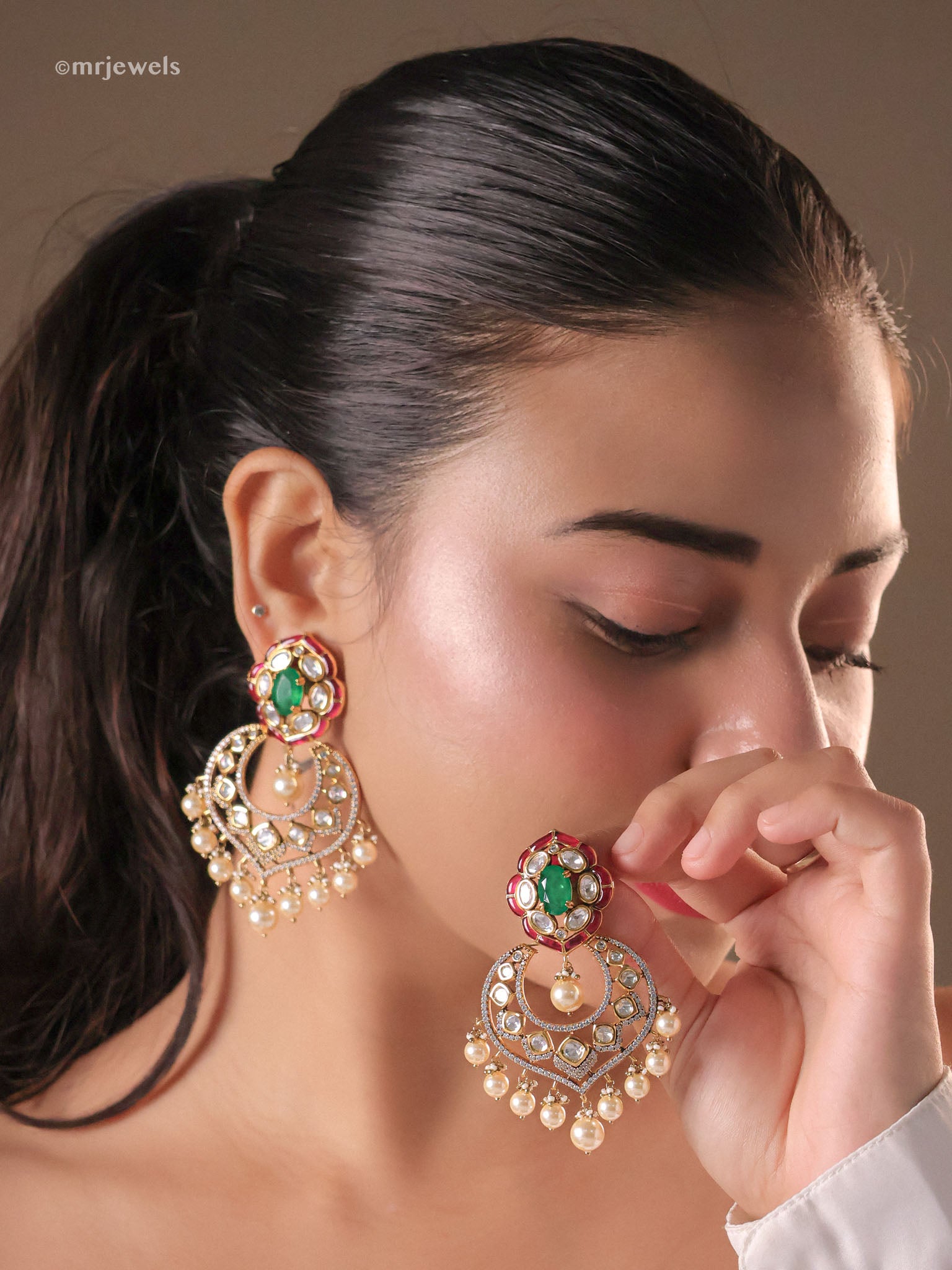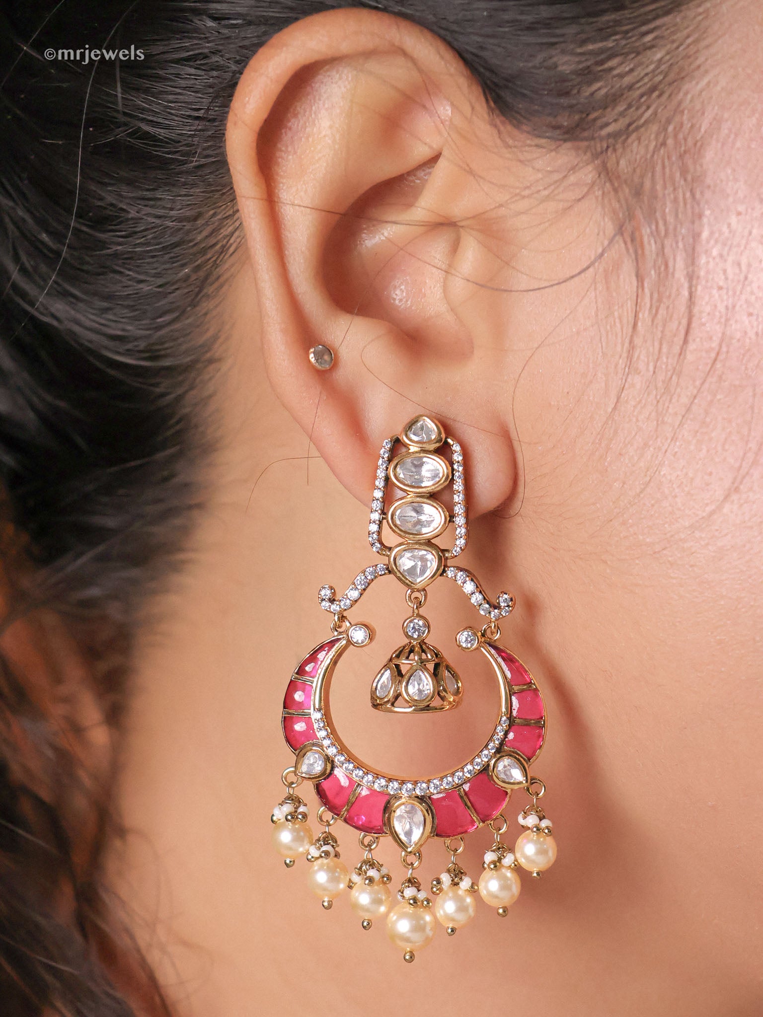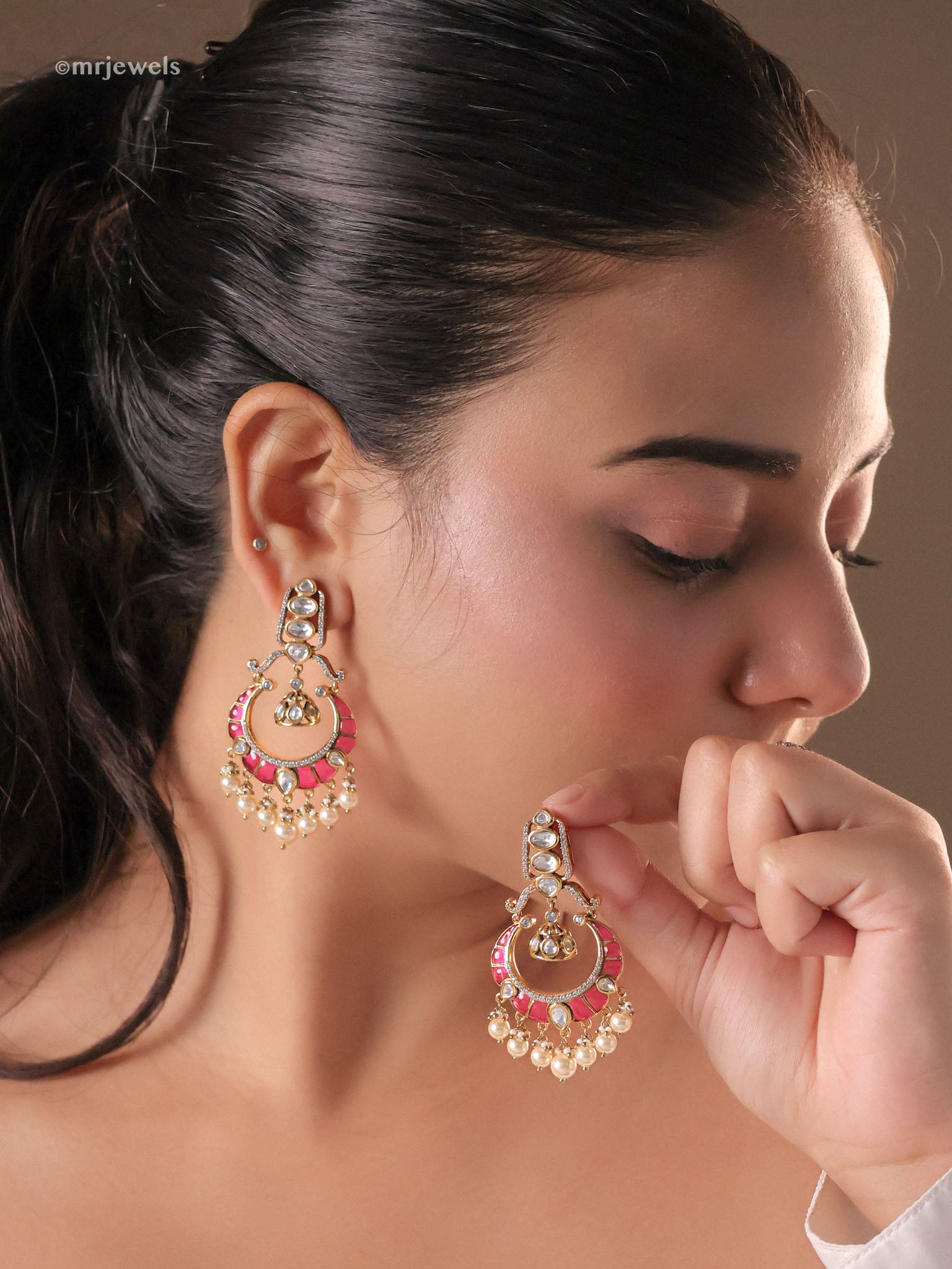 Meheraba Gulabi Meenakari Kundan Chandbalis