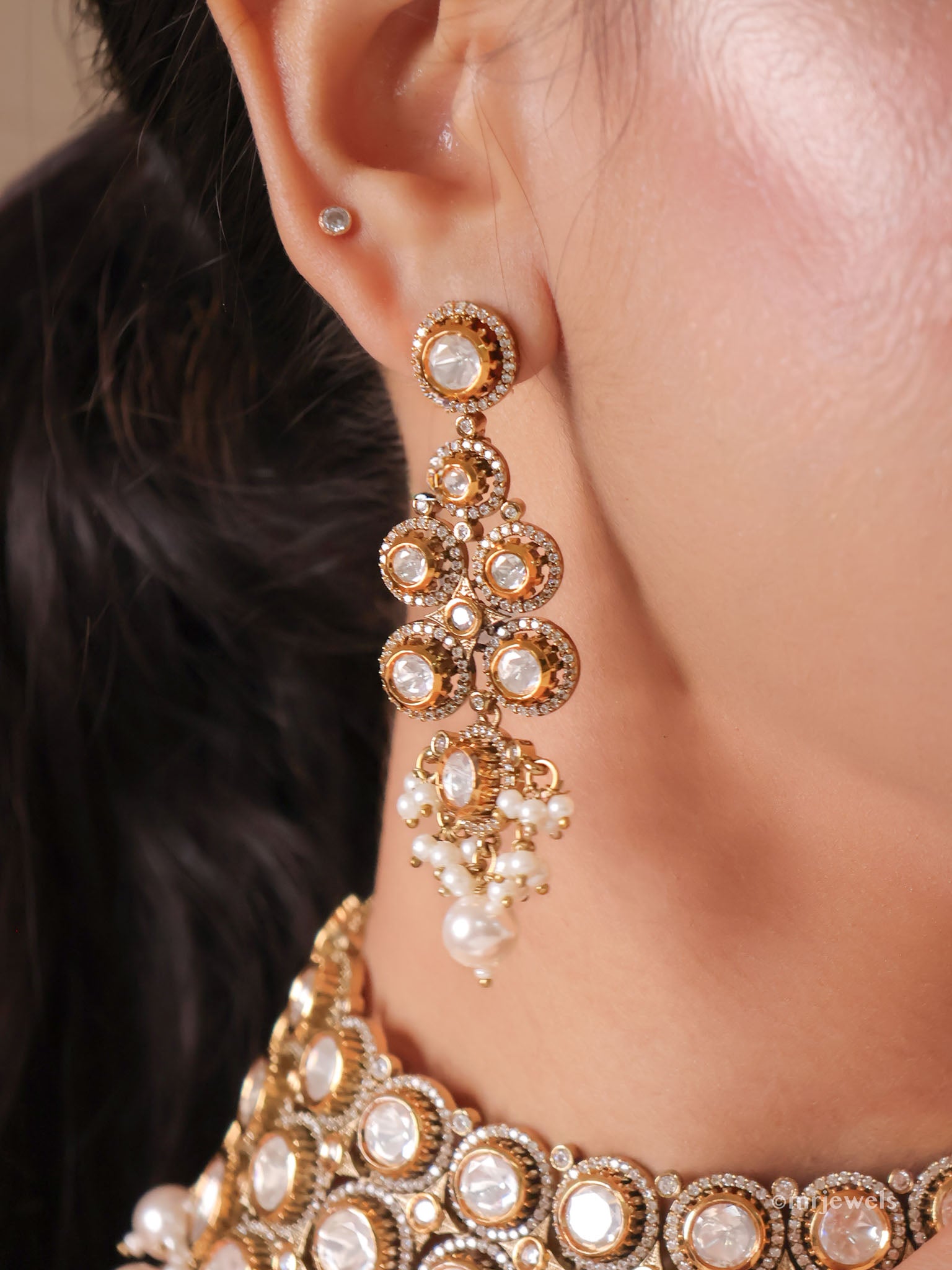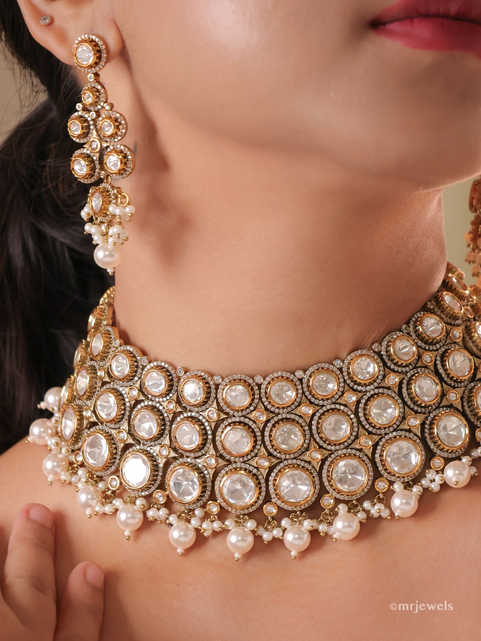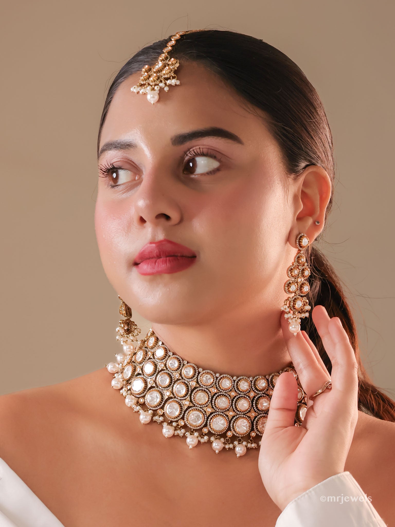 Noor-e-Gul Round Polki Pearl Choker Set (Necklace, Earrings & Maang-Tikka)
