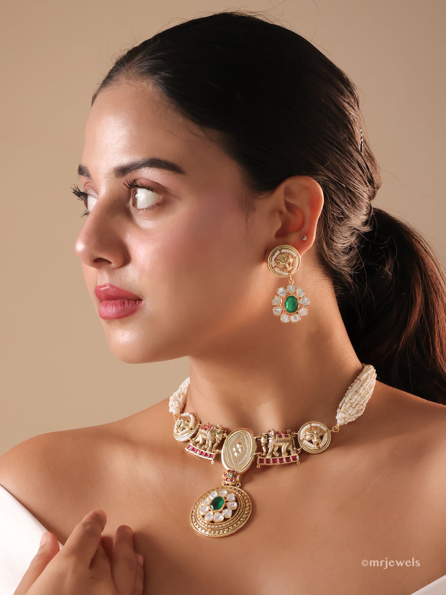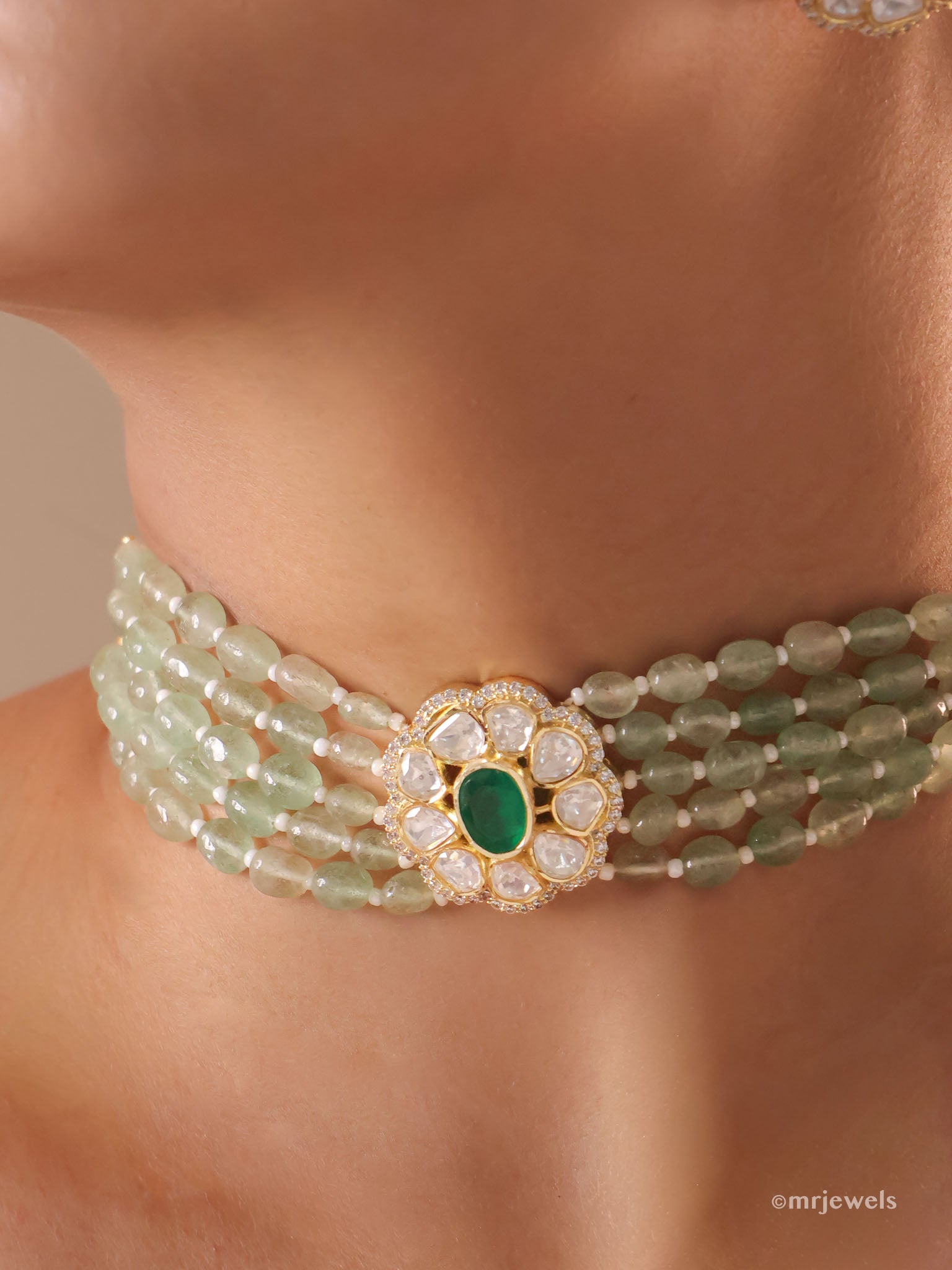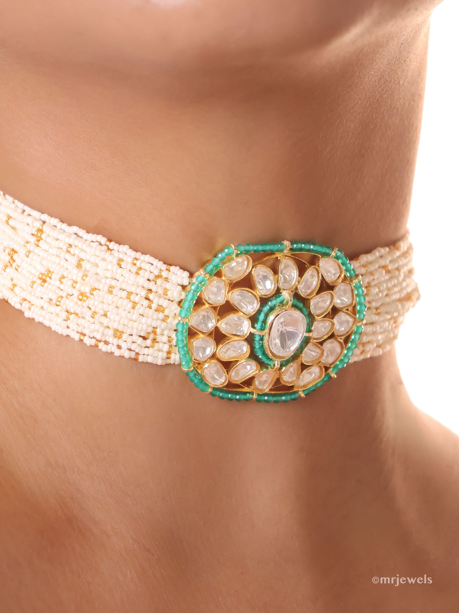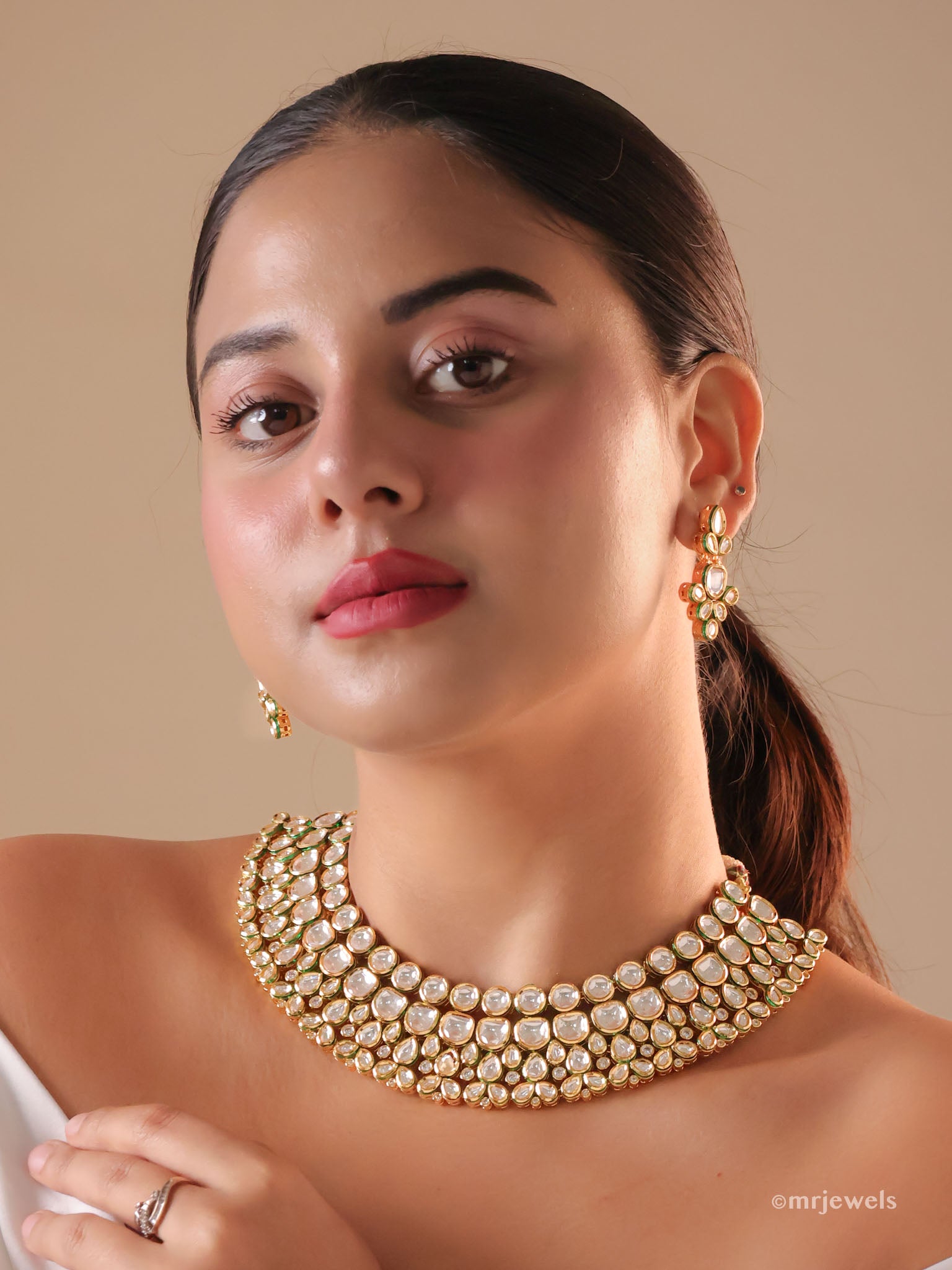 Baiza Emerald Polki Hasli Choker Set (with Studs)