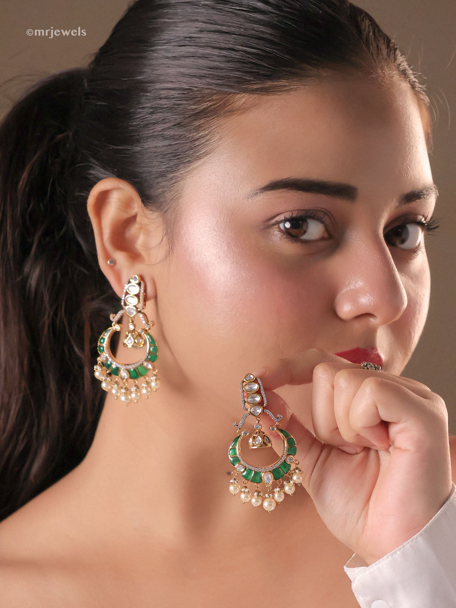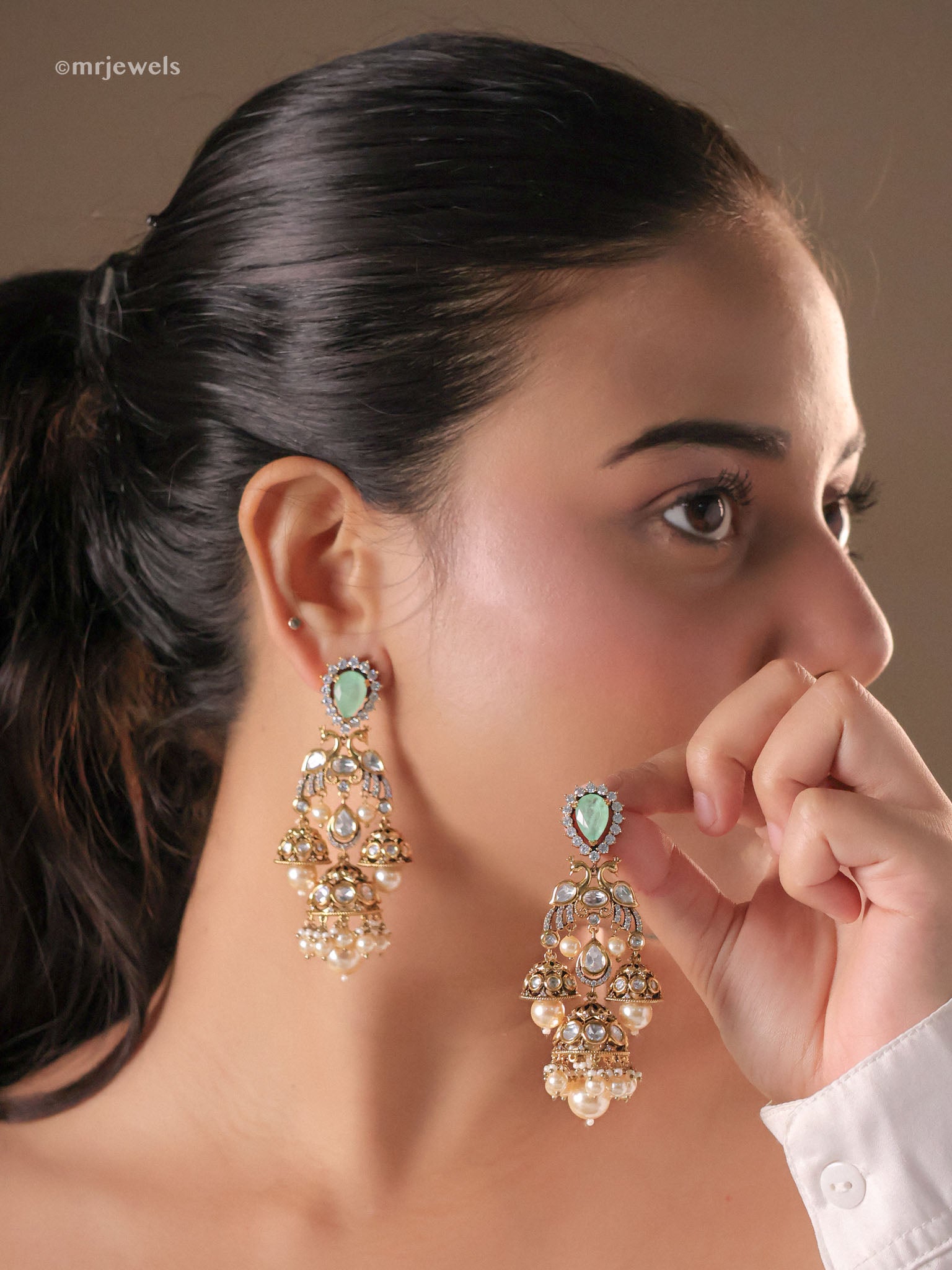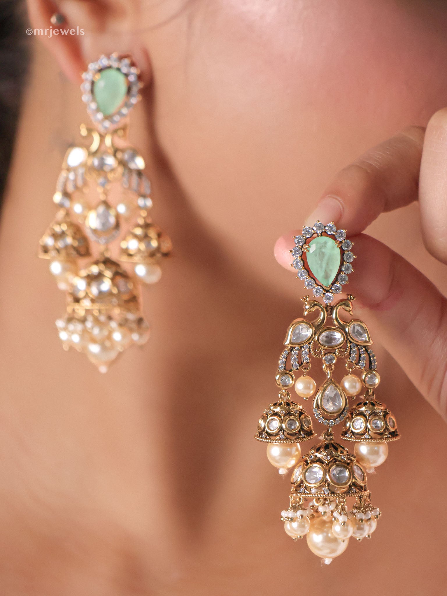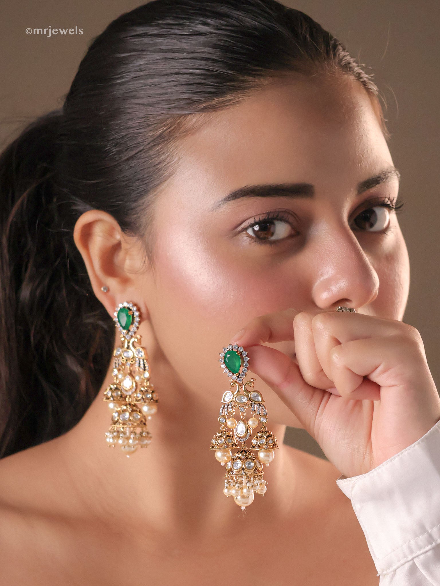Morni Regal Triple Jhumka Danglers (Ruby/Emerald/Mint)
