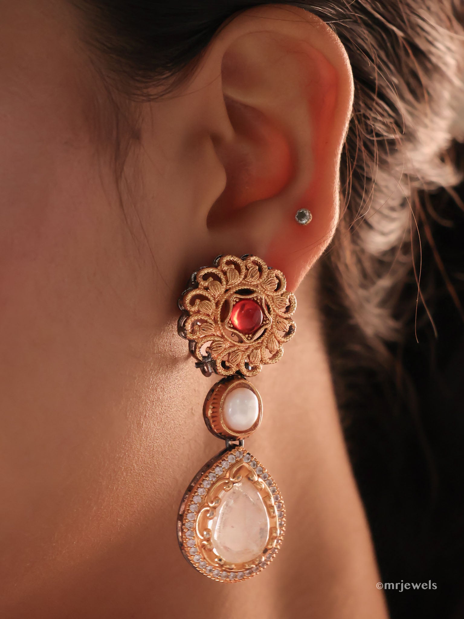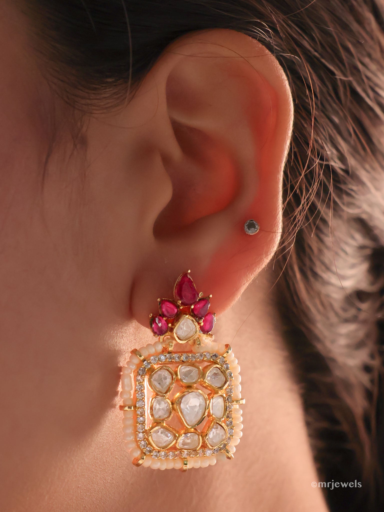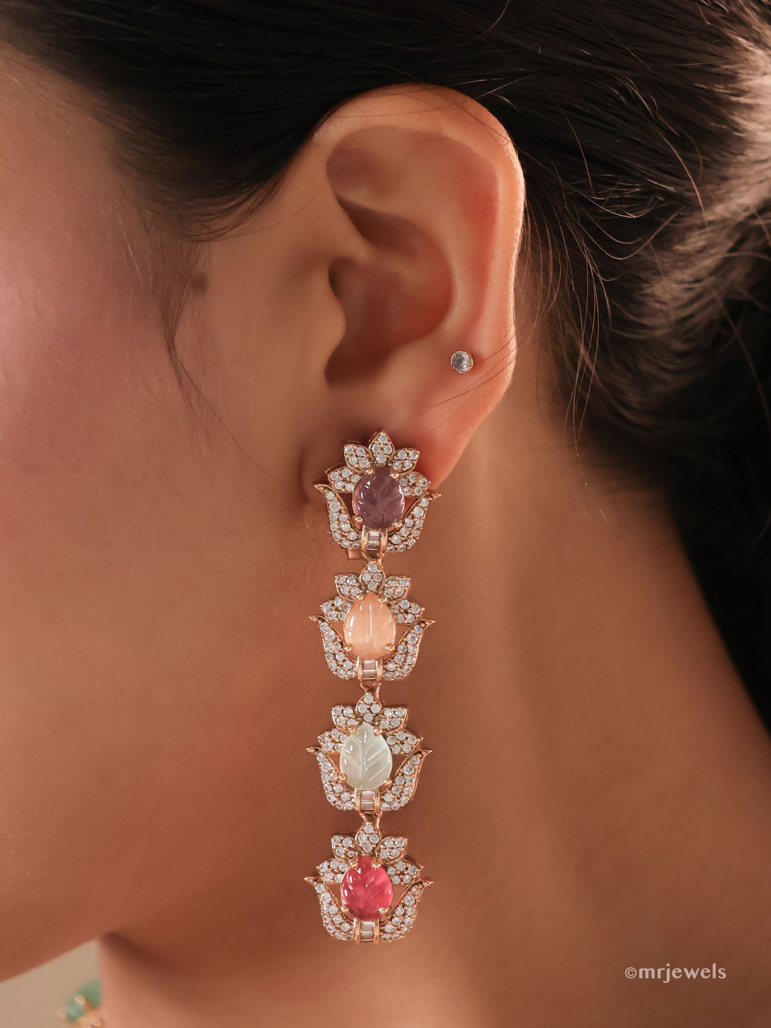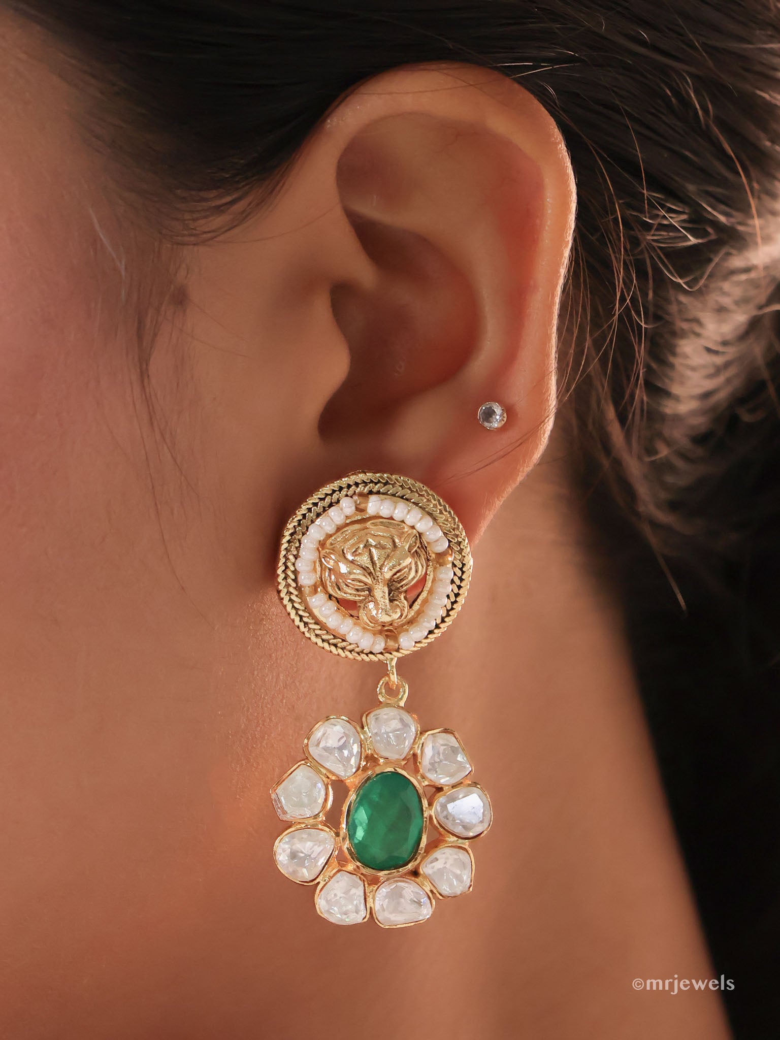 Morni Regal Triple Jhumka Danglers (Ruby/Emerald/Mint)