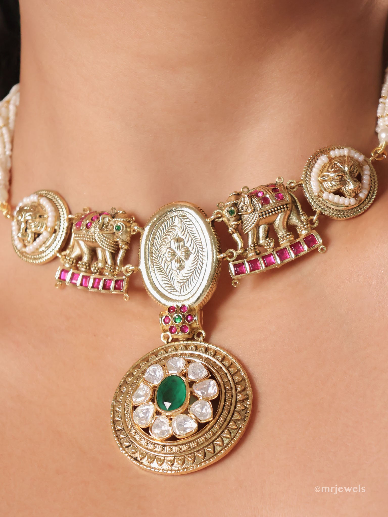 Rajwada Polki Gulbandh Collar (5-Row) — Set