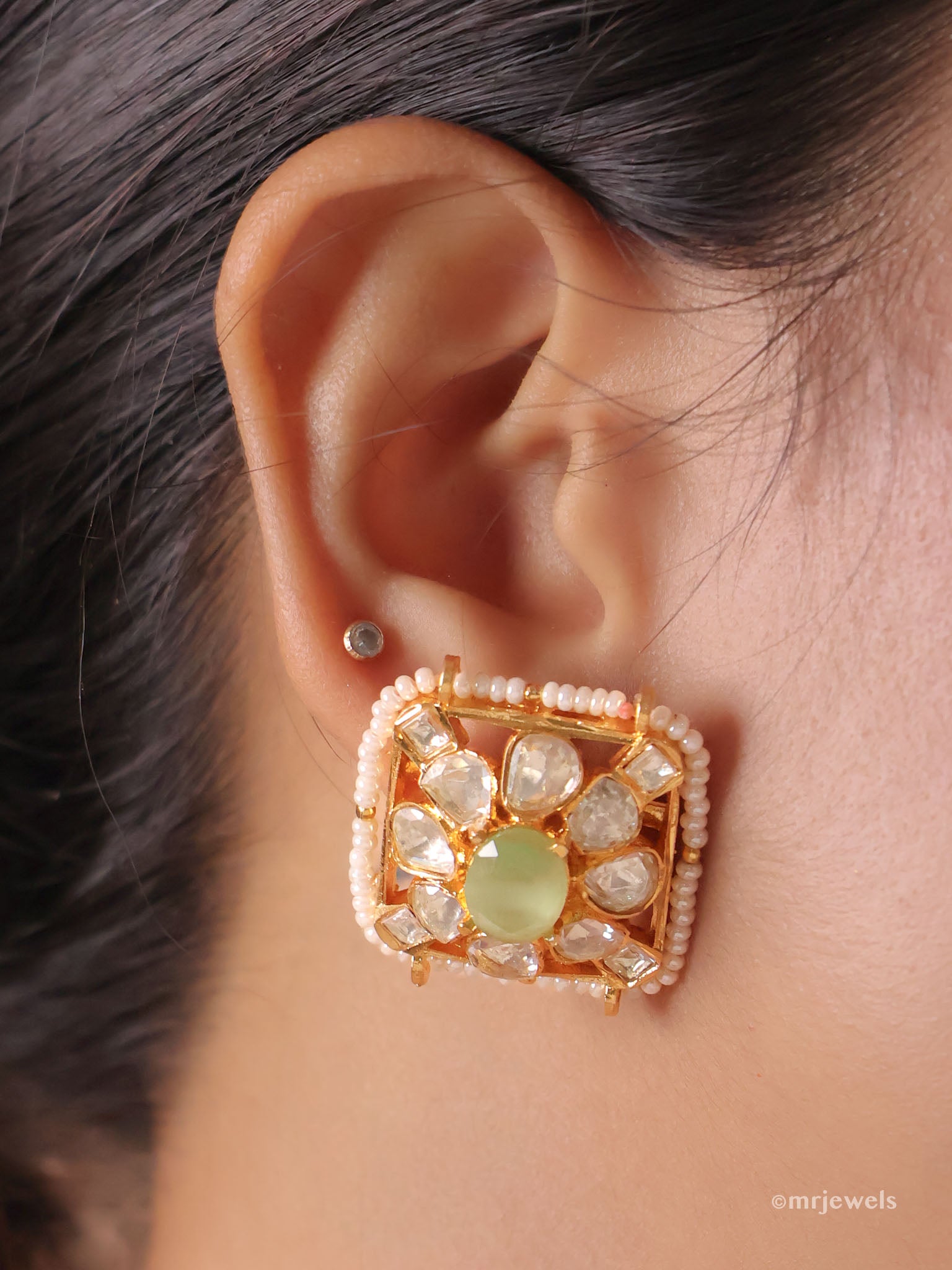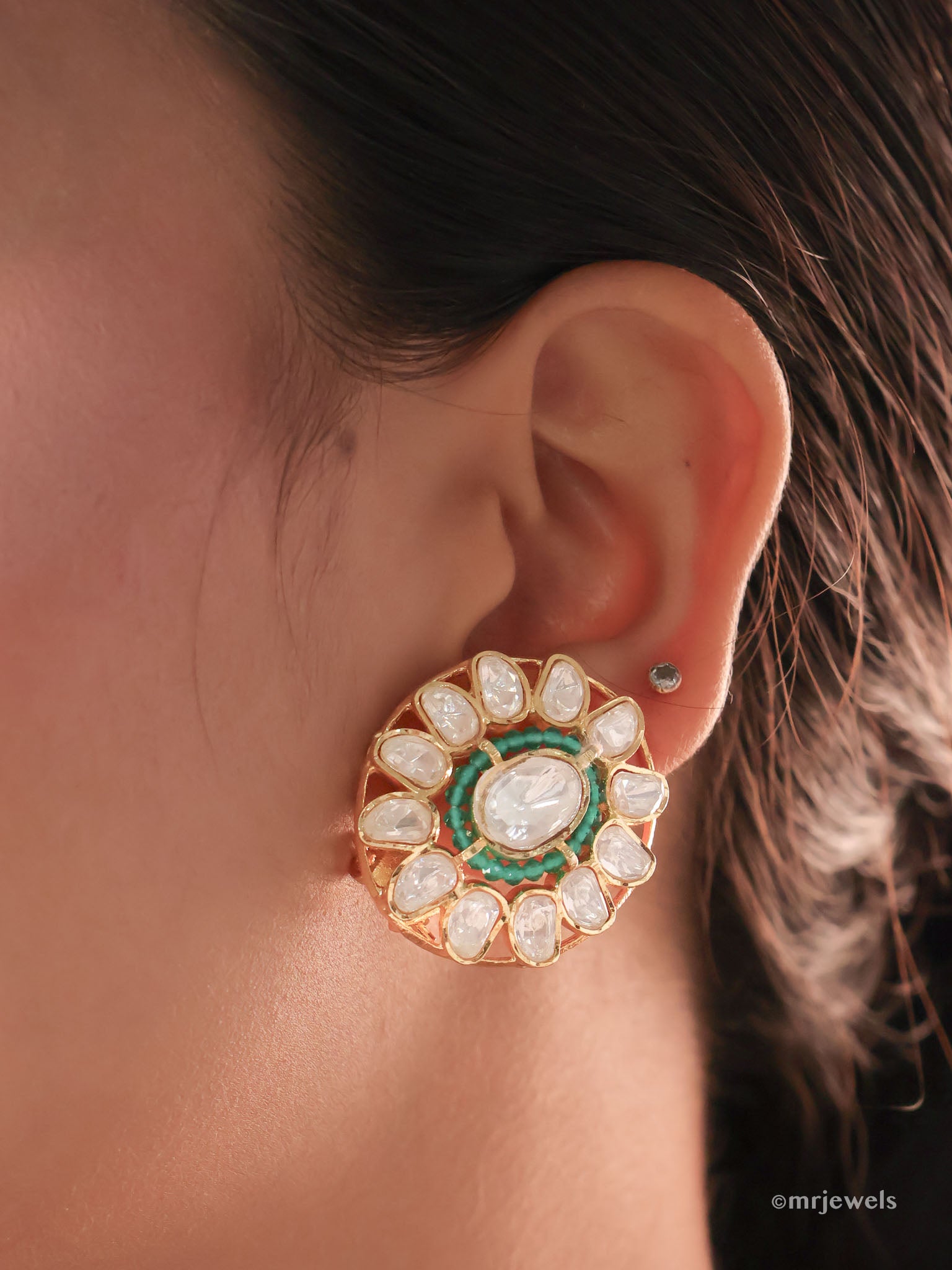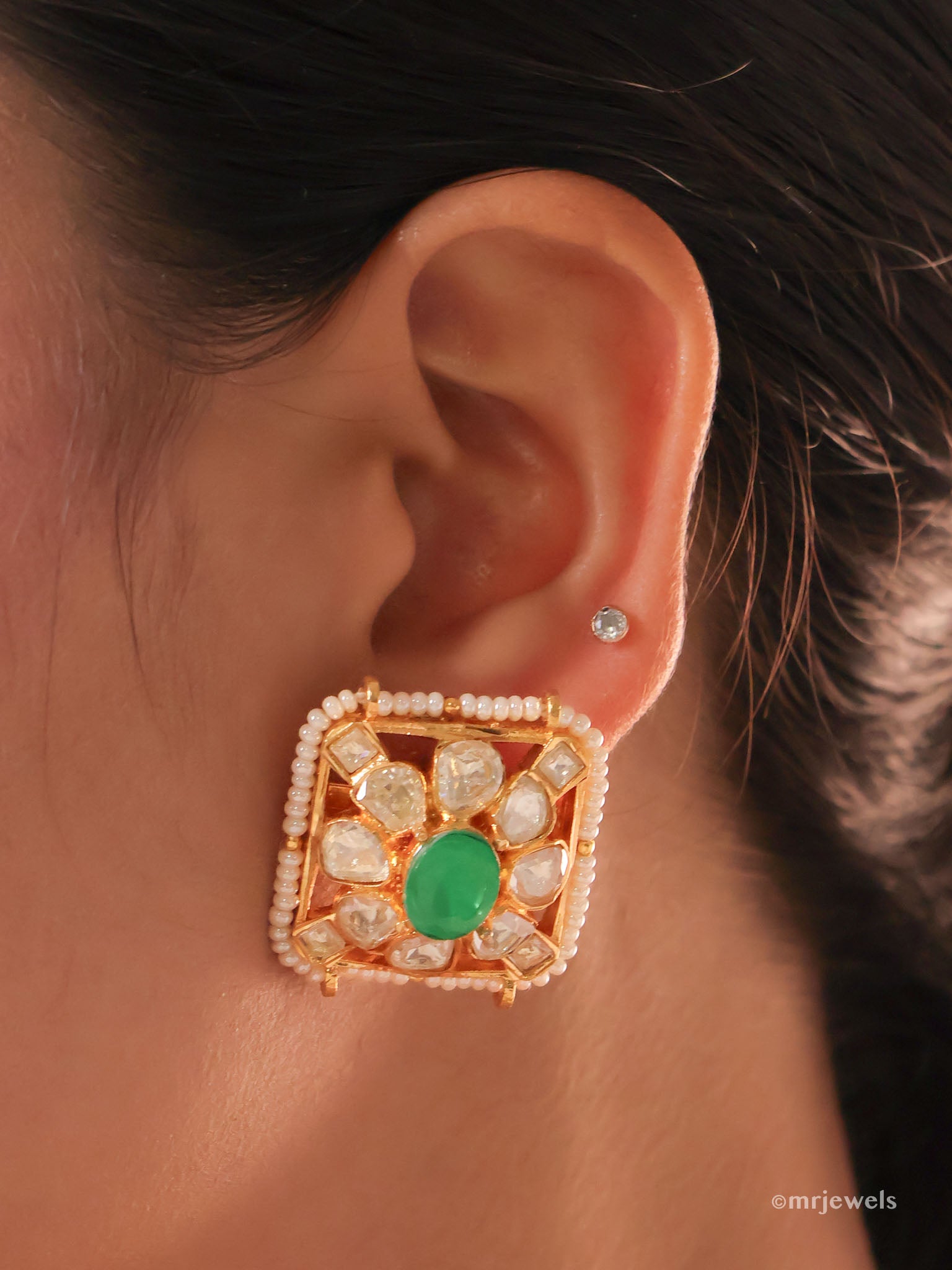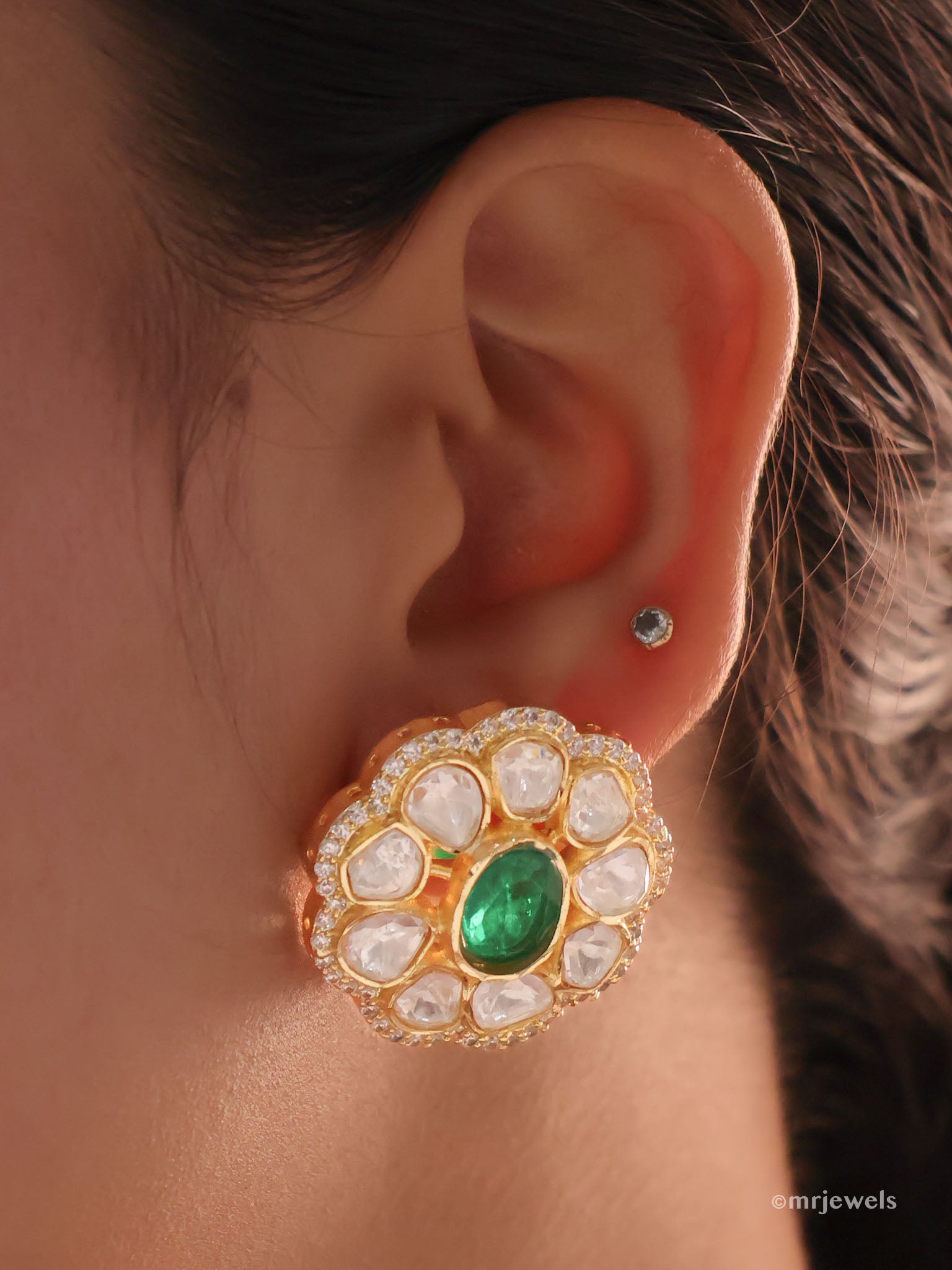 Aarzoo Emerald Polki Grid Choker Set (with Studs)