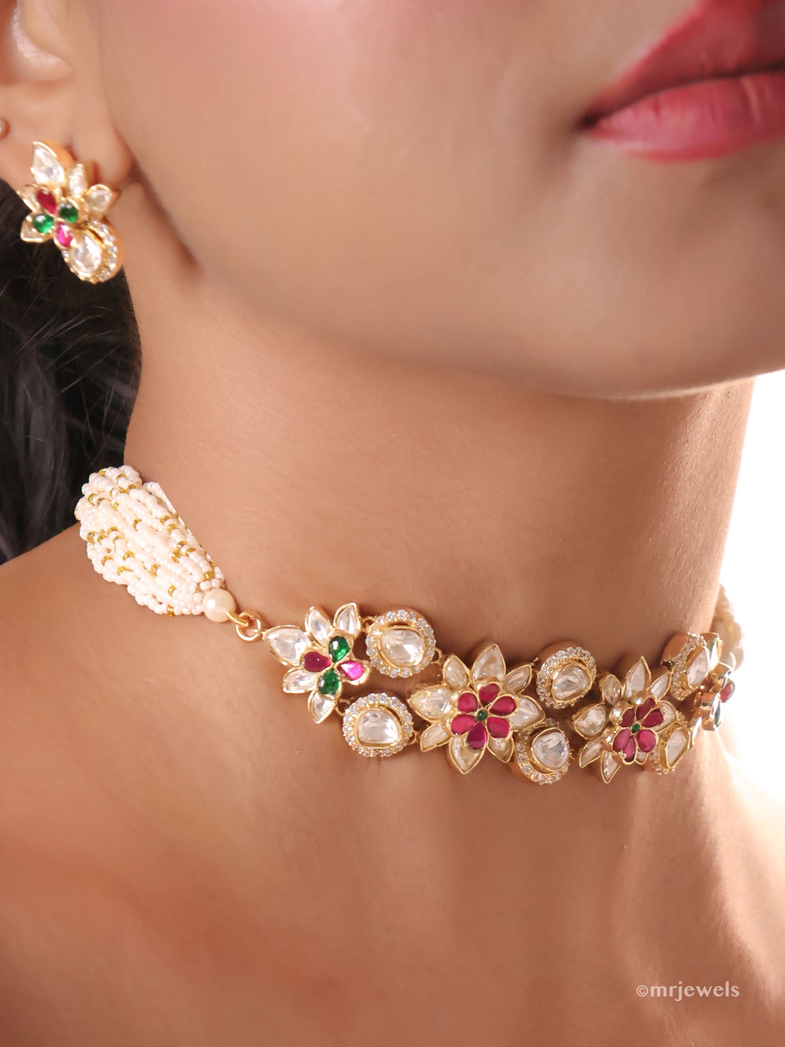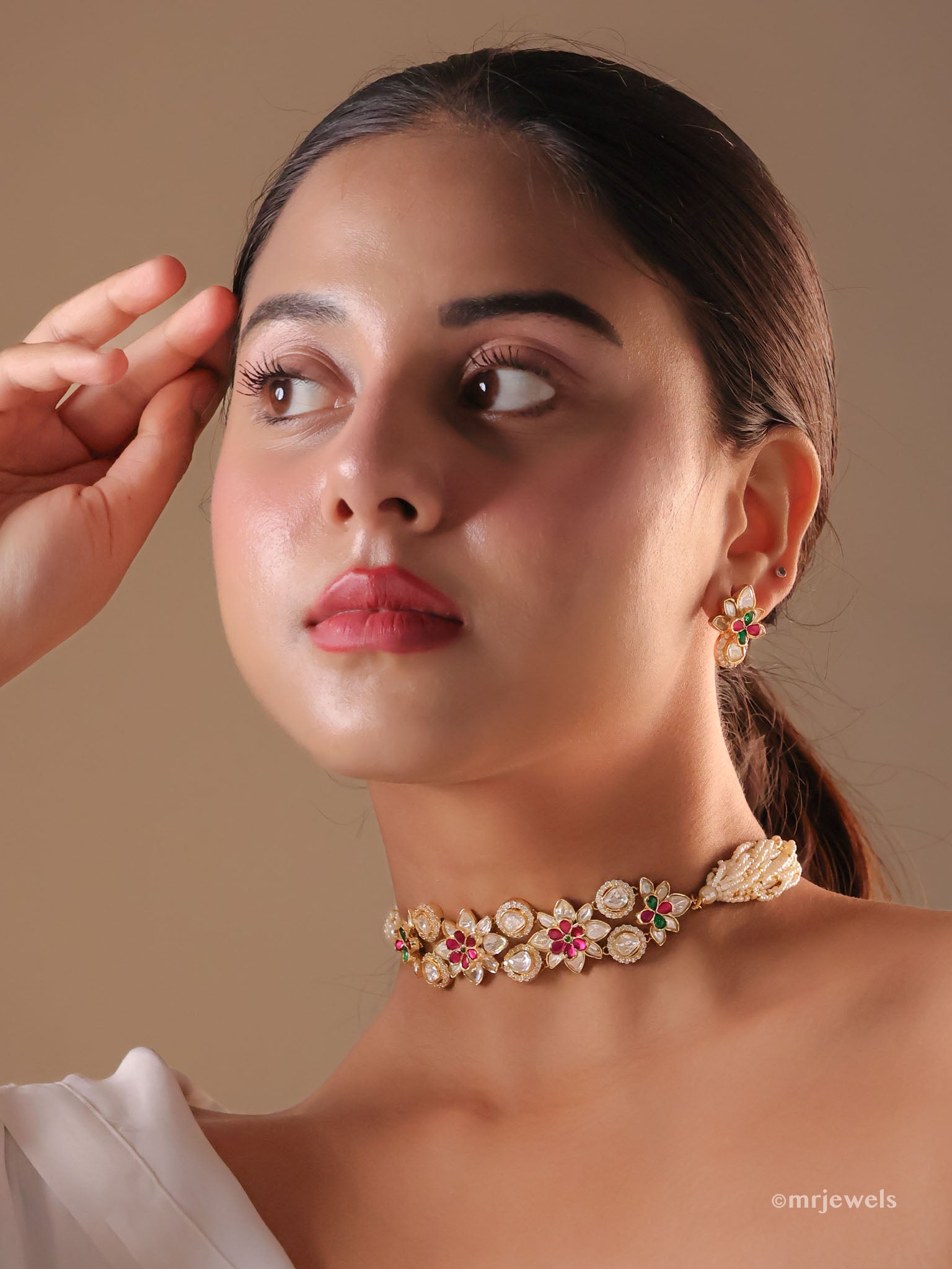Gulbagh Floral Kundan Choker Set (with Studs)