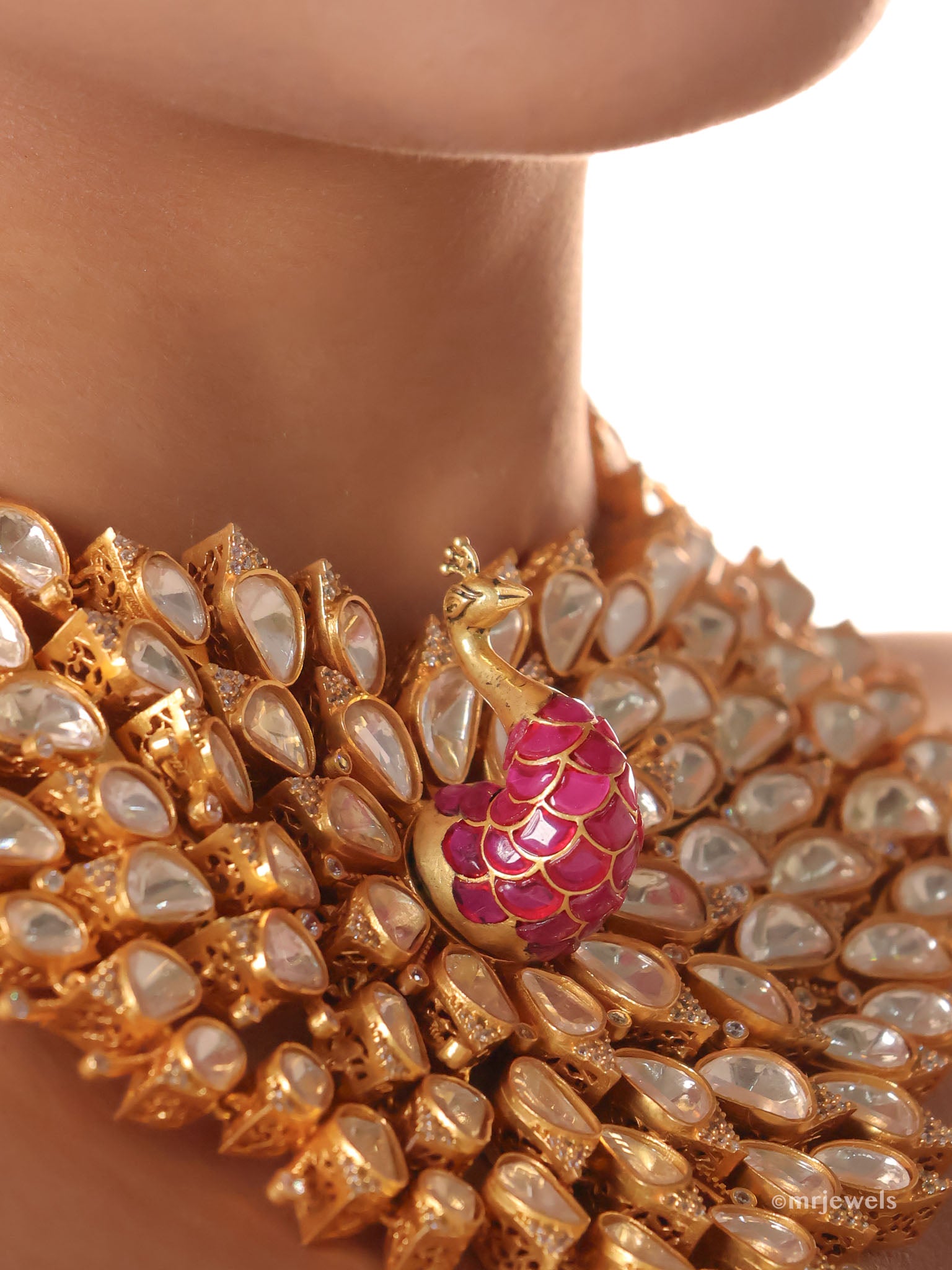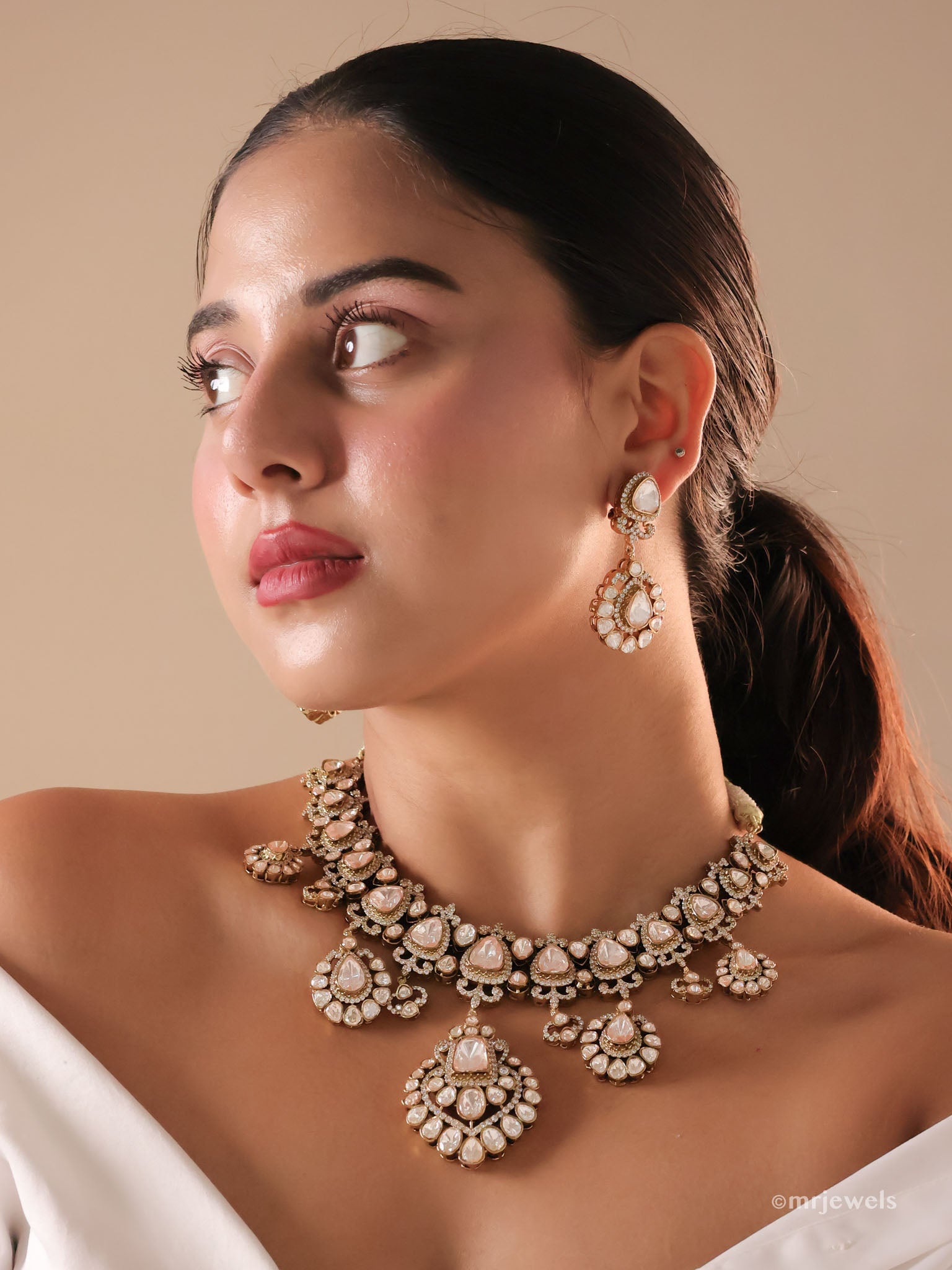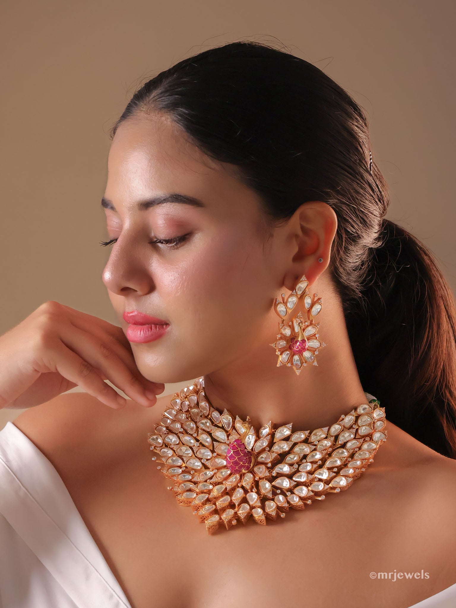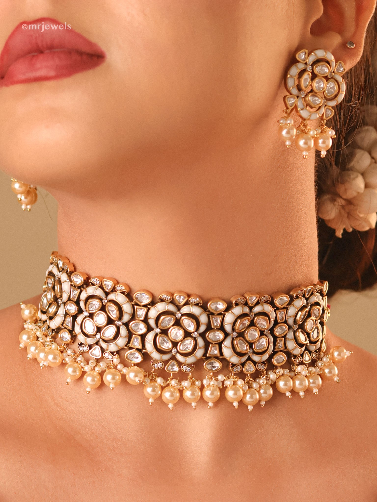 Gulabi Meenakari Polki Pearl Choker Set (with Earrings)