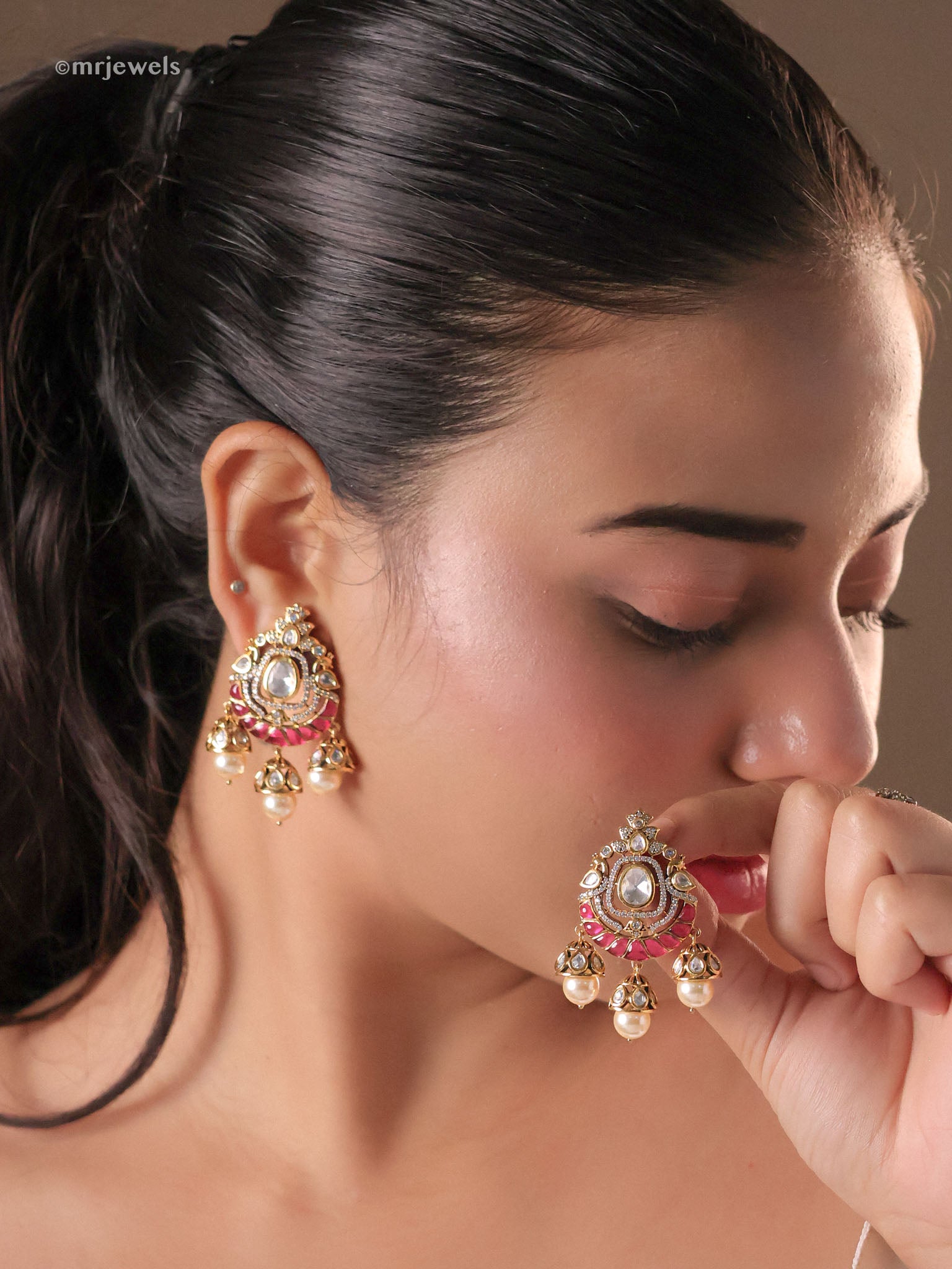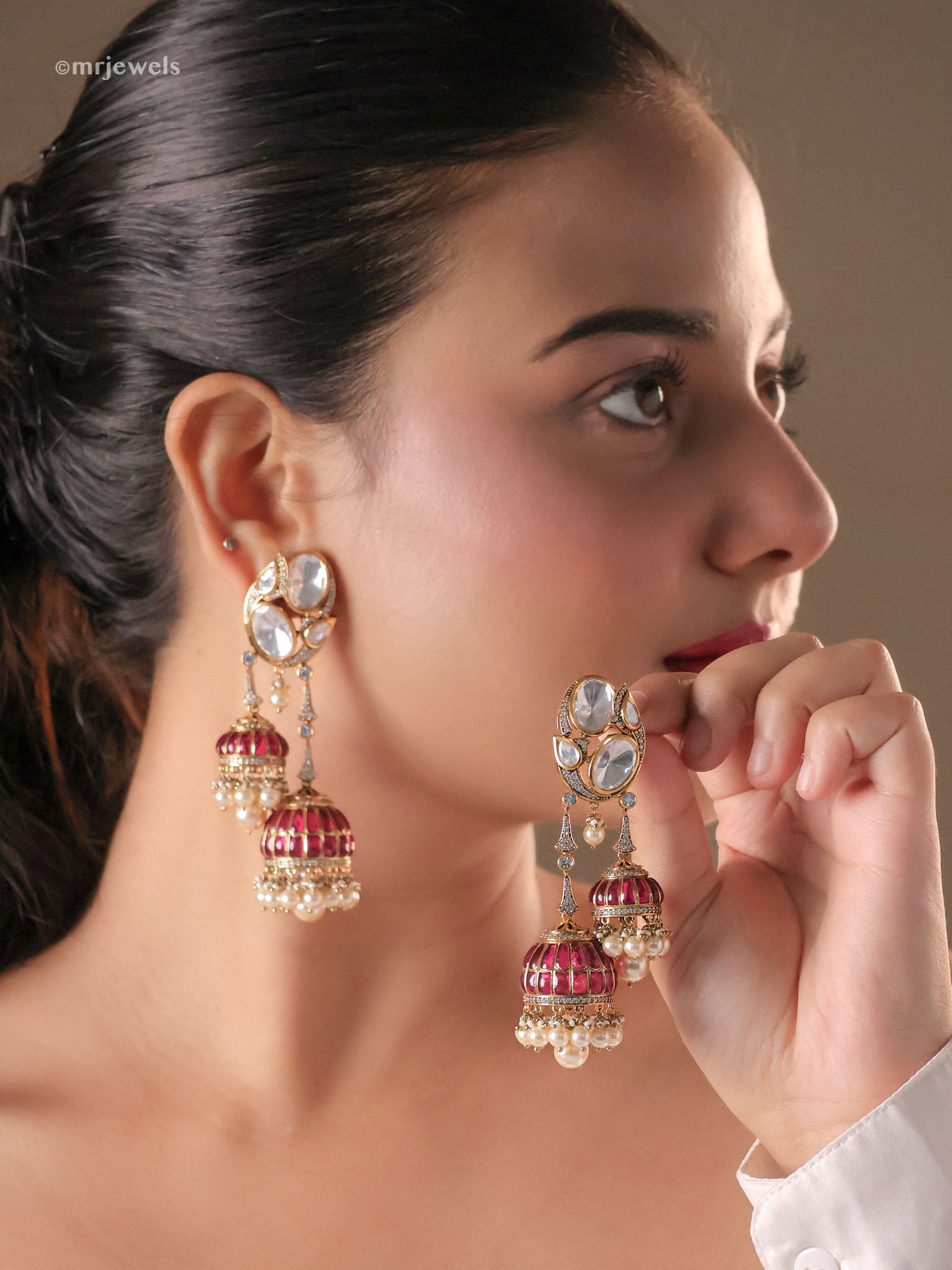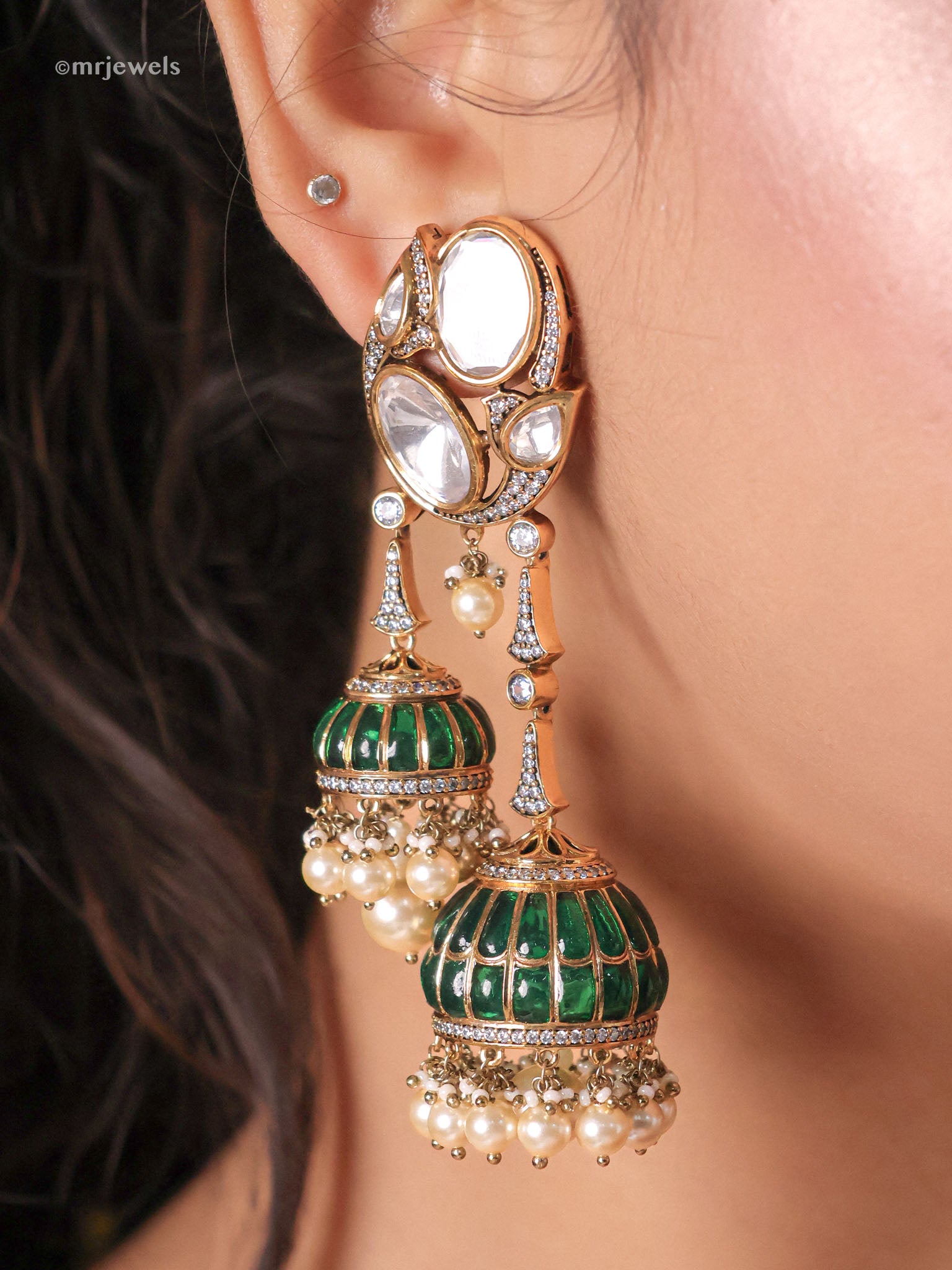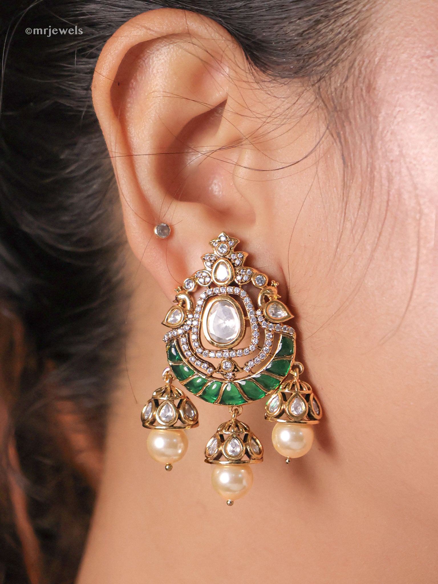 Nurani Meenakari Kundan Trio-Jhumka Pearl Drops