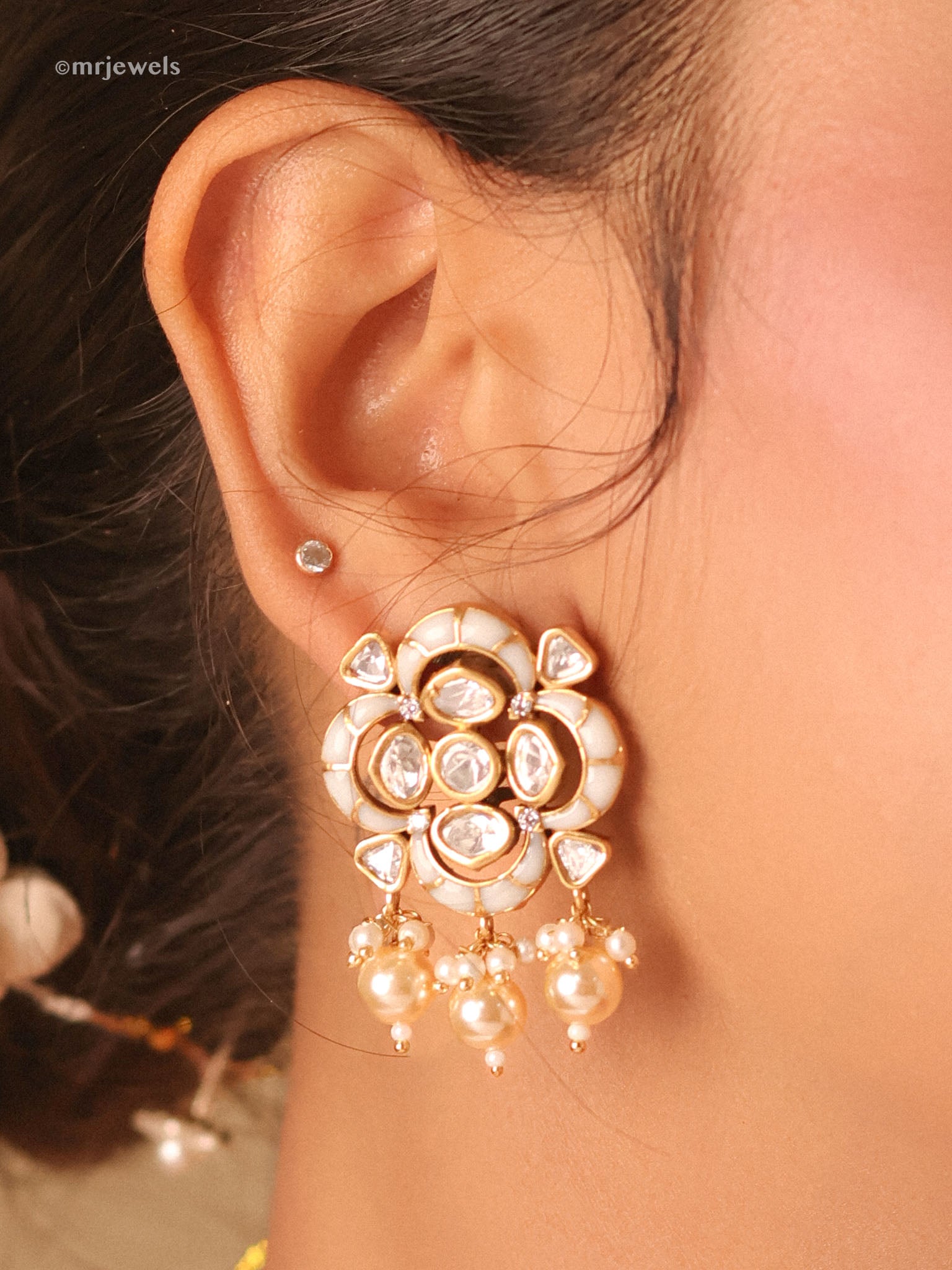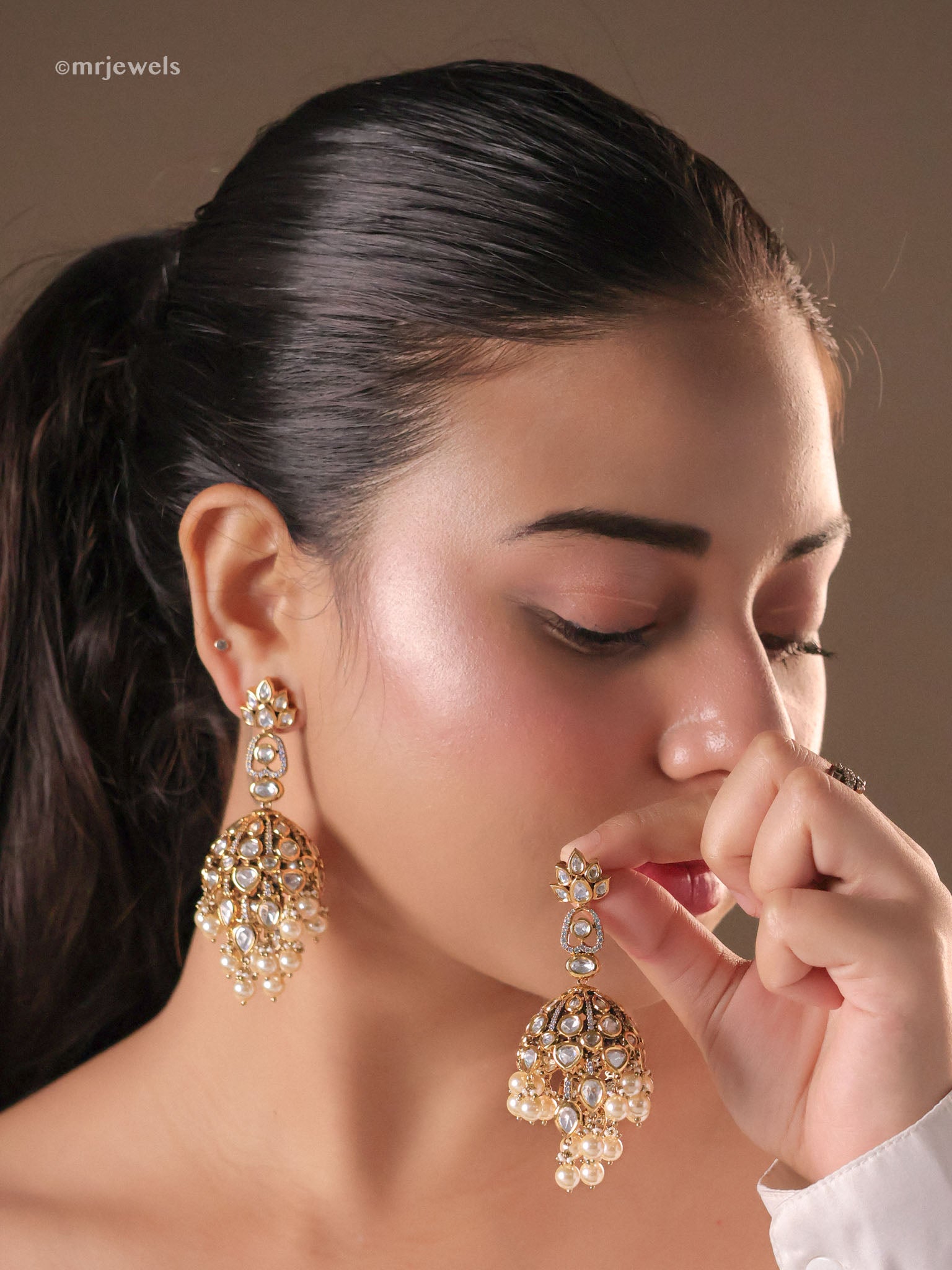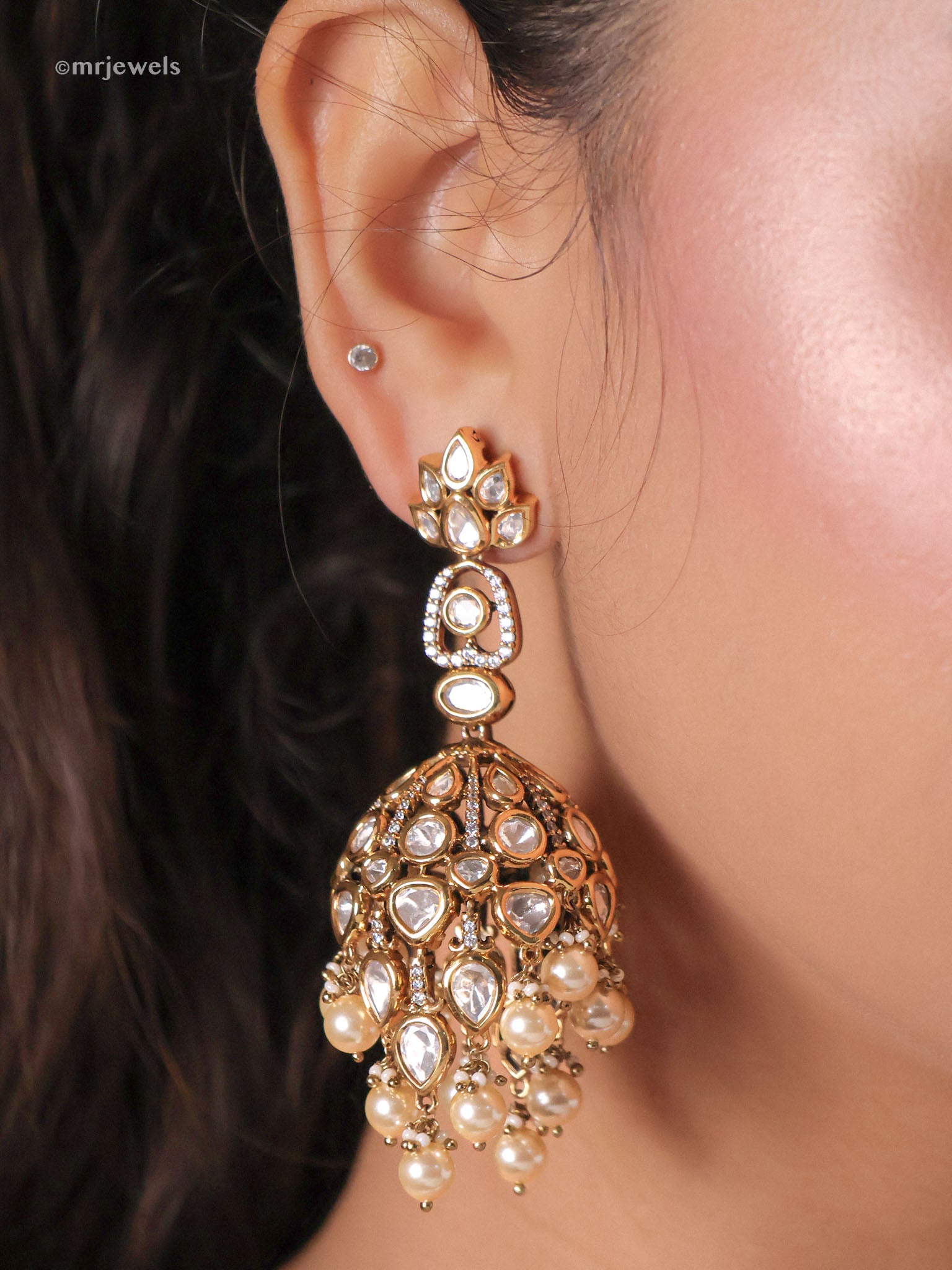 Nurani Meenakari Kundan Trio-Jhumka Pearl Drops