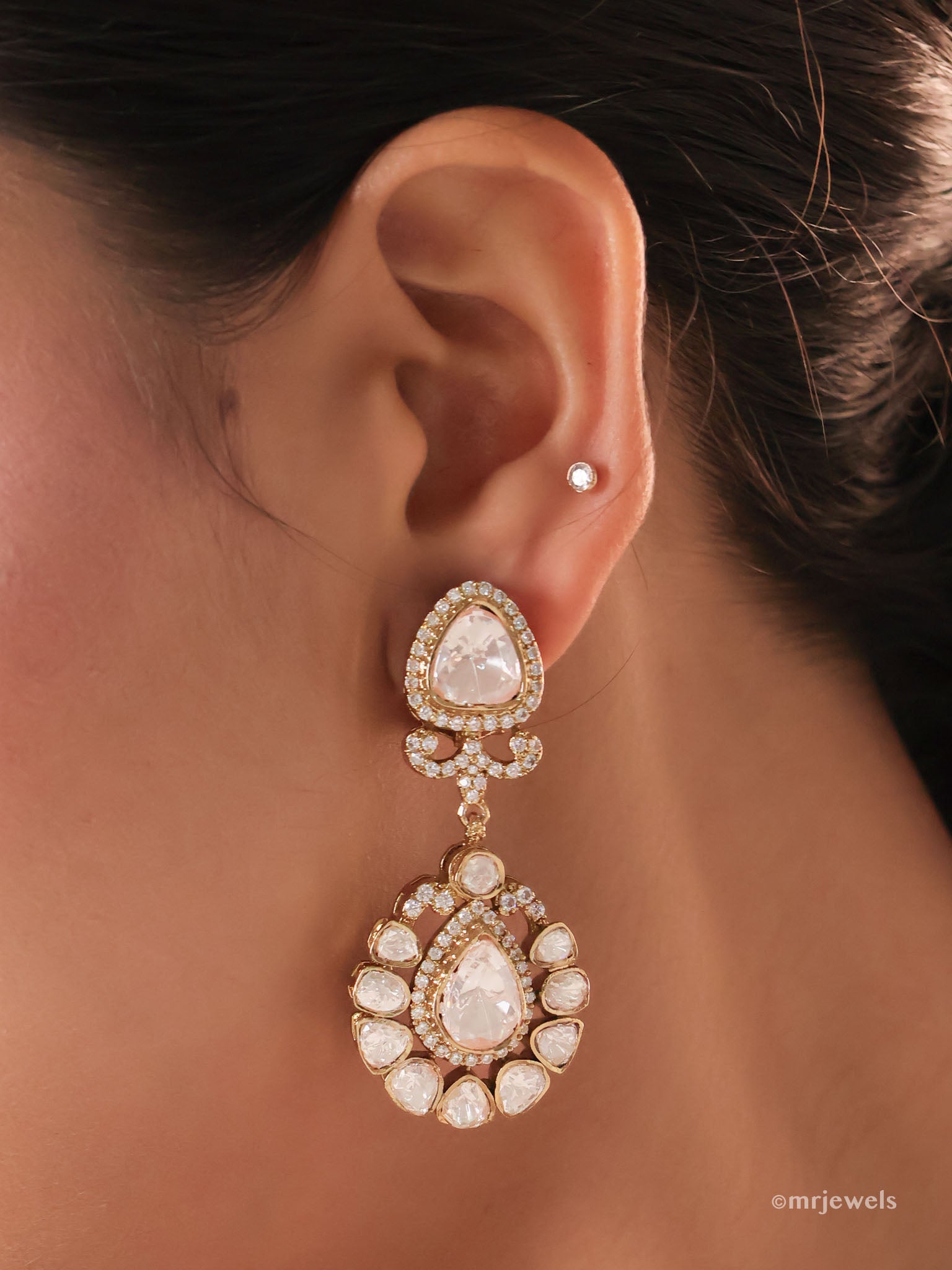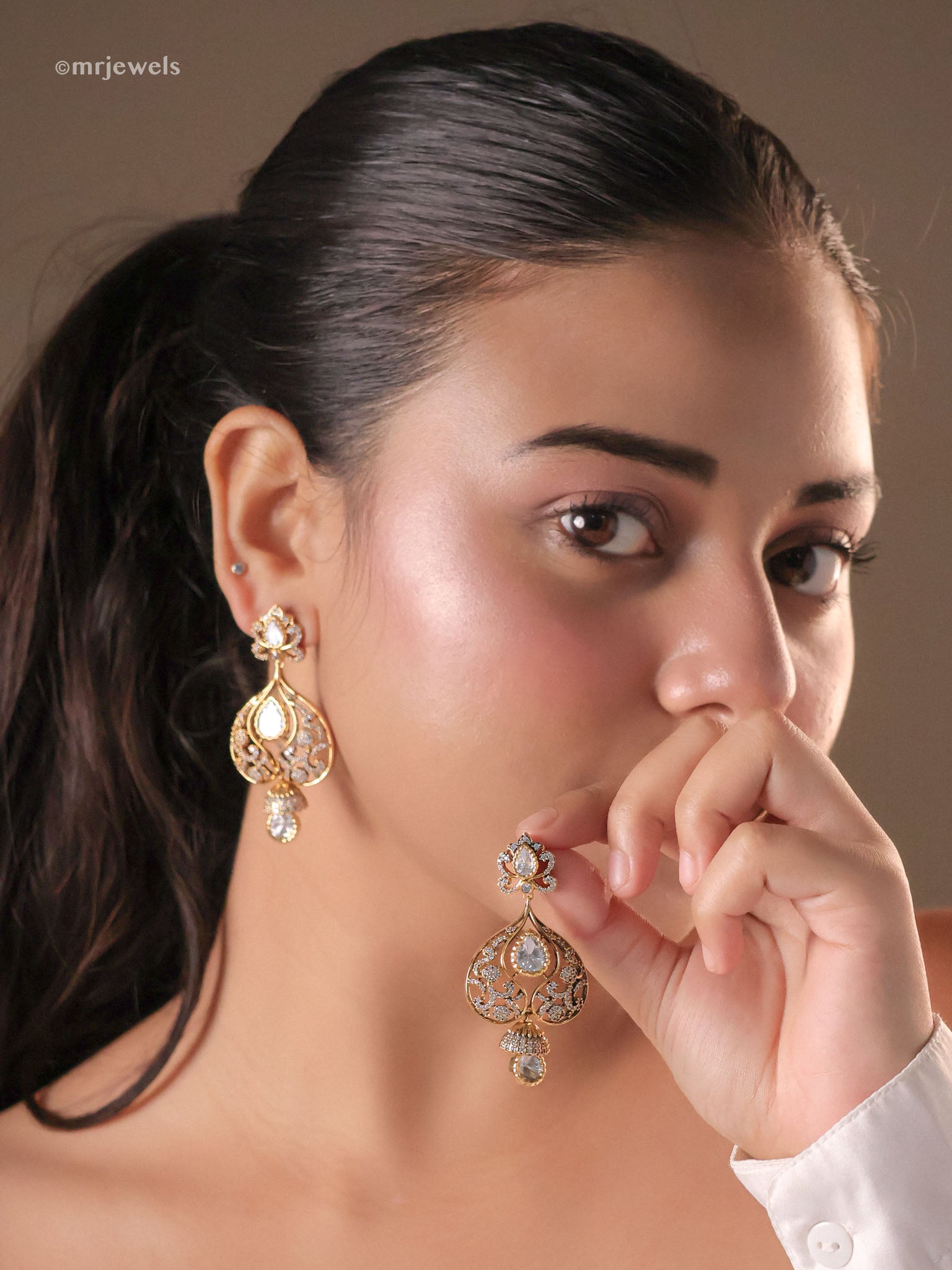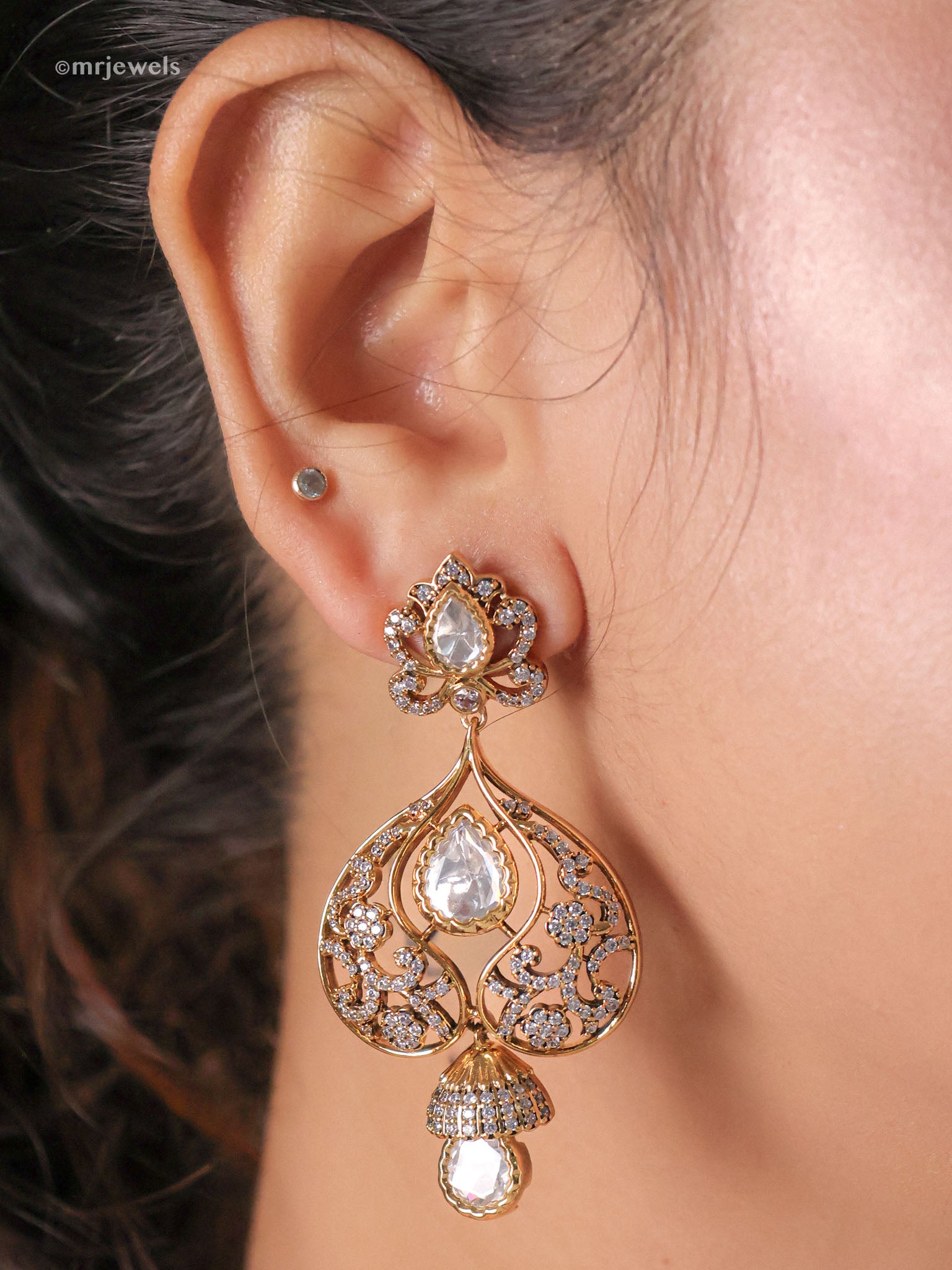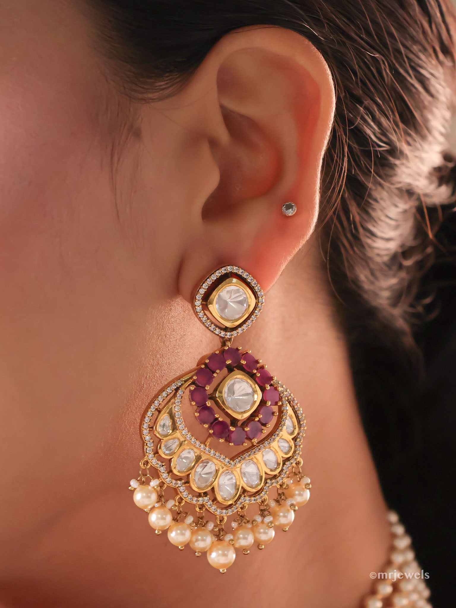 Nurani Meenakari Kundan Trio-Jhumka Pearl Drops