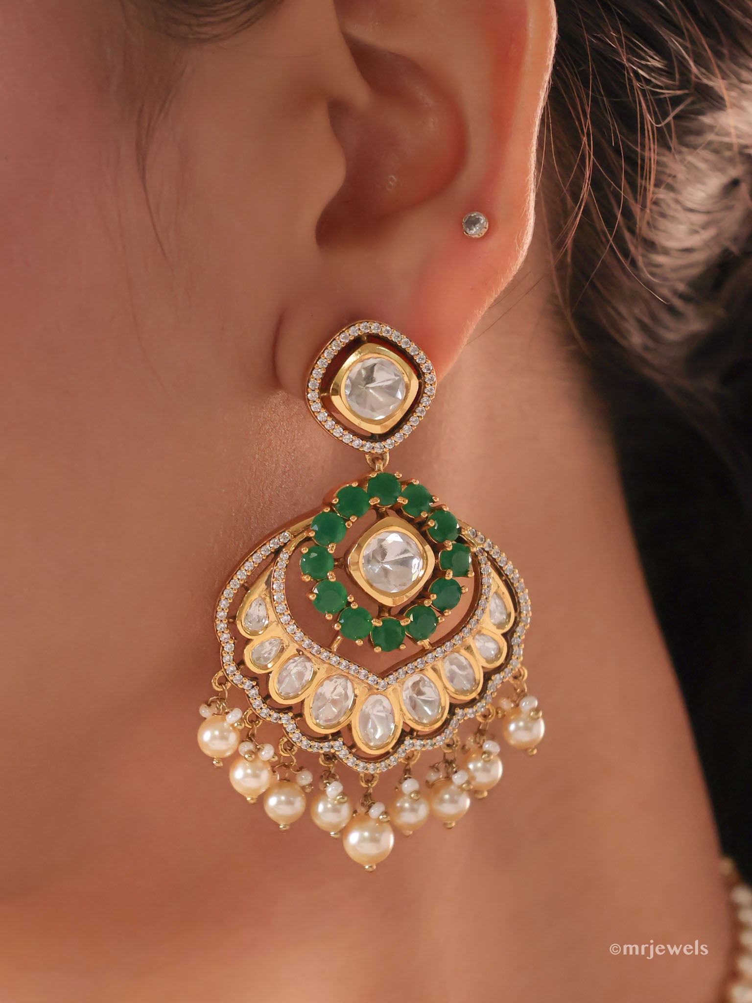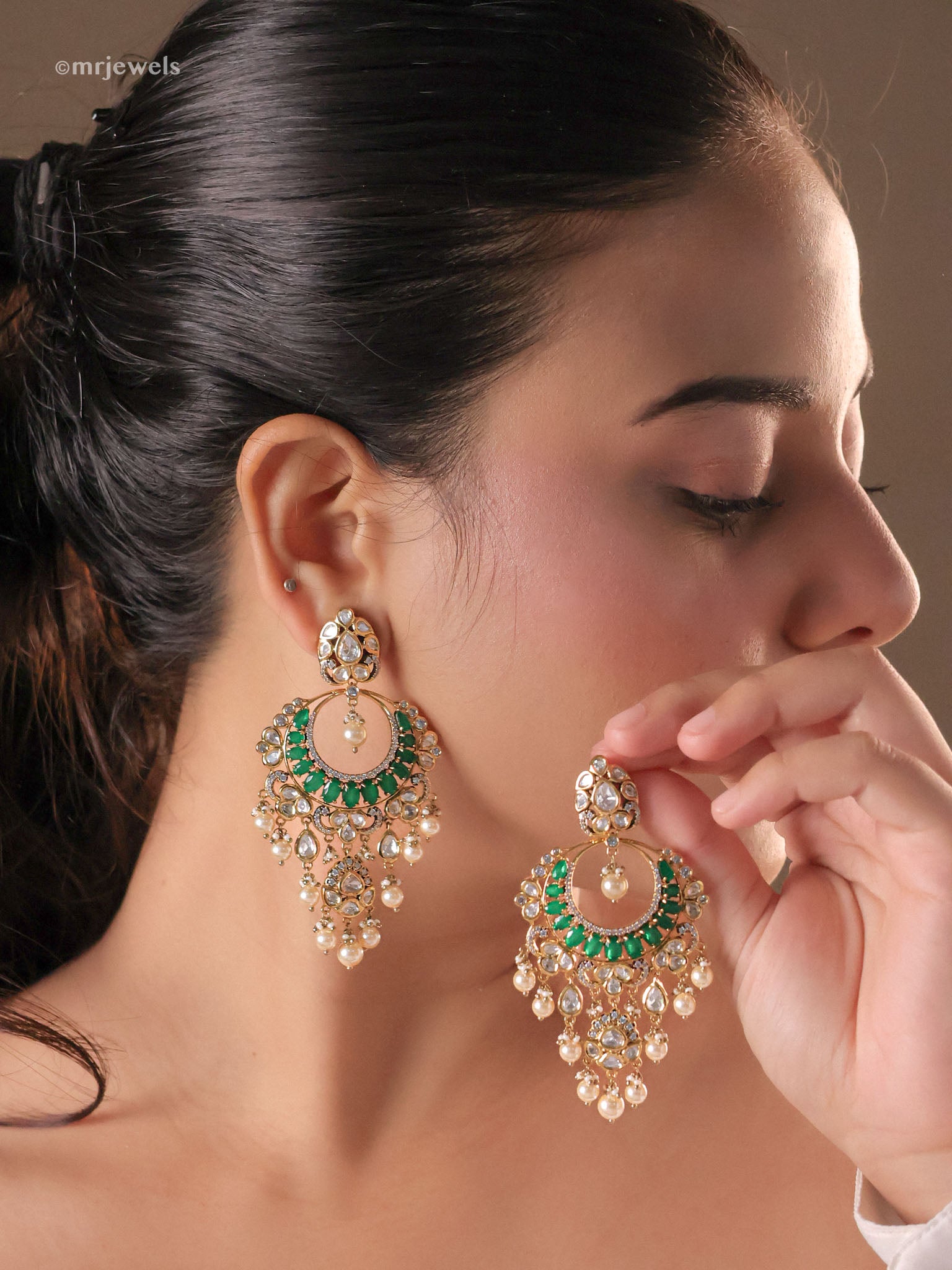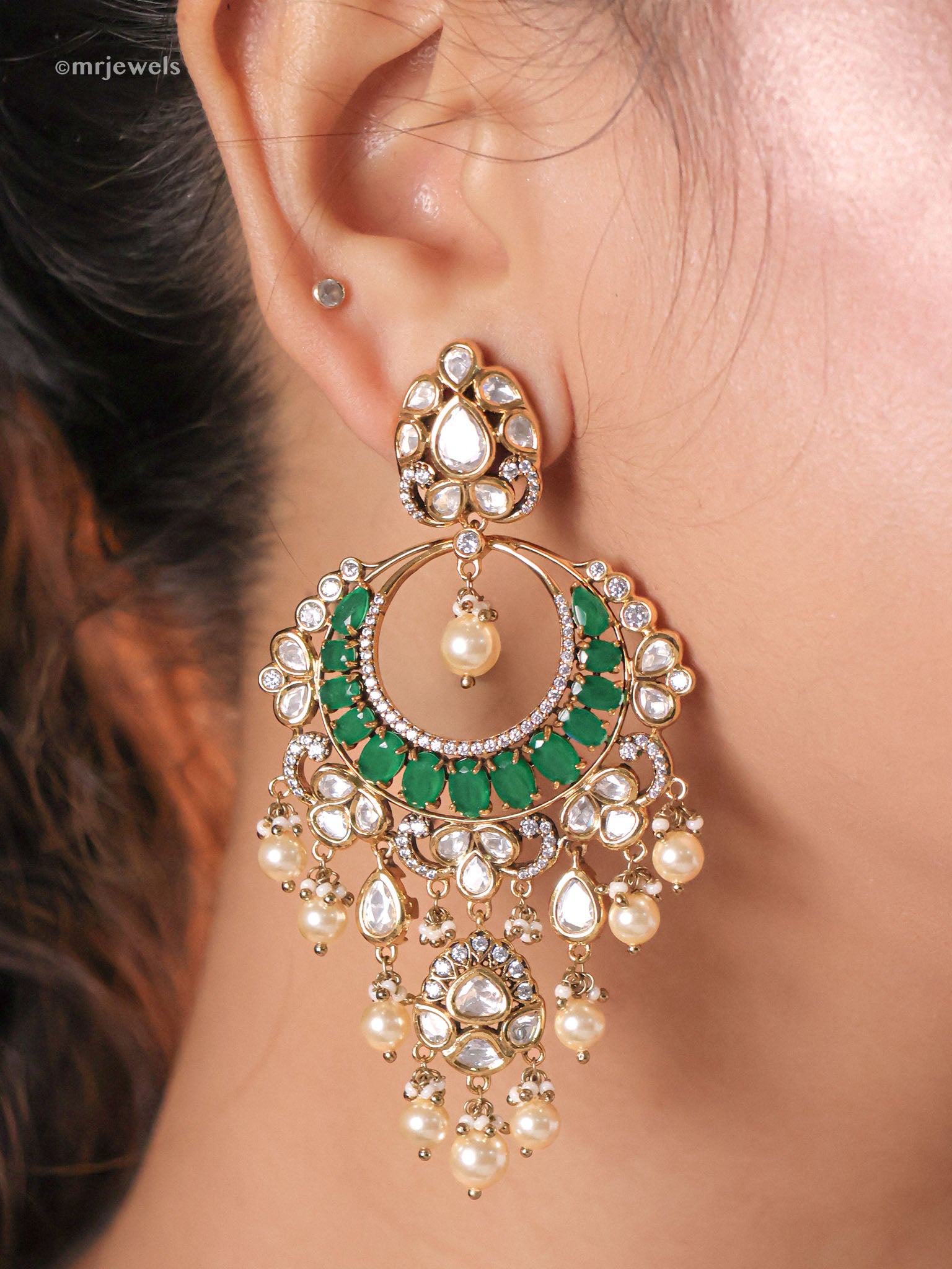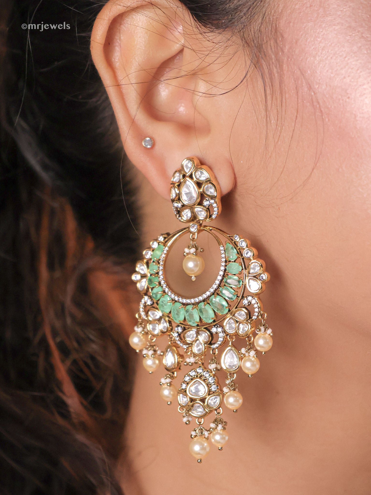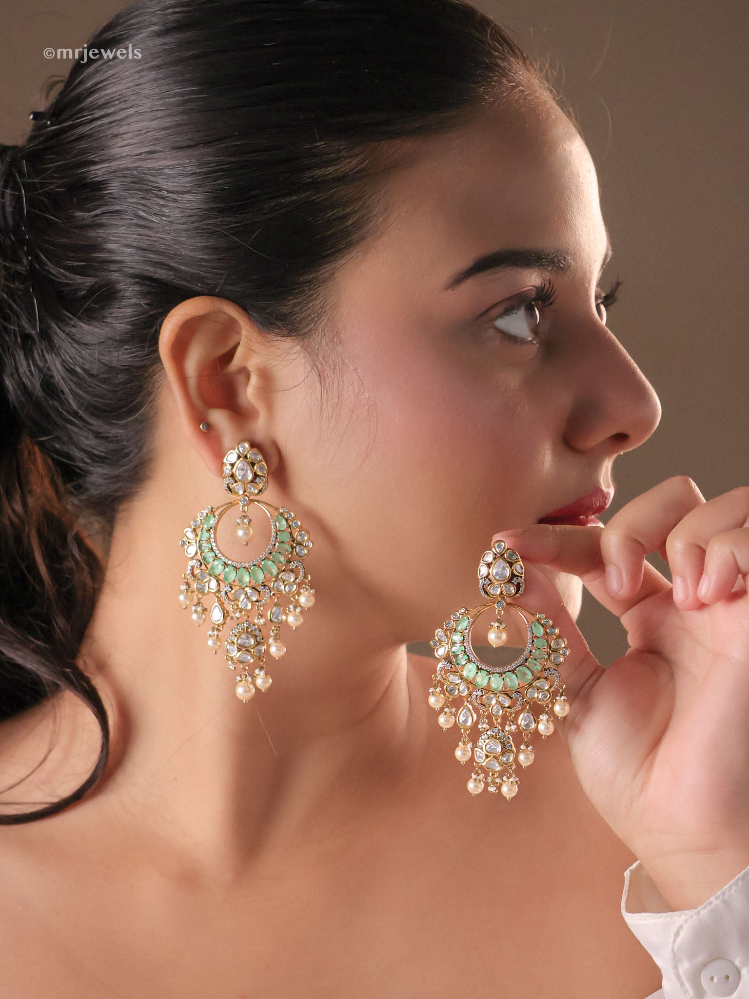 Aarohi Kundan Chandbalis (Emerald/Mint/Rose)
