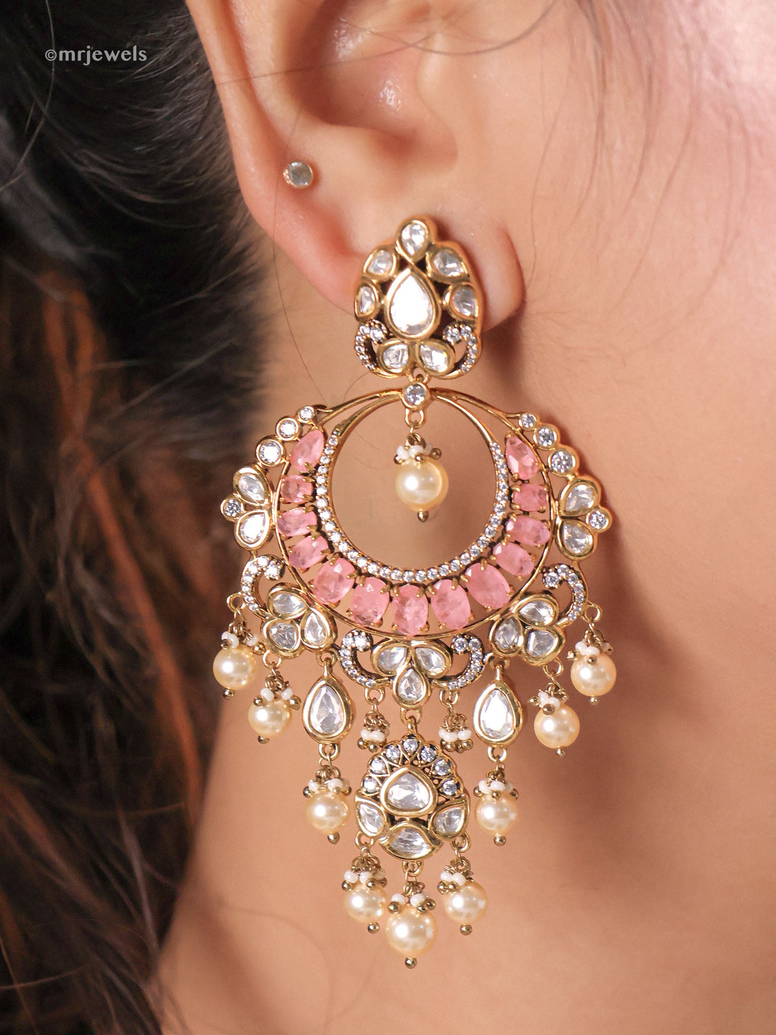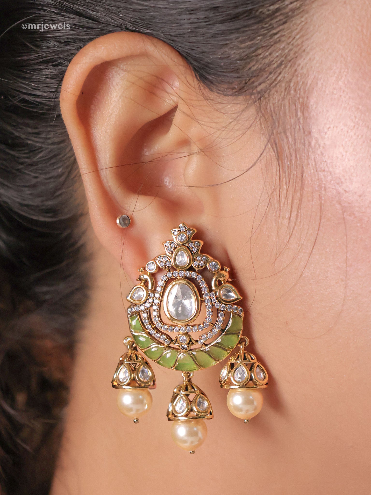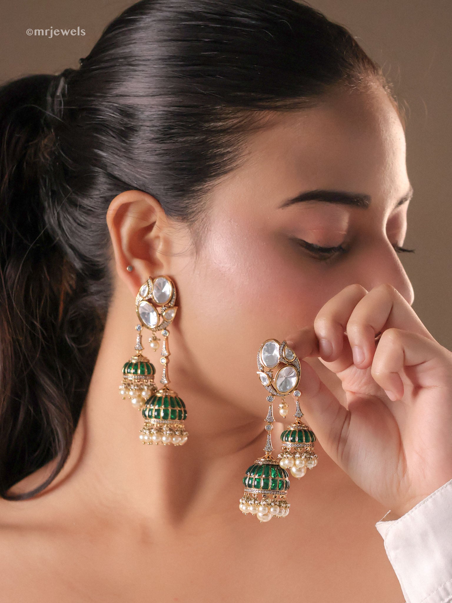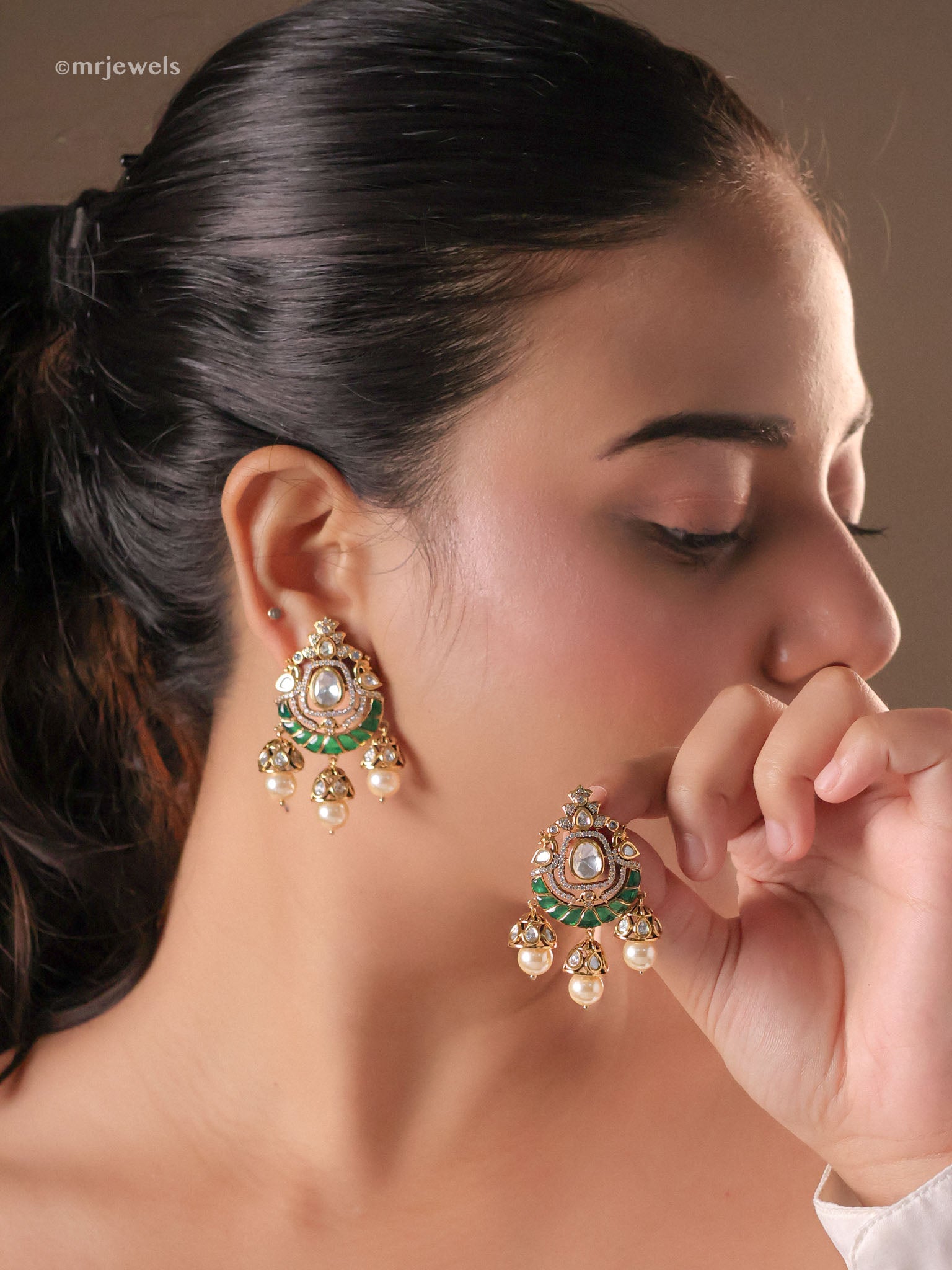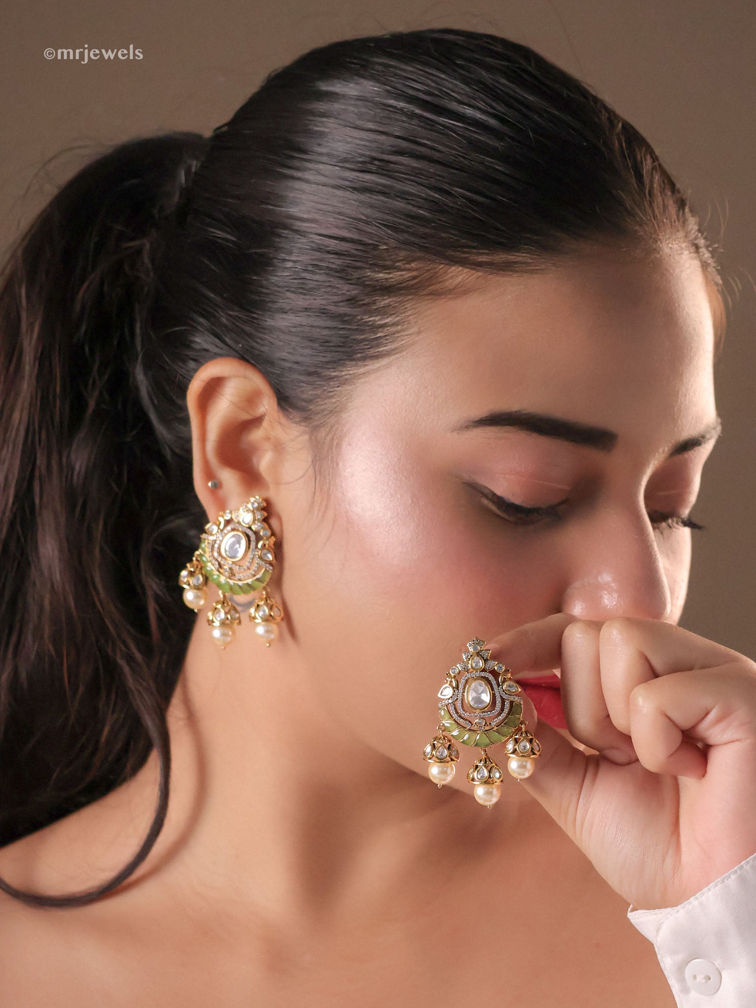 Aarohi Kundan Chandbalis (Emerald/Mint/Rose)