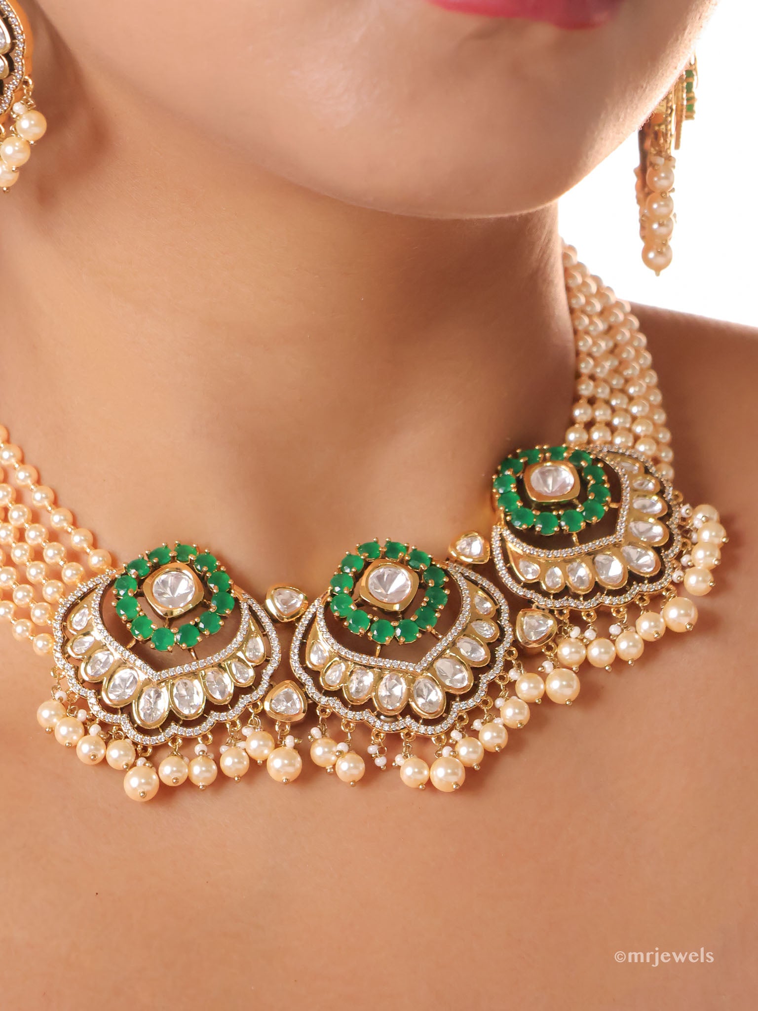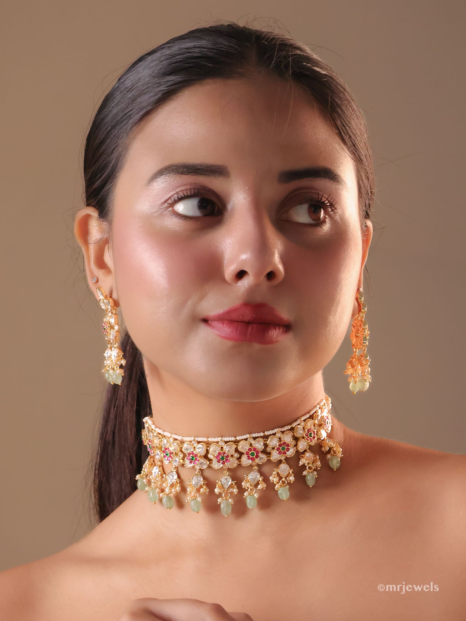 Aira Floral Polki Mint Choker Set (with Earrings)