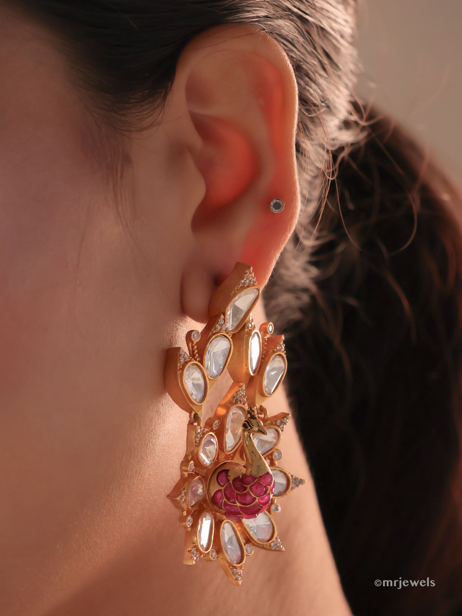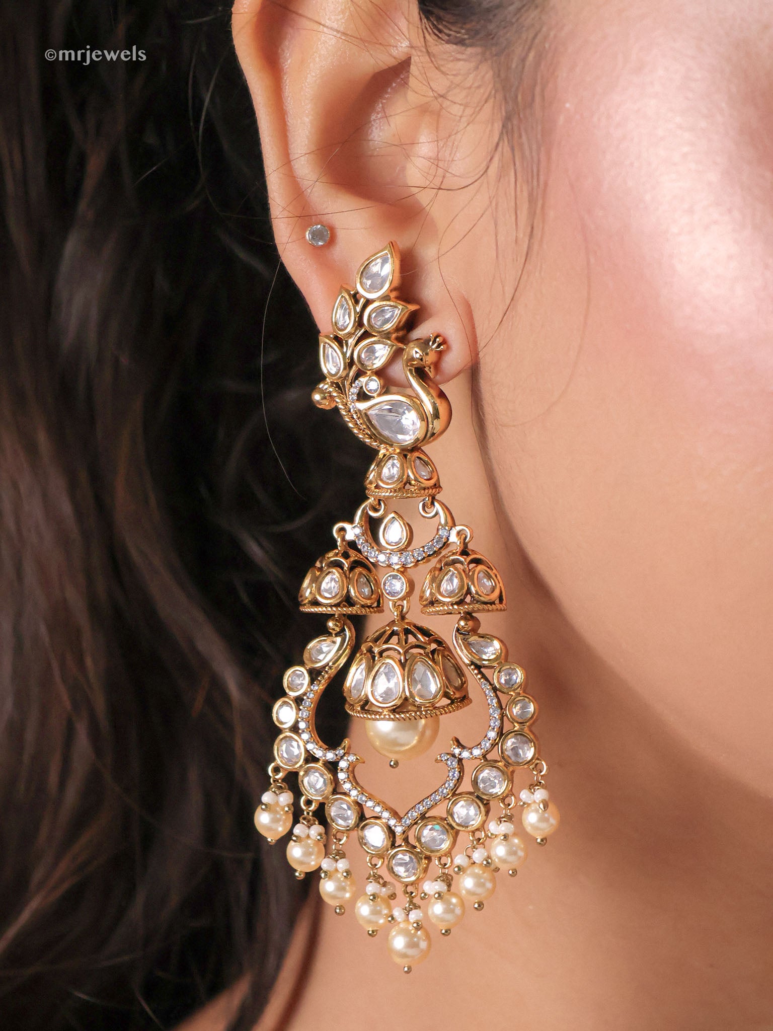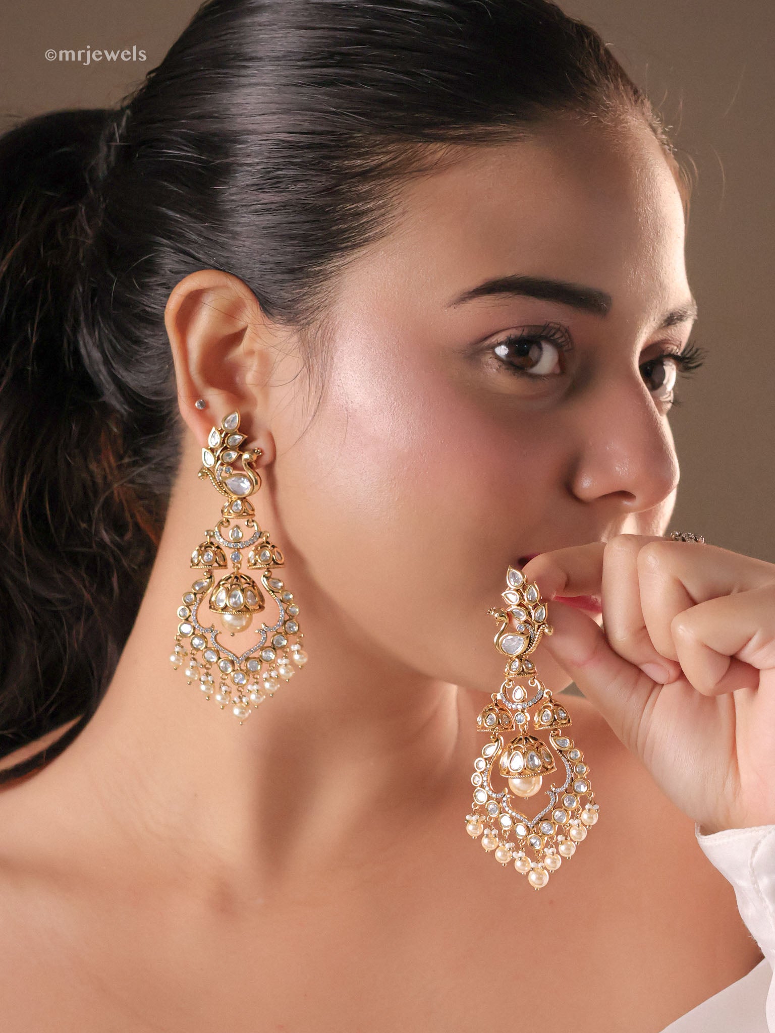Mayuri Kundan Peacock Pearl Dangler Earrings