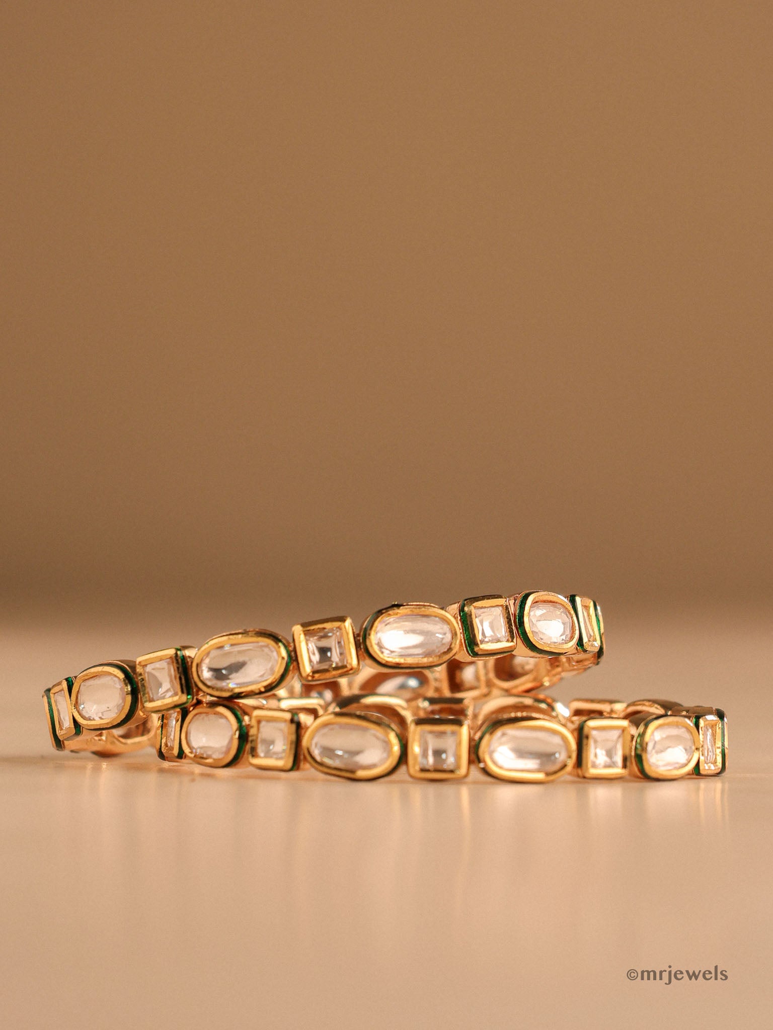 Jharokha Emerald-Edge Polki Bangles (Pair)