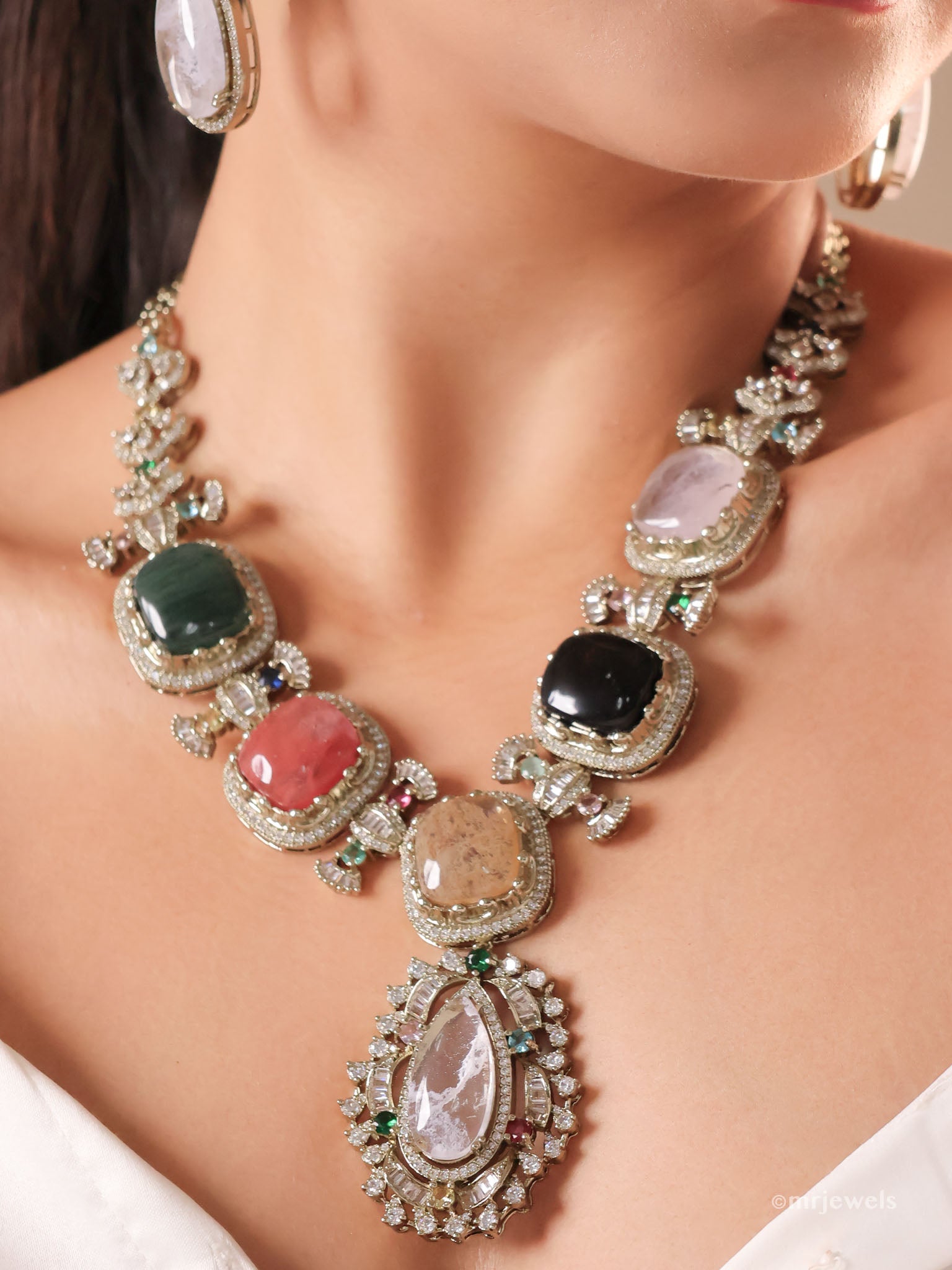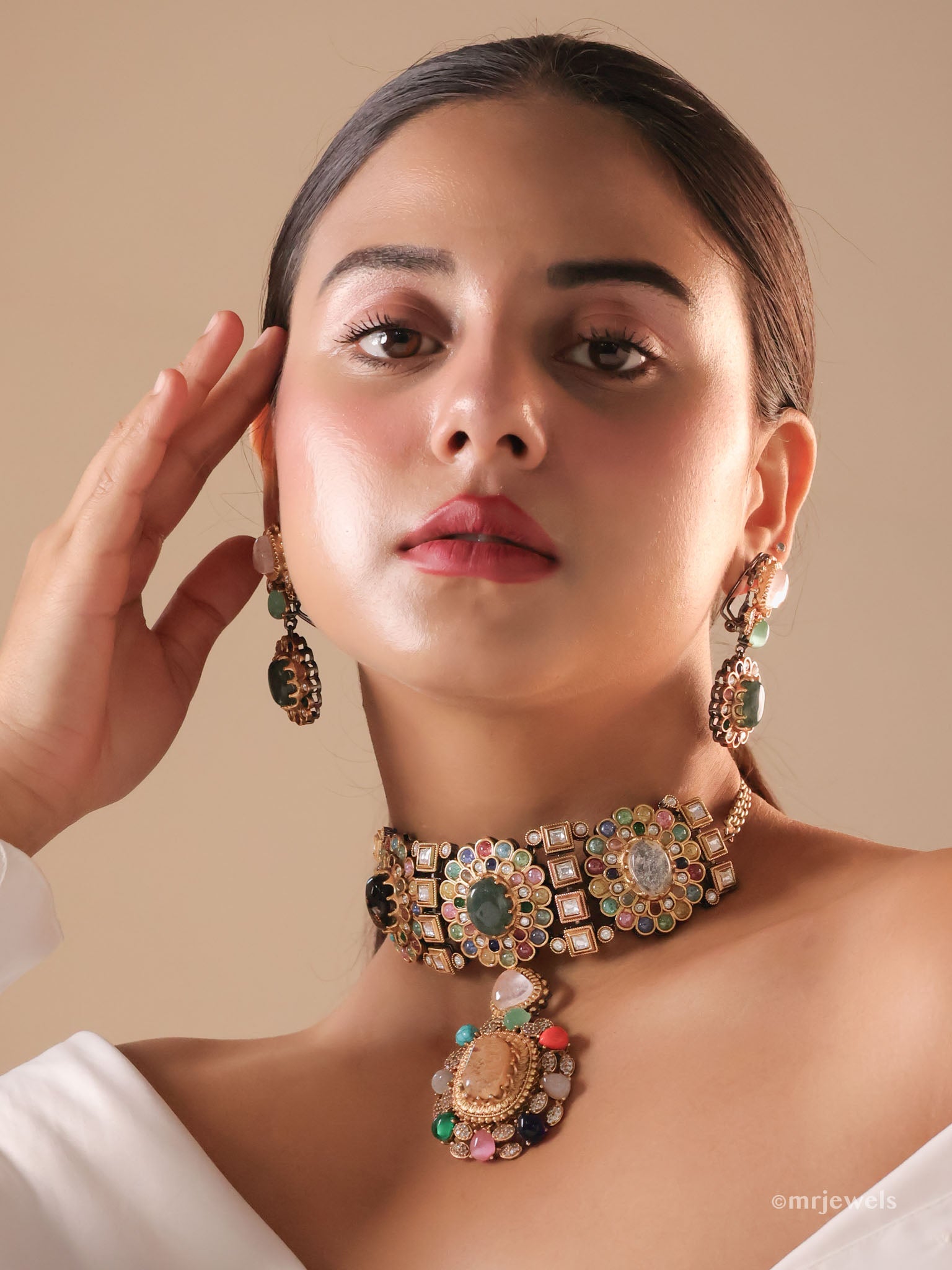 Sabya-Inspired Navratna Couture Necklace Set (with Earrings)
