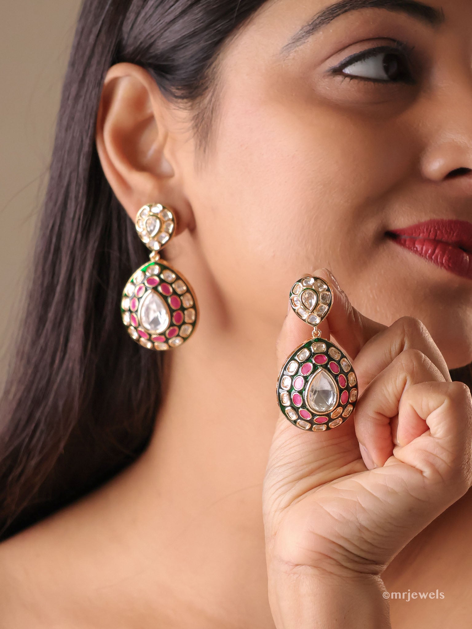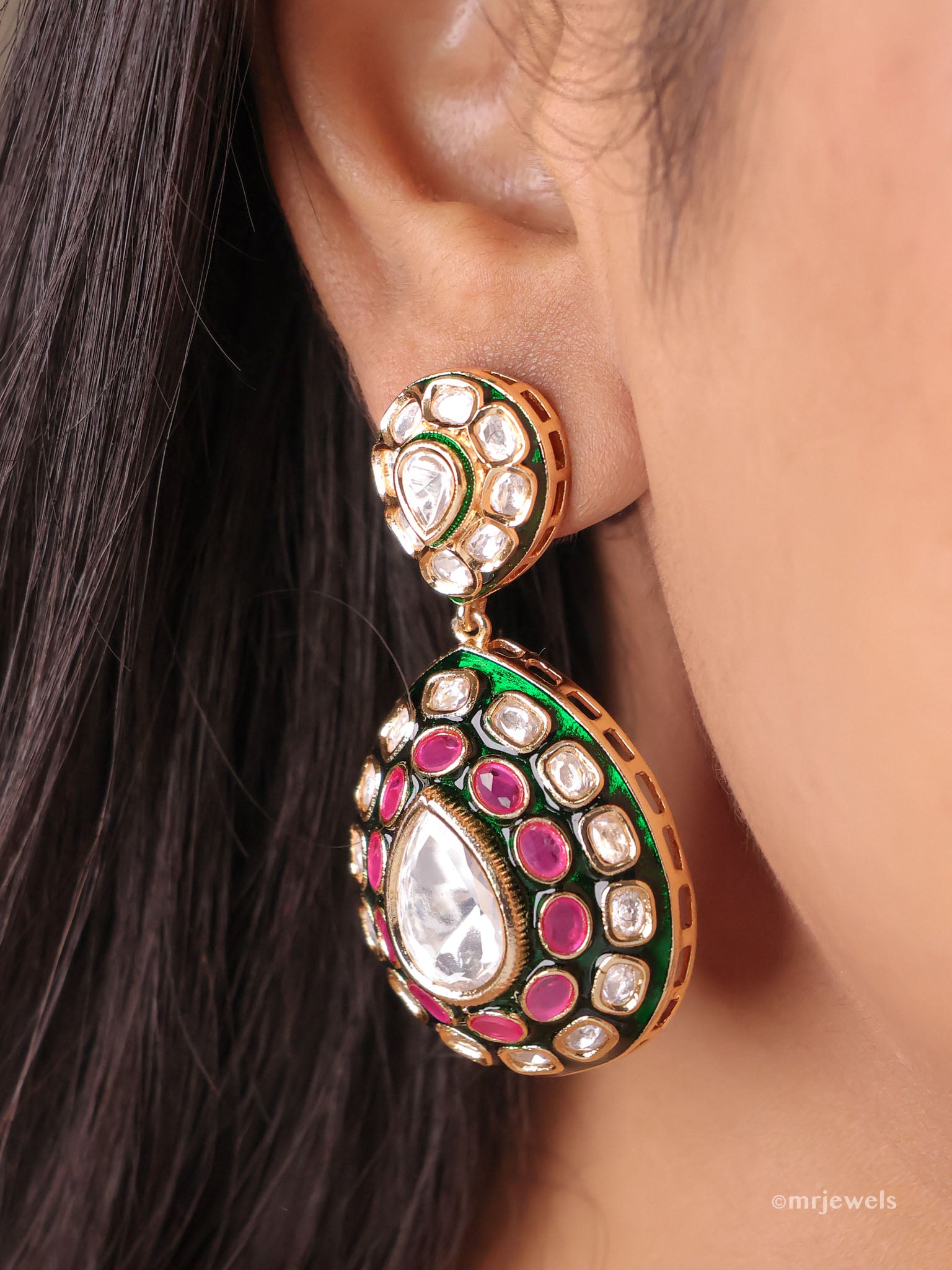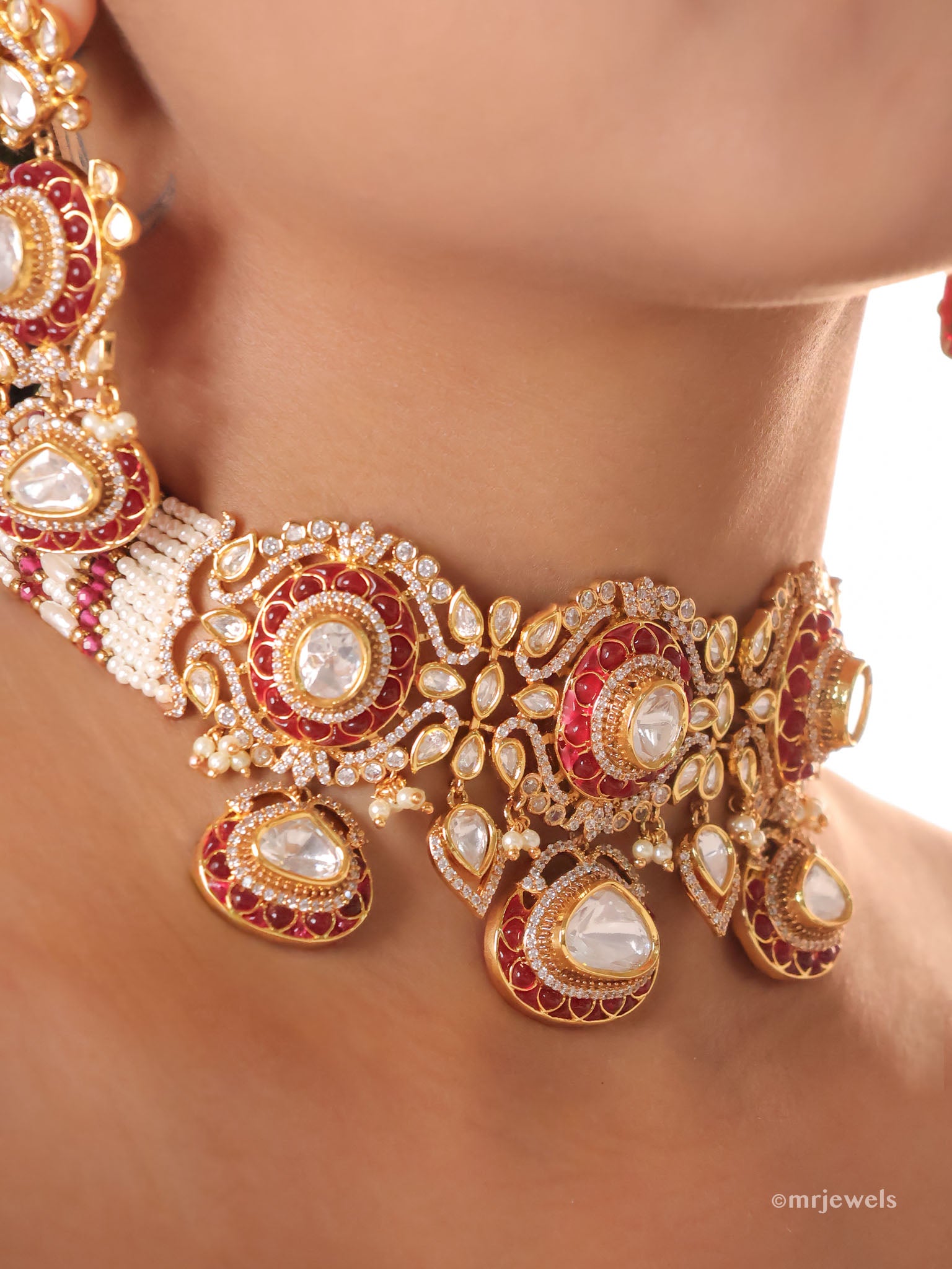 Emerald and Ruby Meenakari Polki Choker Set (with Earrings)