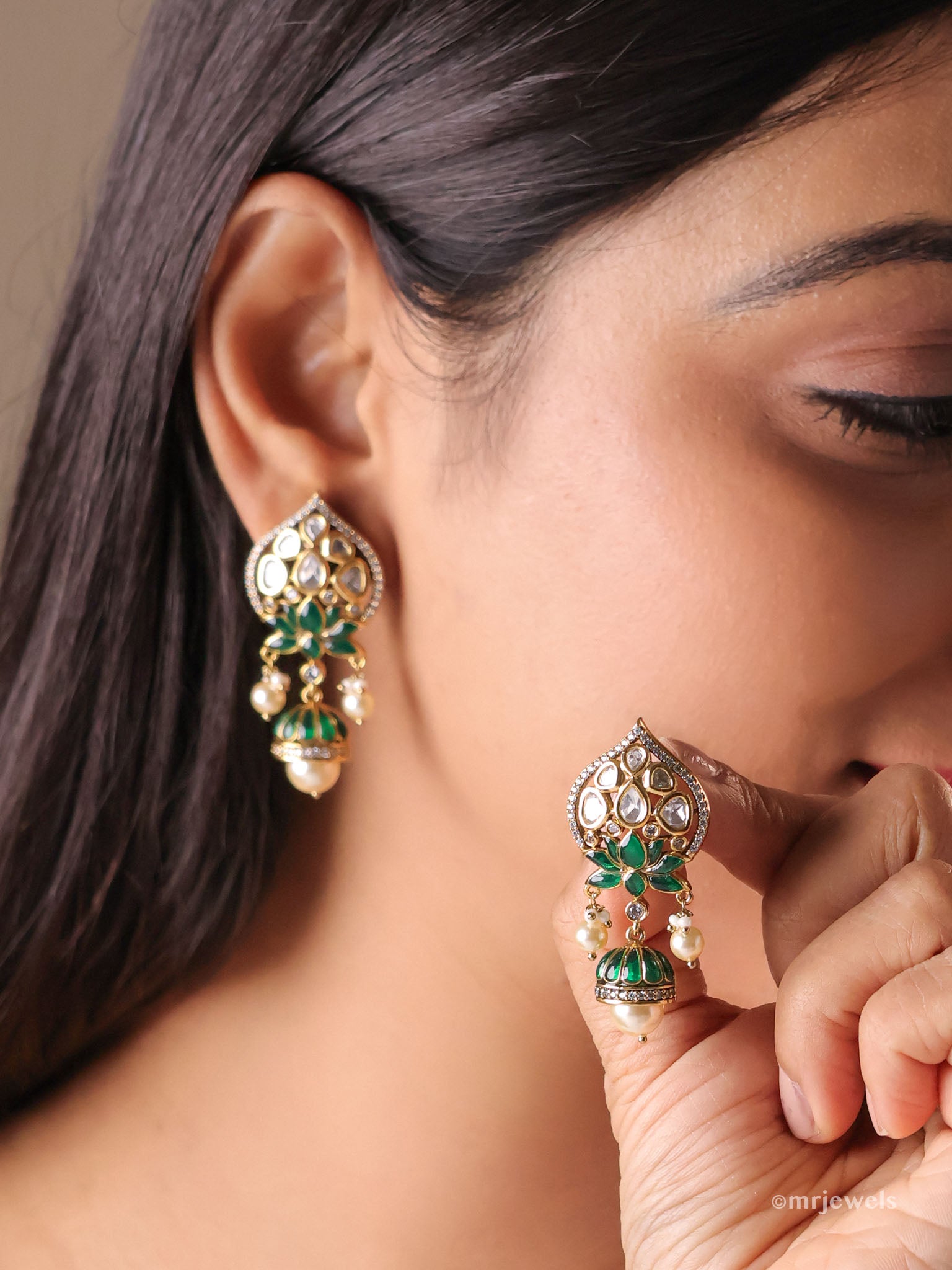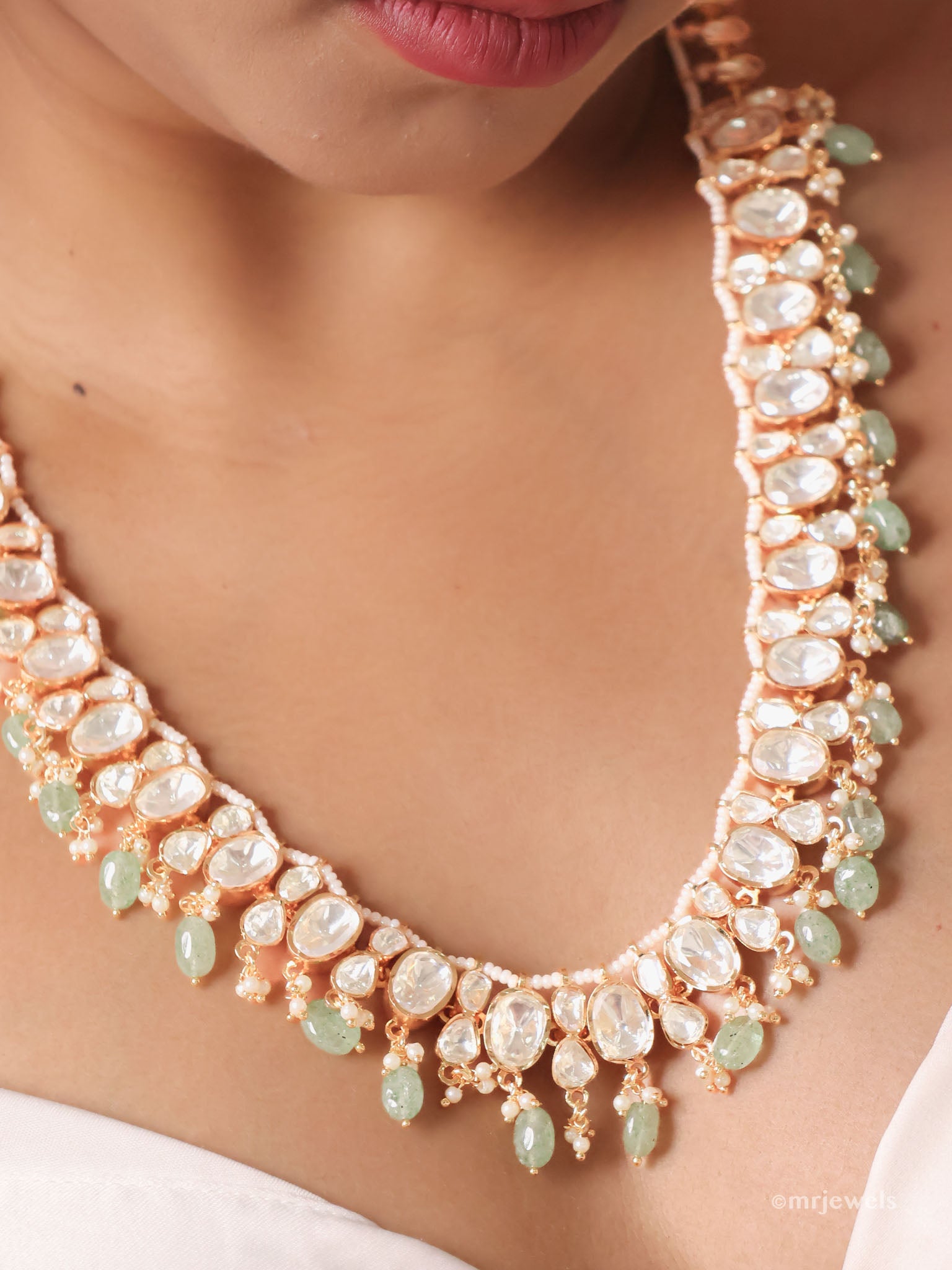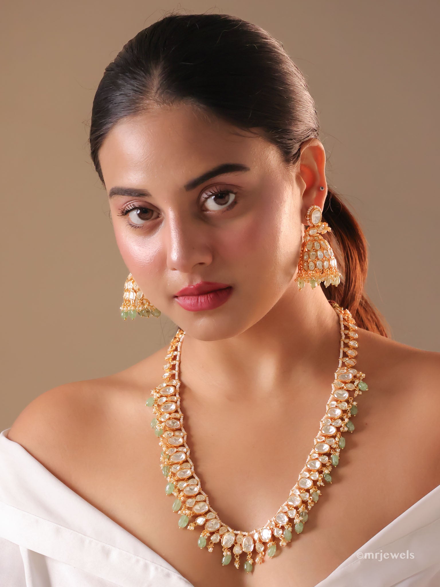 Meher Mint Polki Necklace Set (with Jhumkas)