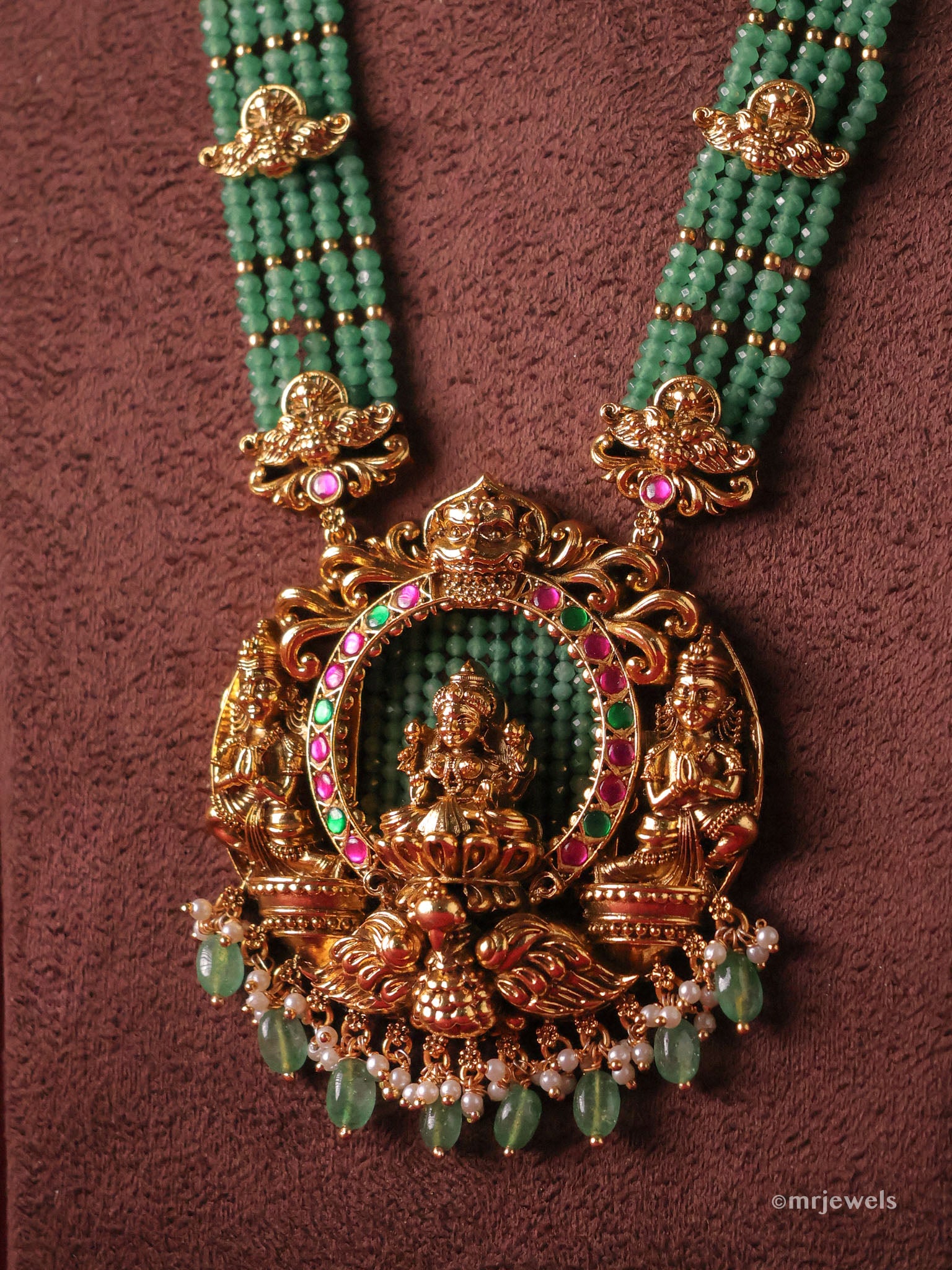 Emerald Lakshmi Temple Jewellery Set (with Earrings)