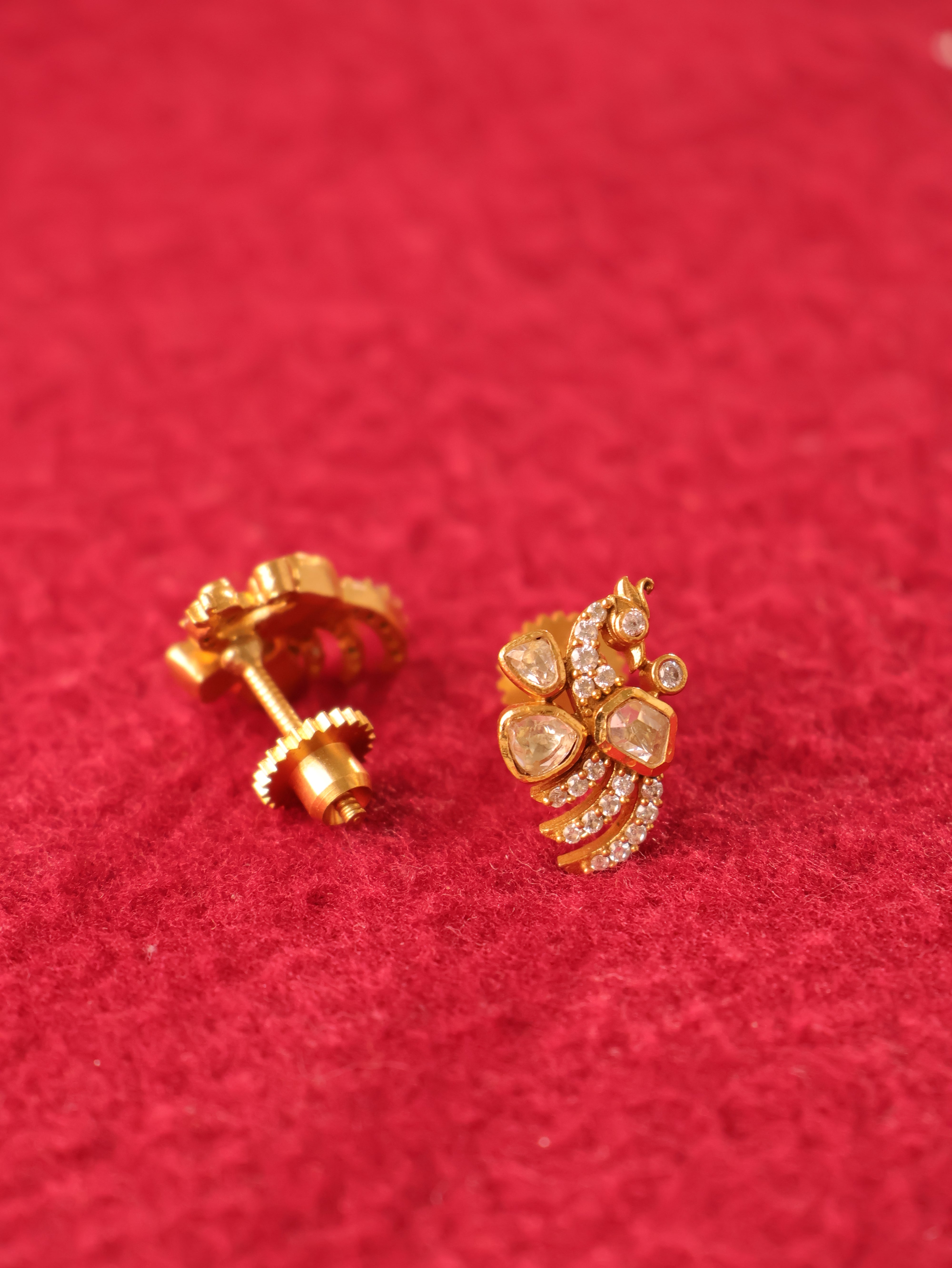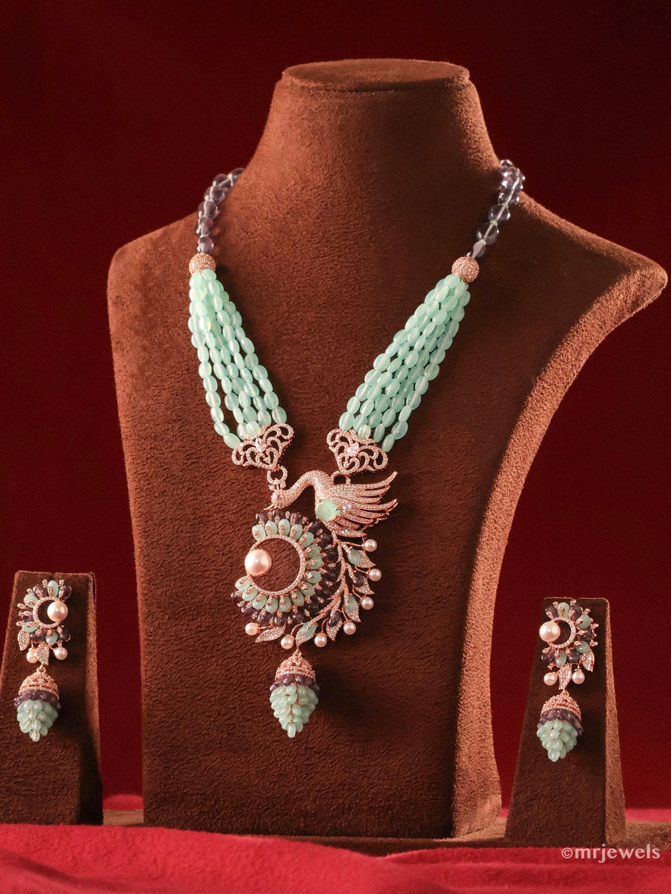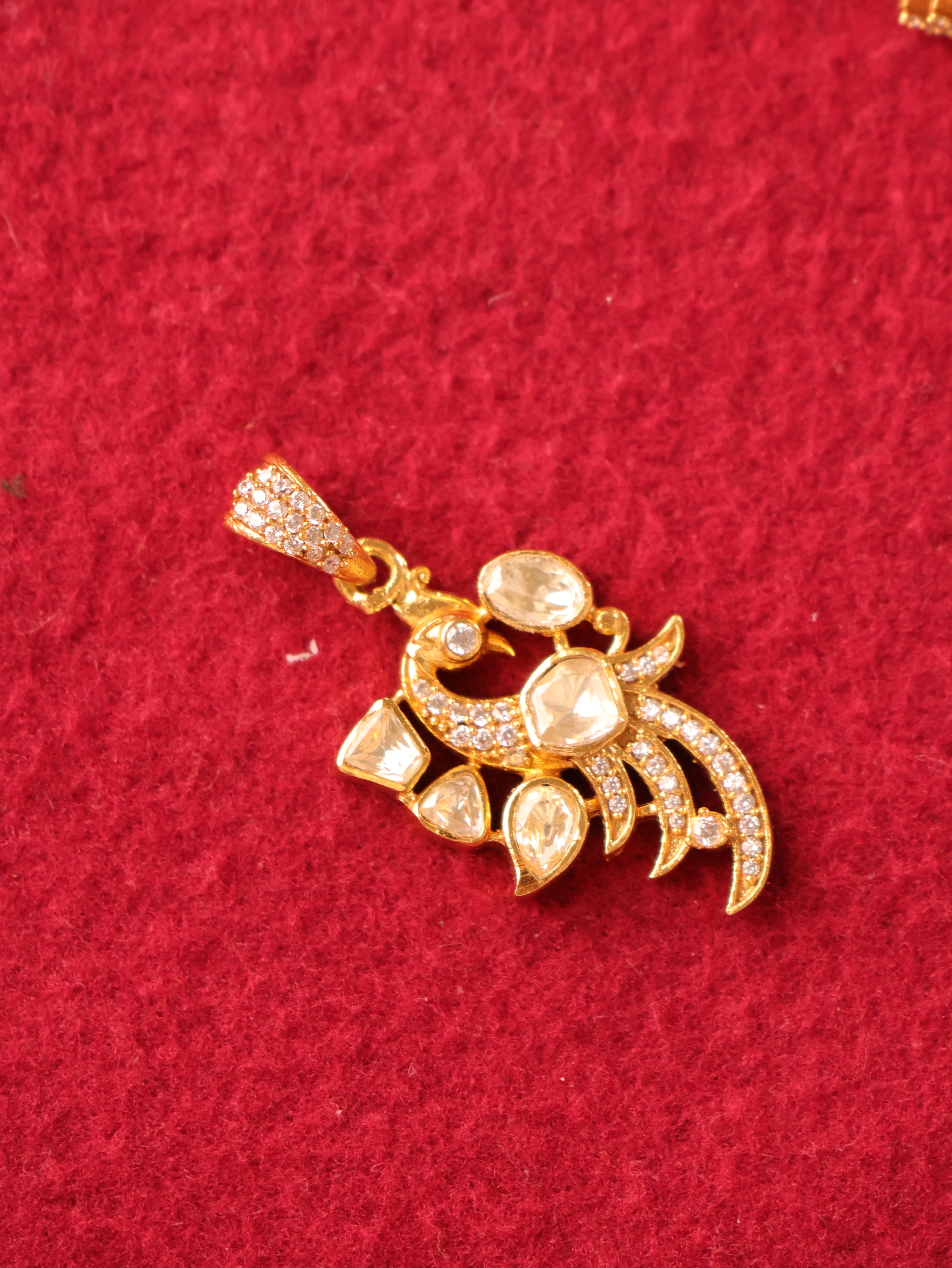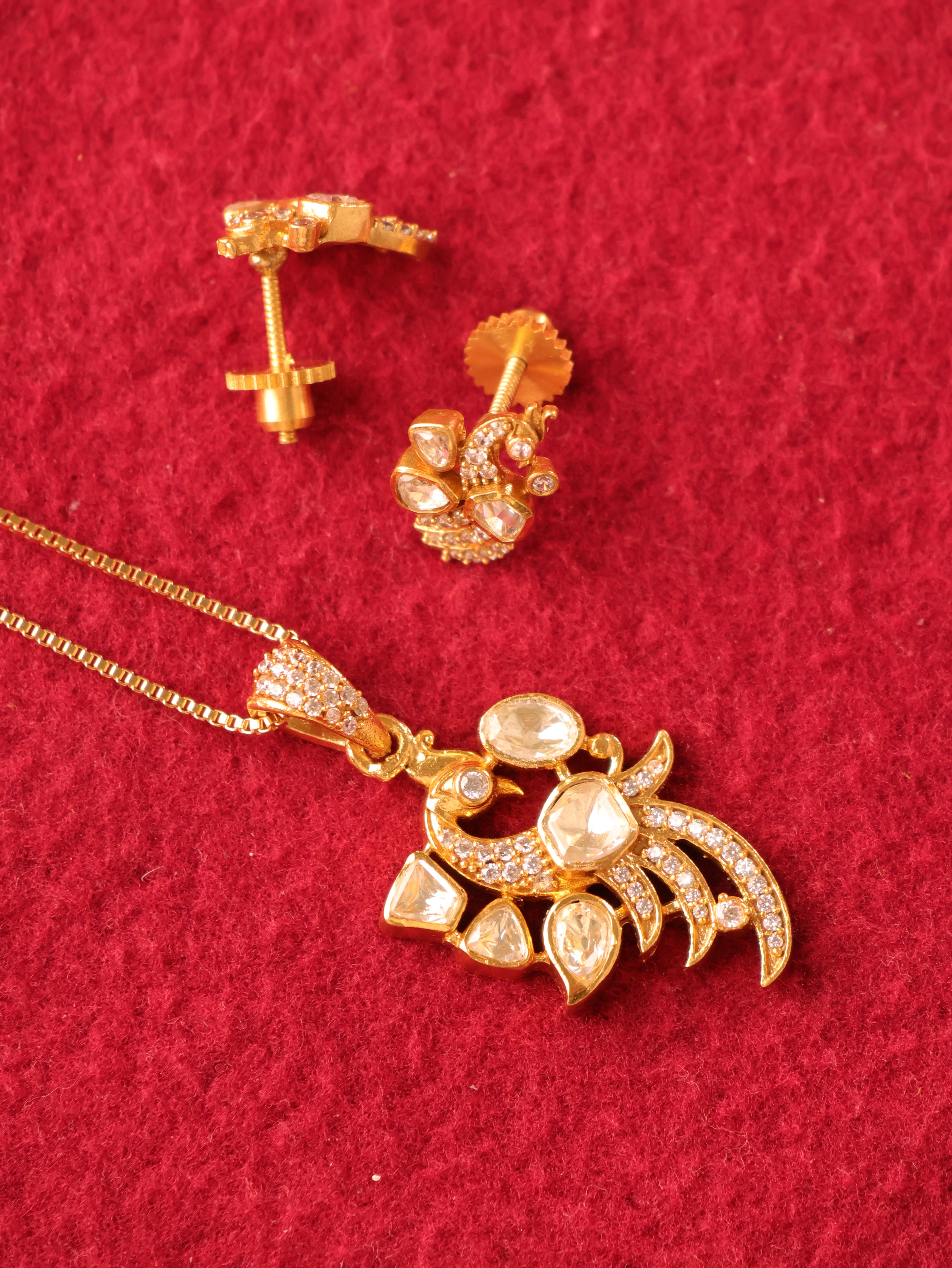 Moissanite Peacock Pendant set with Matching earrings with screw back studs