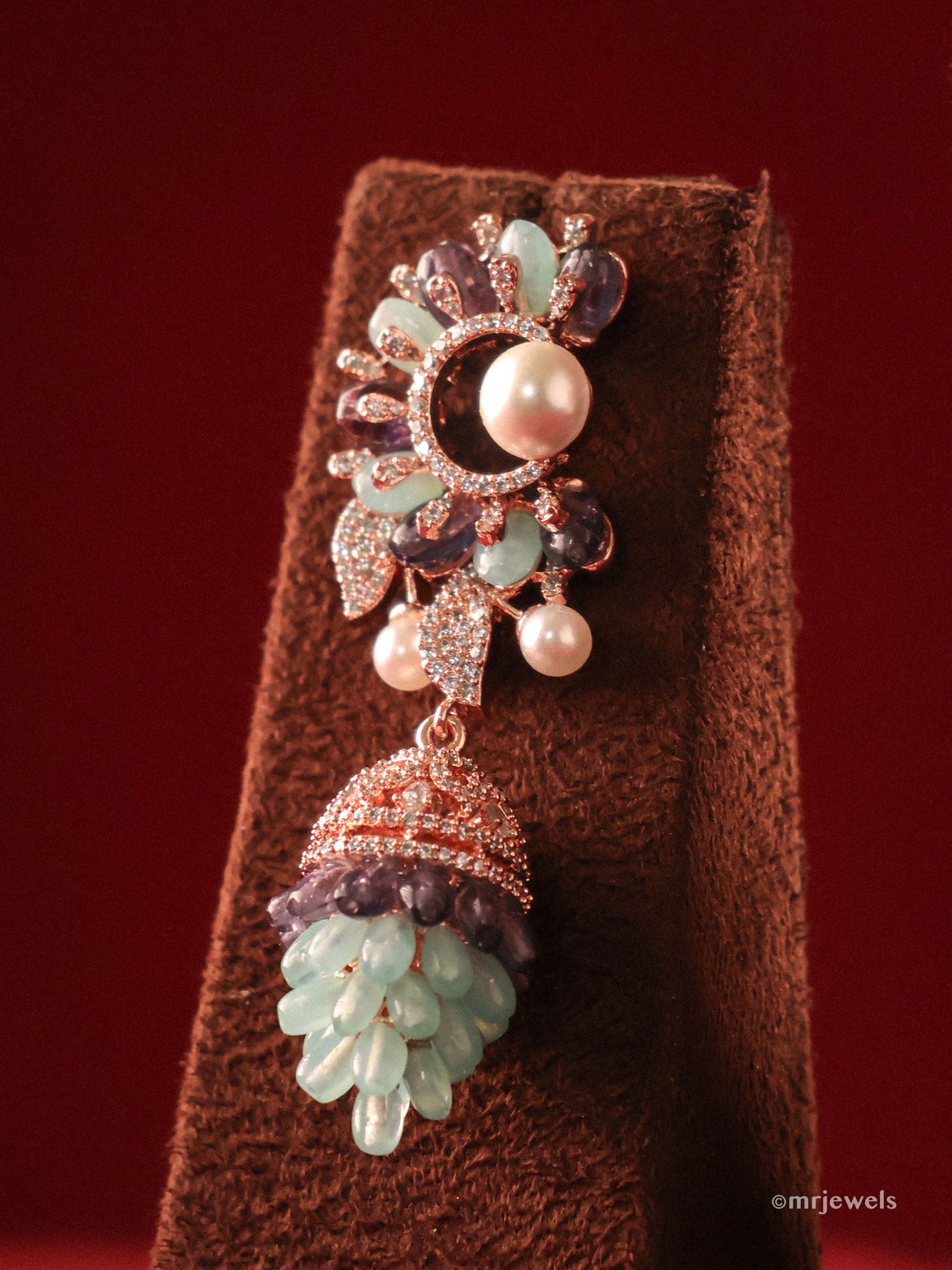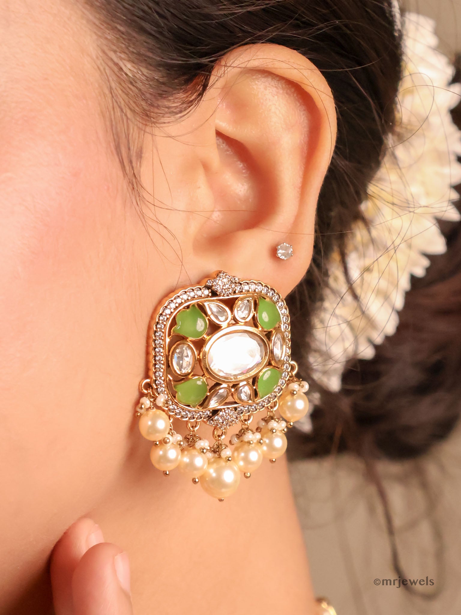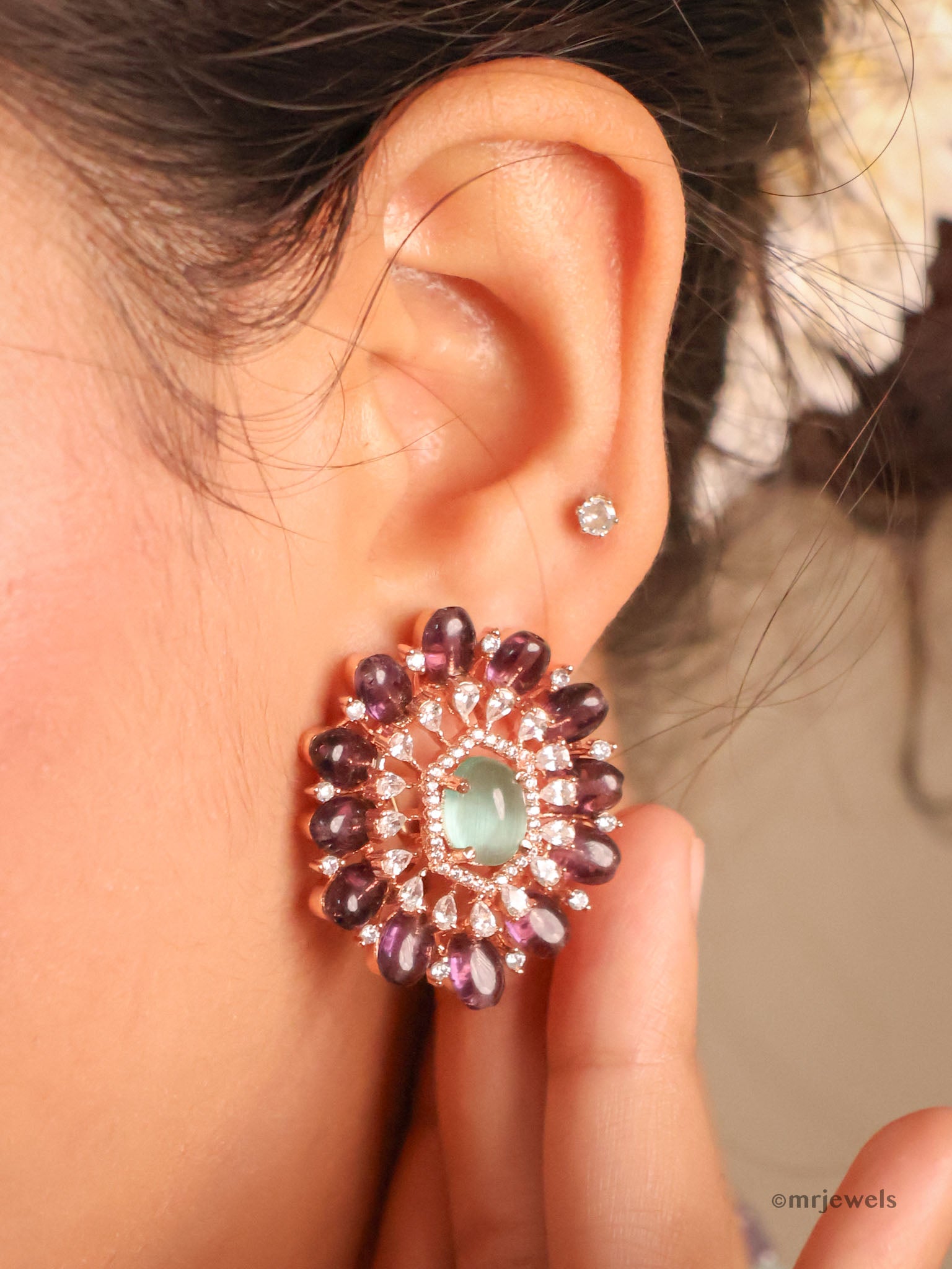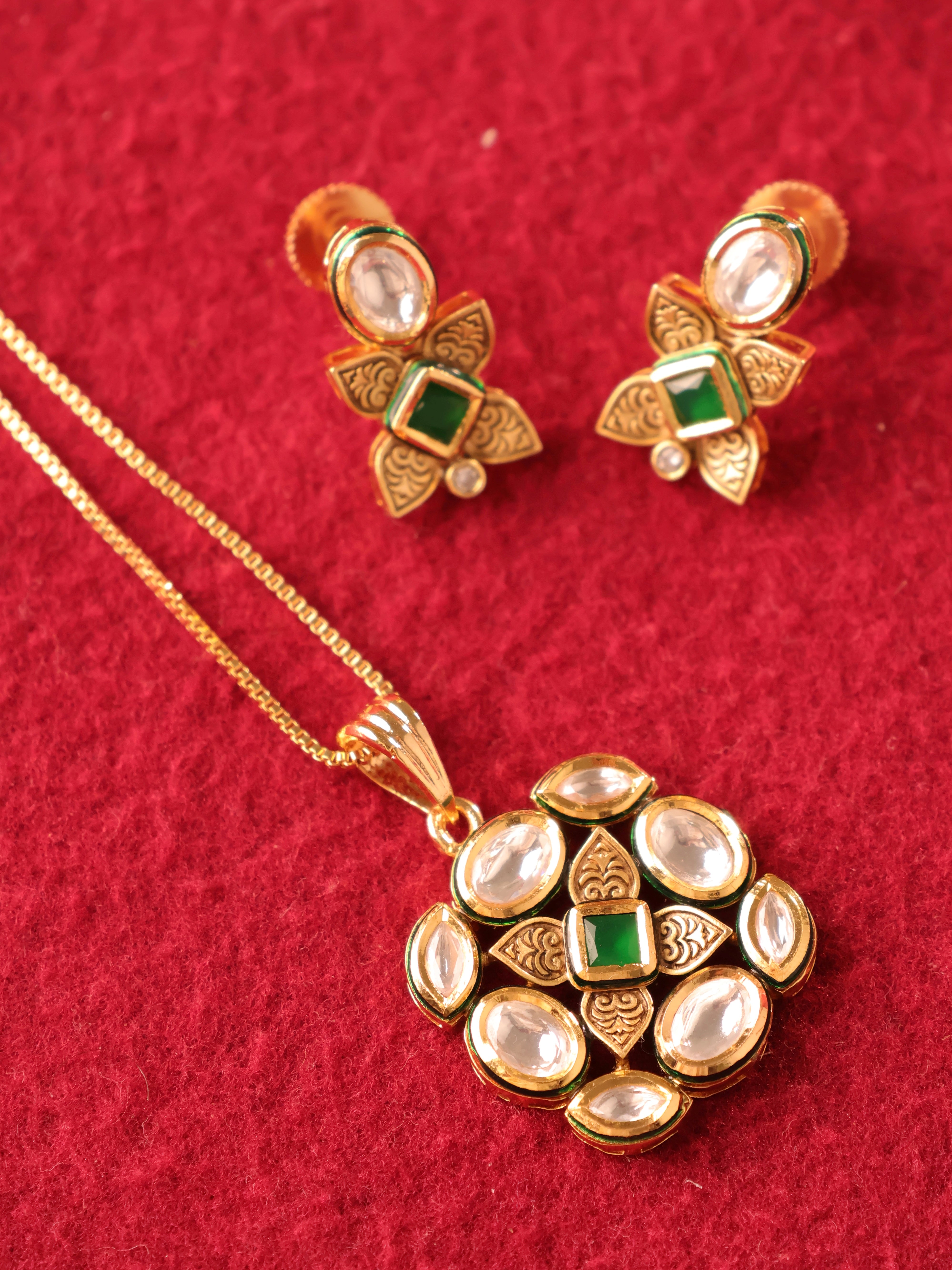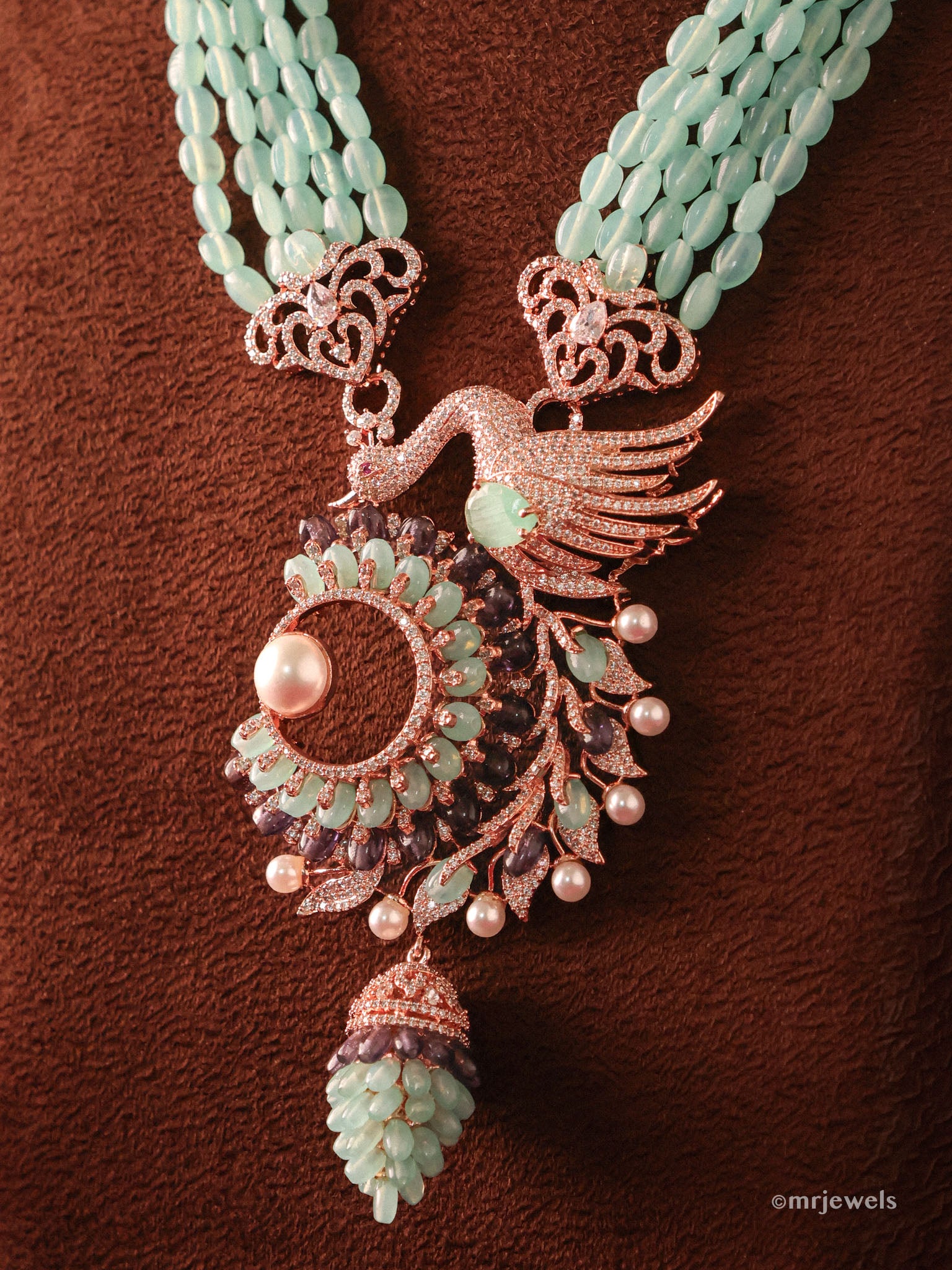 Moissanite Peacock Pendant set with Matching earrings with screw back studs