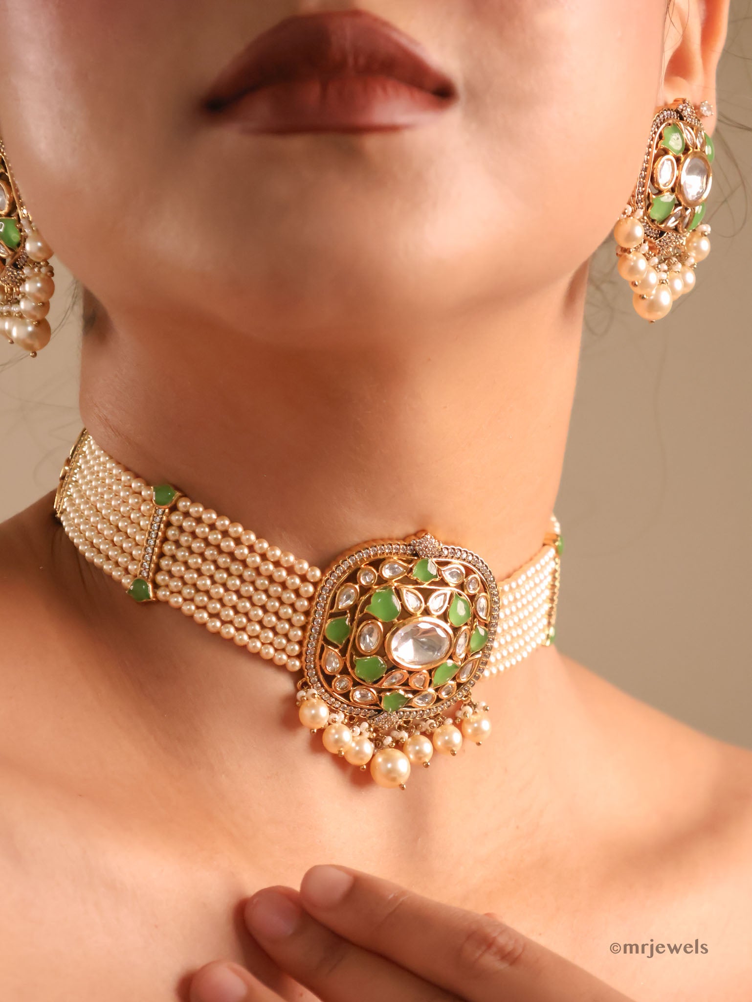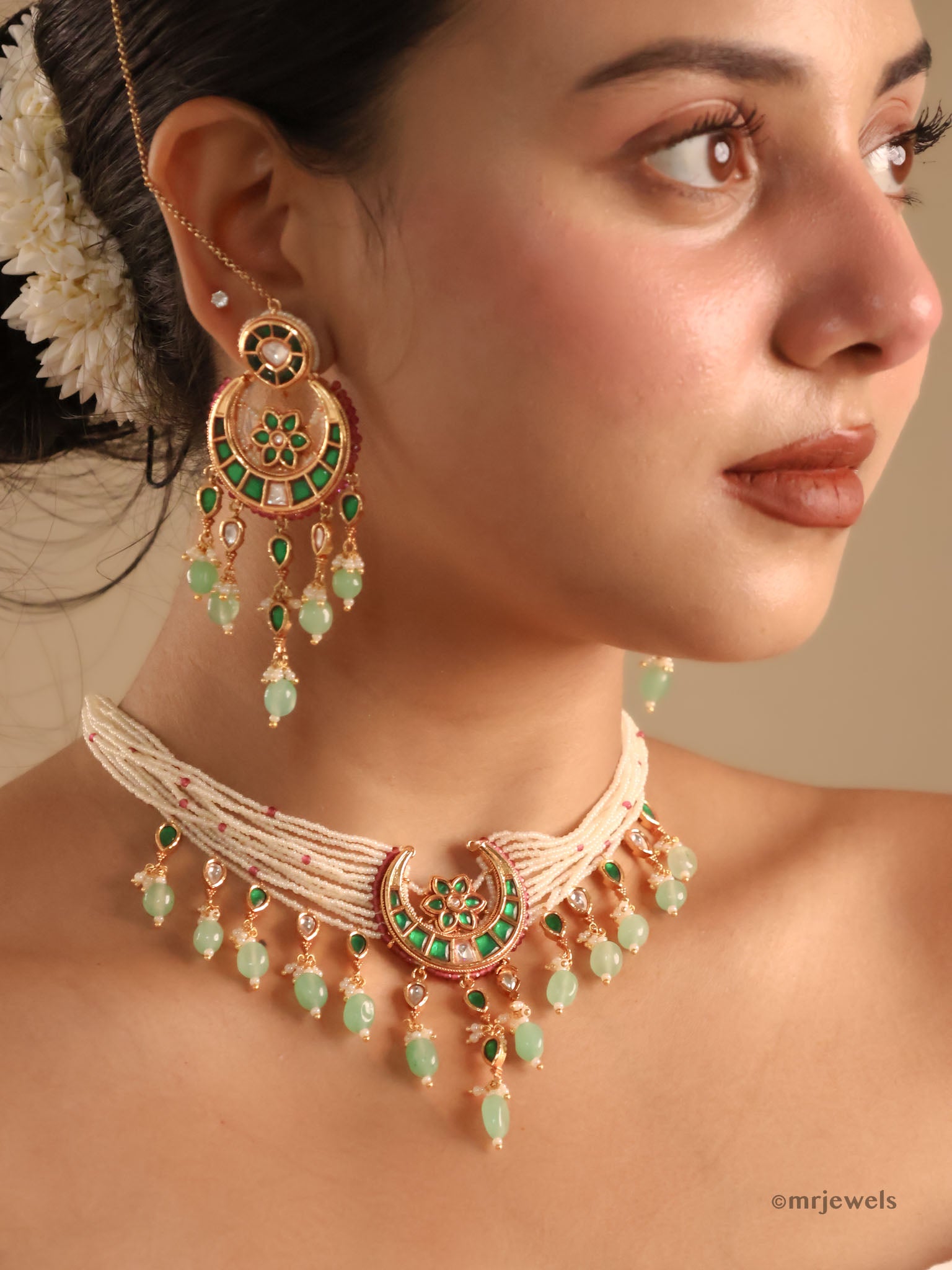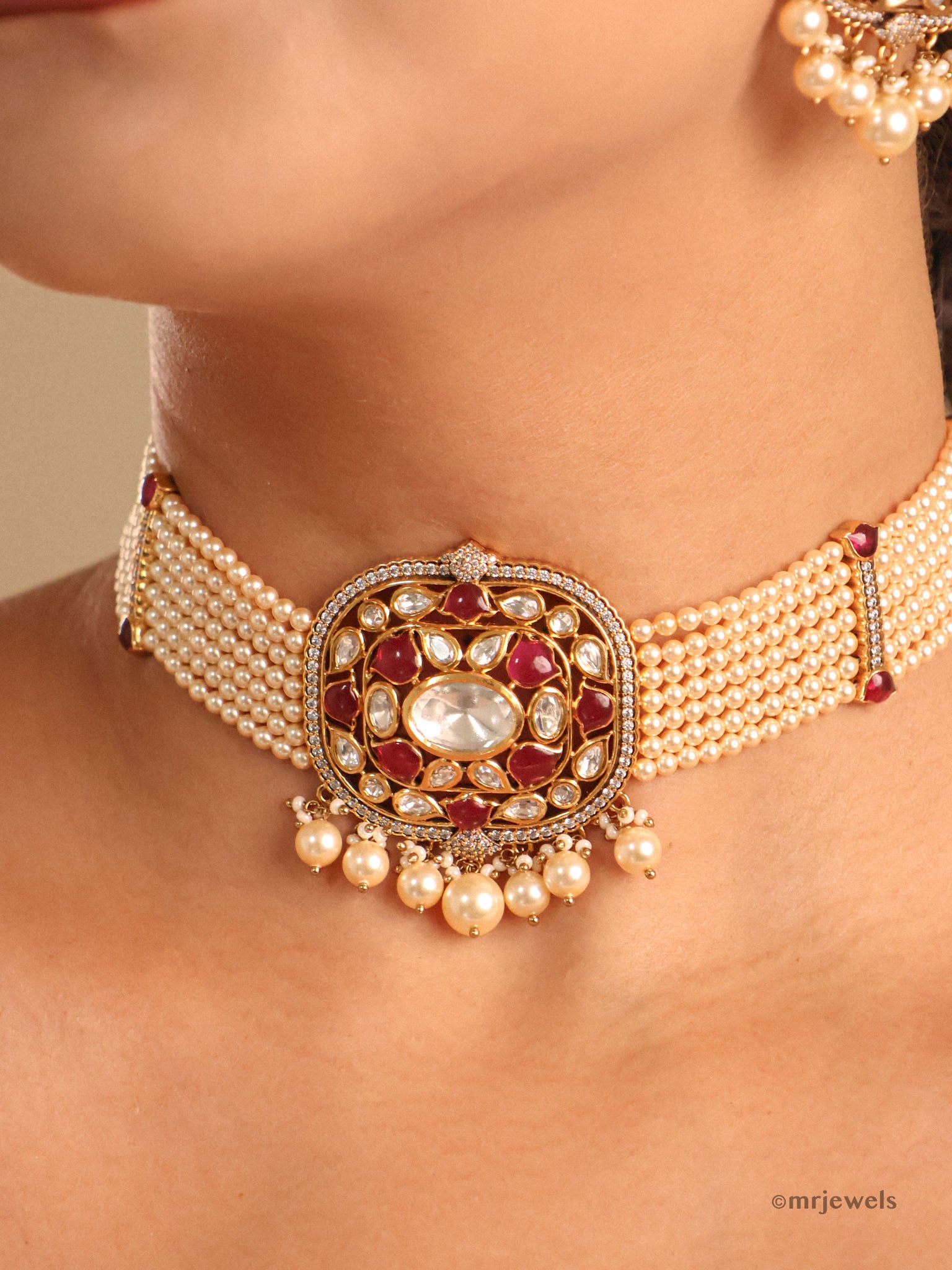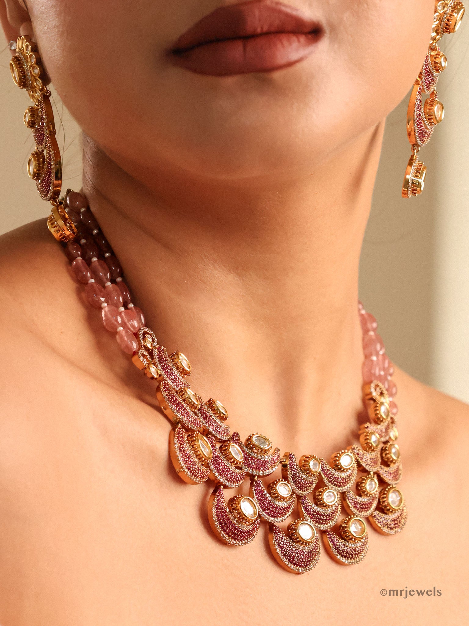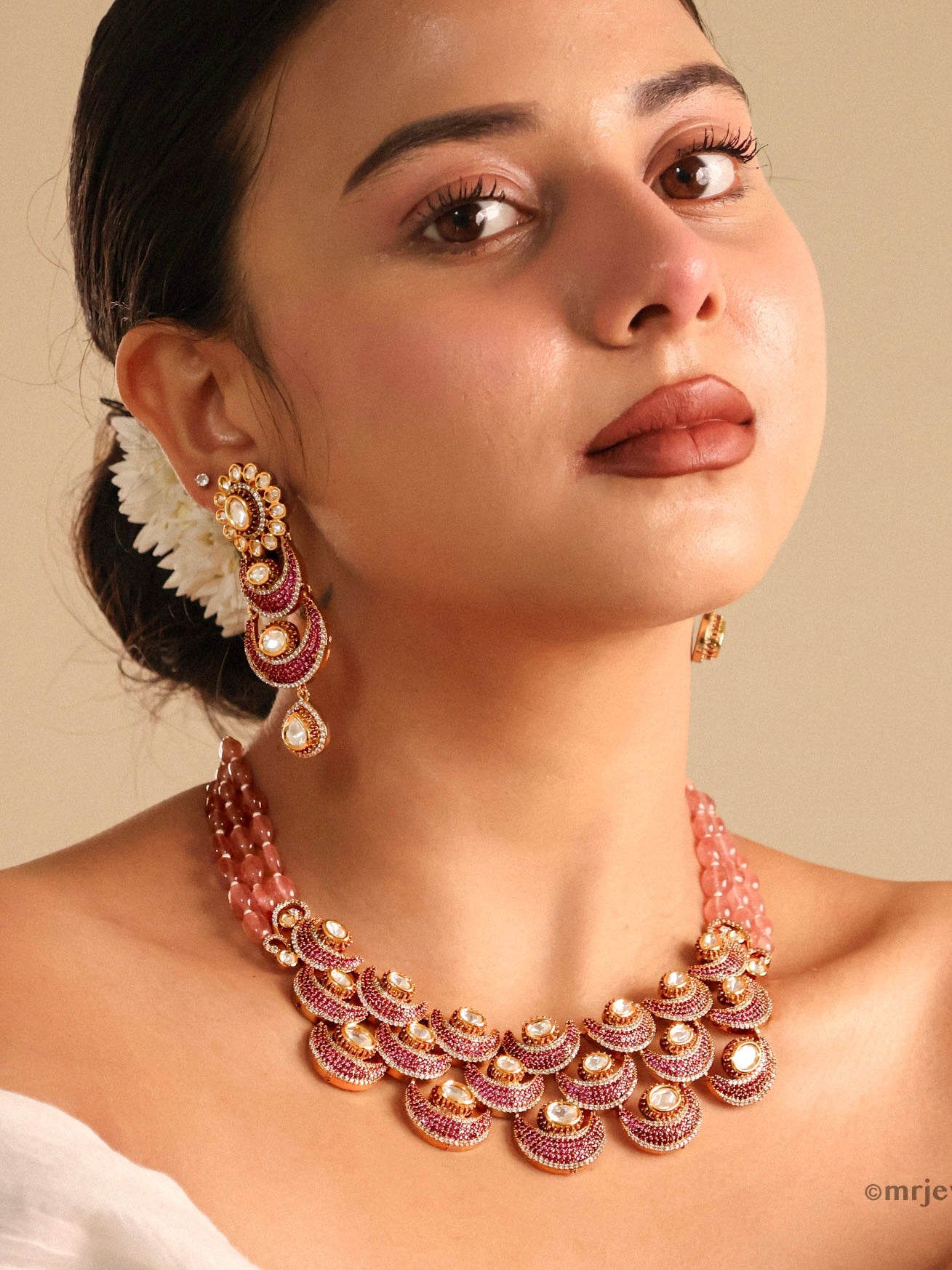 Luxury Polki Ruby Statement Necklace Set | Bespoke Jewellery