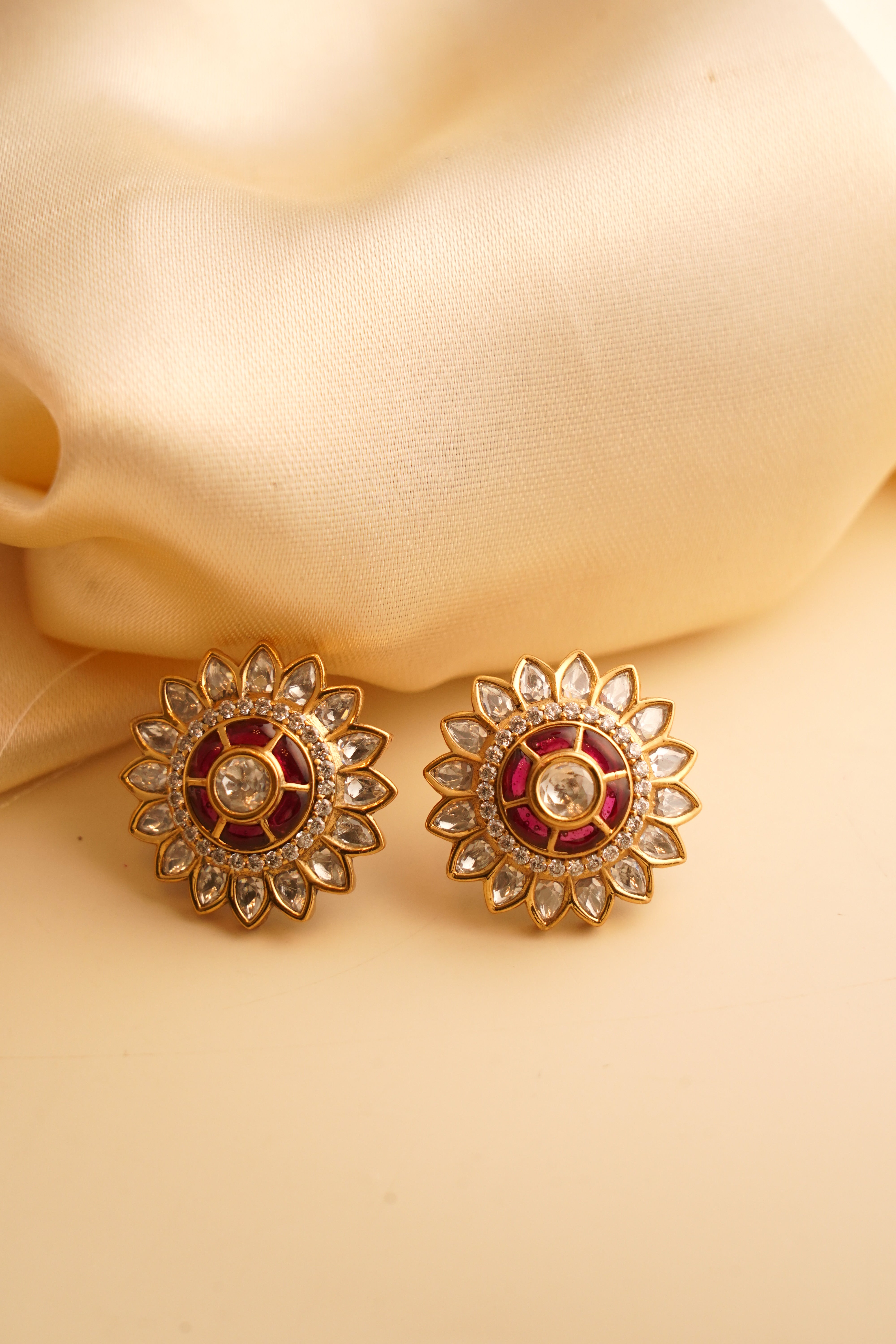 Exquisite Ruby Flower Ring with Diamond Accents - Perfect Blend of Elegance and Glamour(free size)