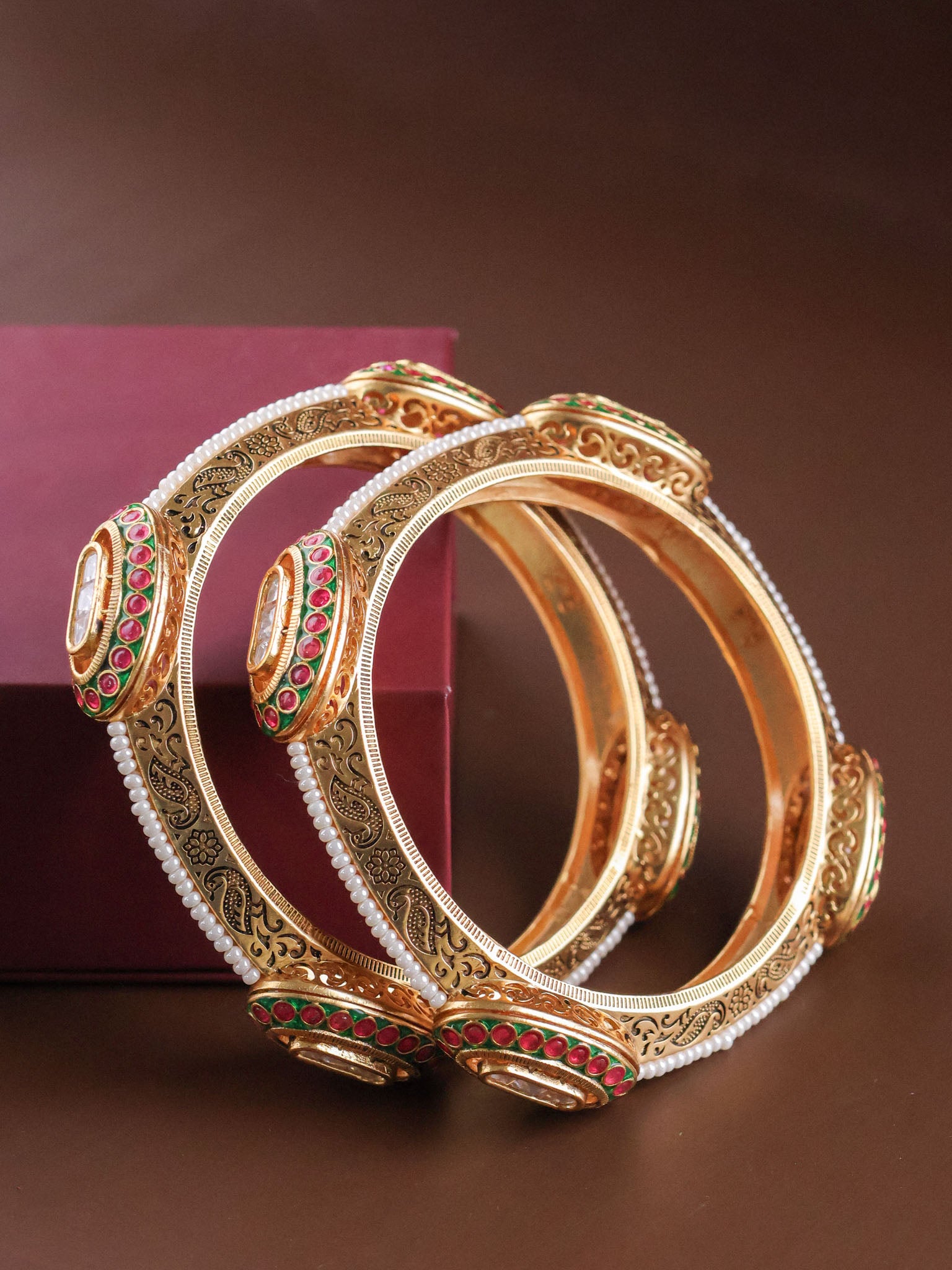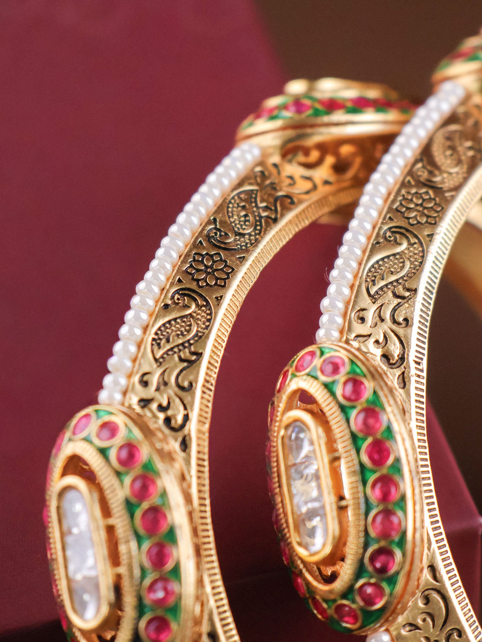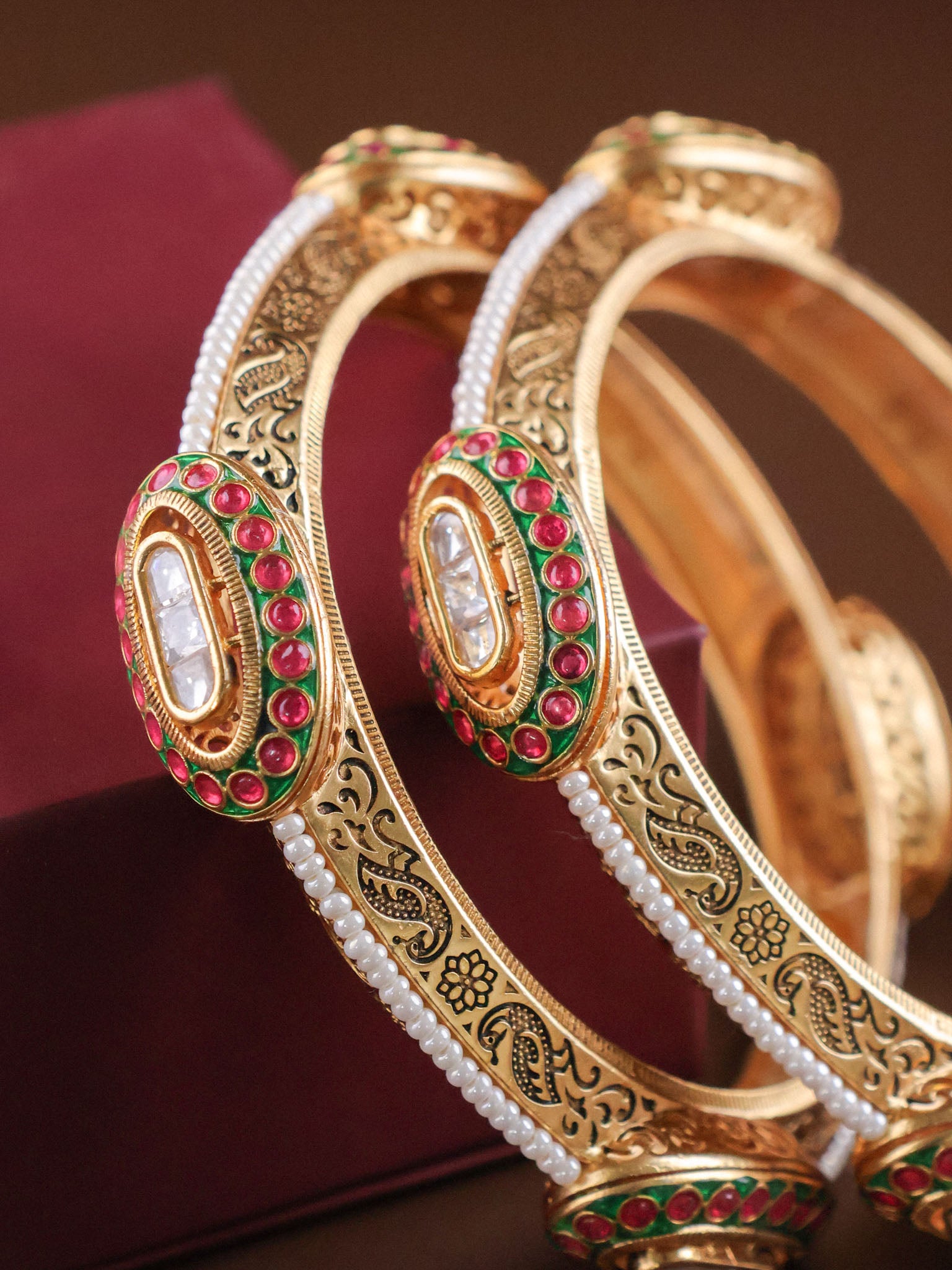 Elevate your traditional look with the Regal Oval Kundan Heritage Bangles, crafted with exquisite detailing and timeless artistry.