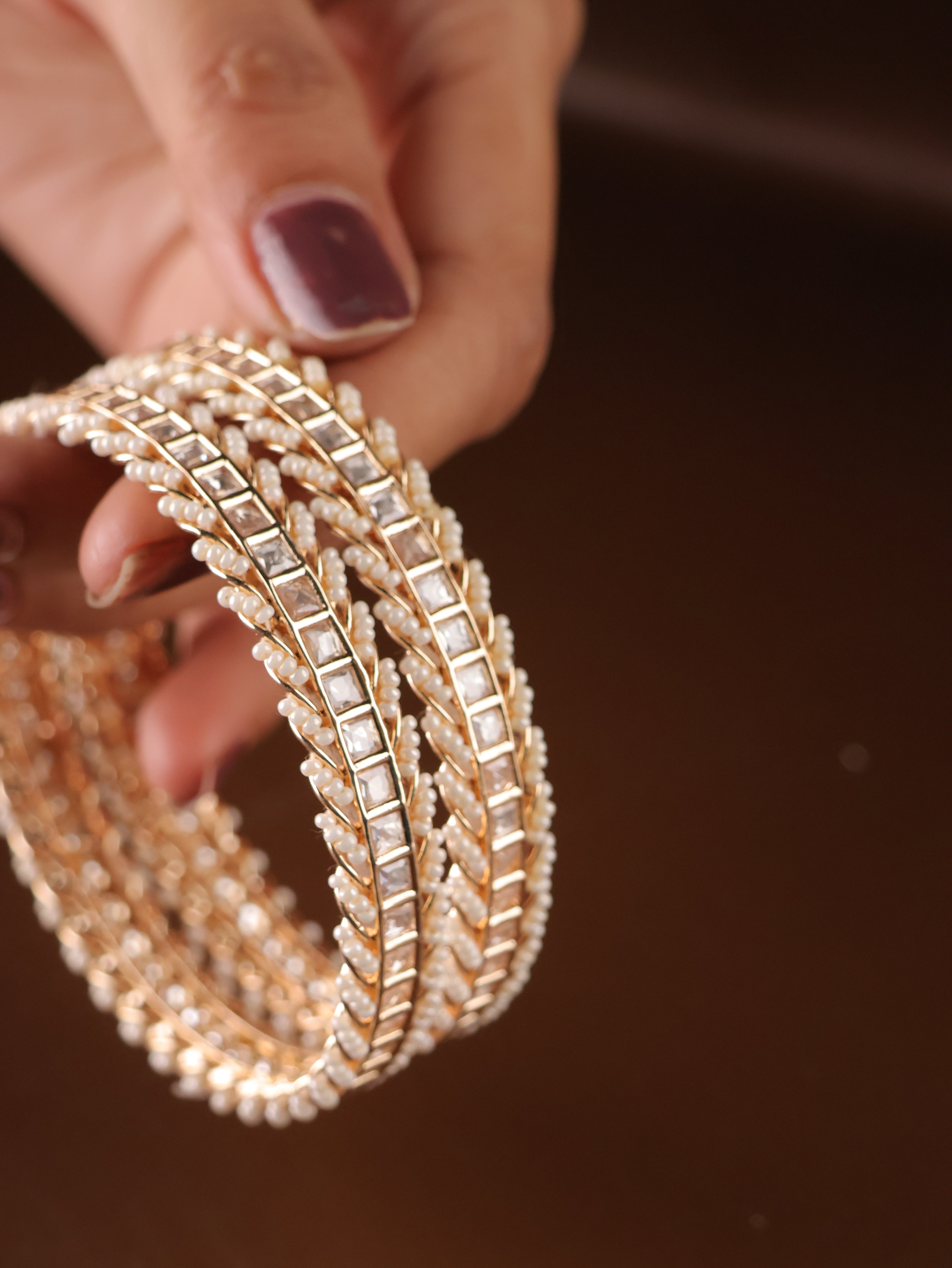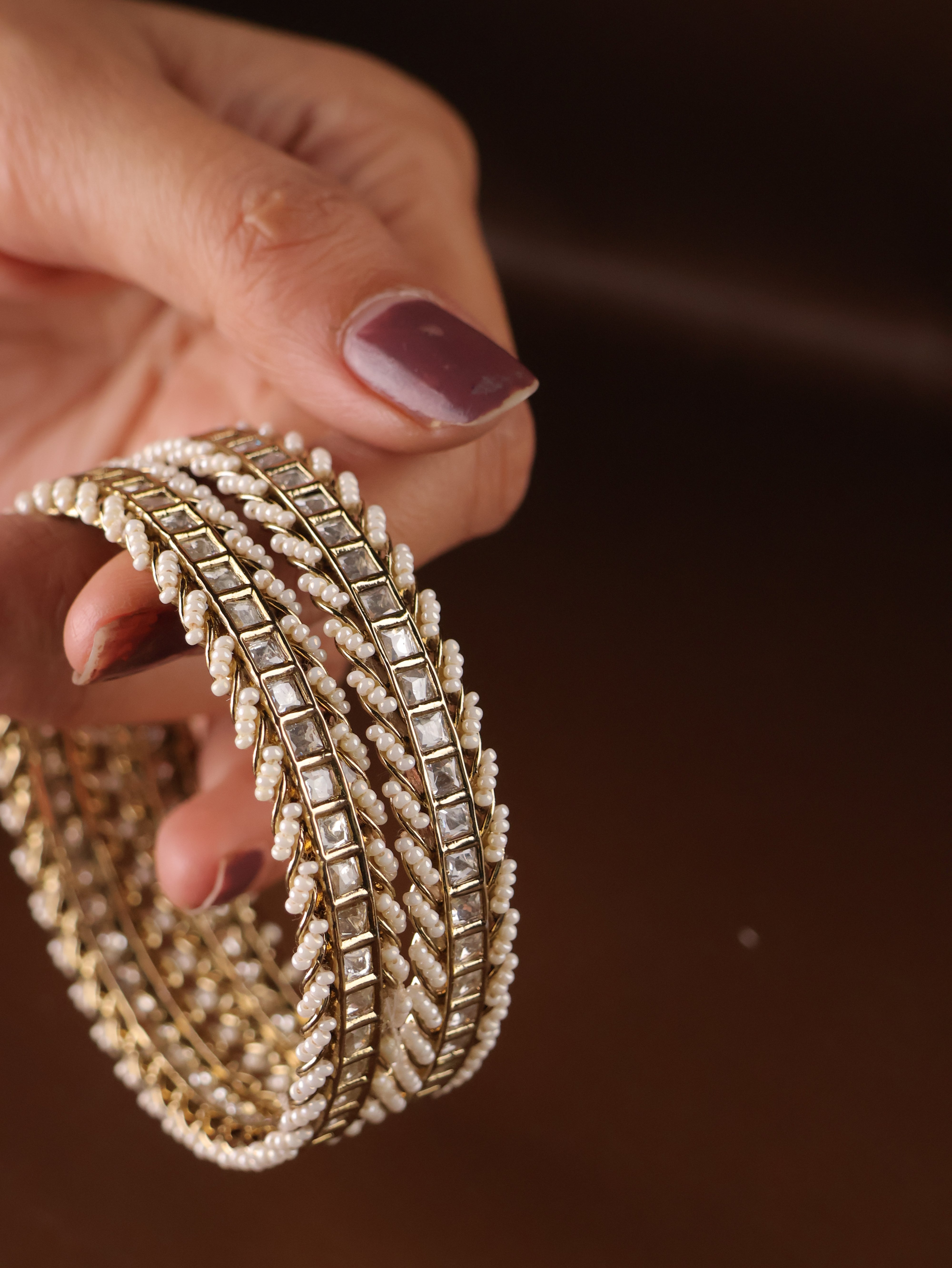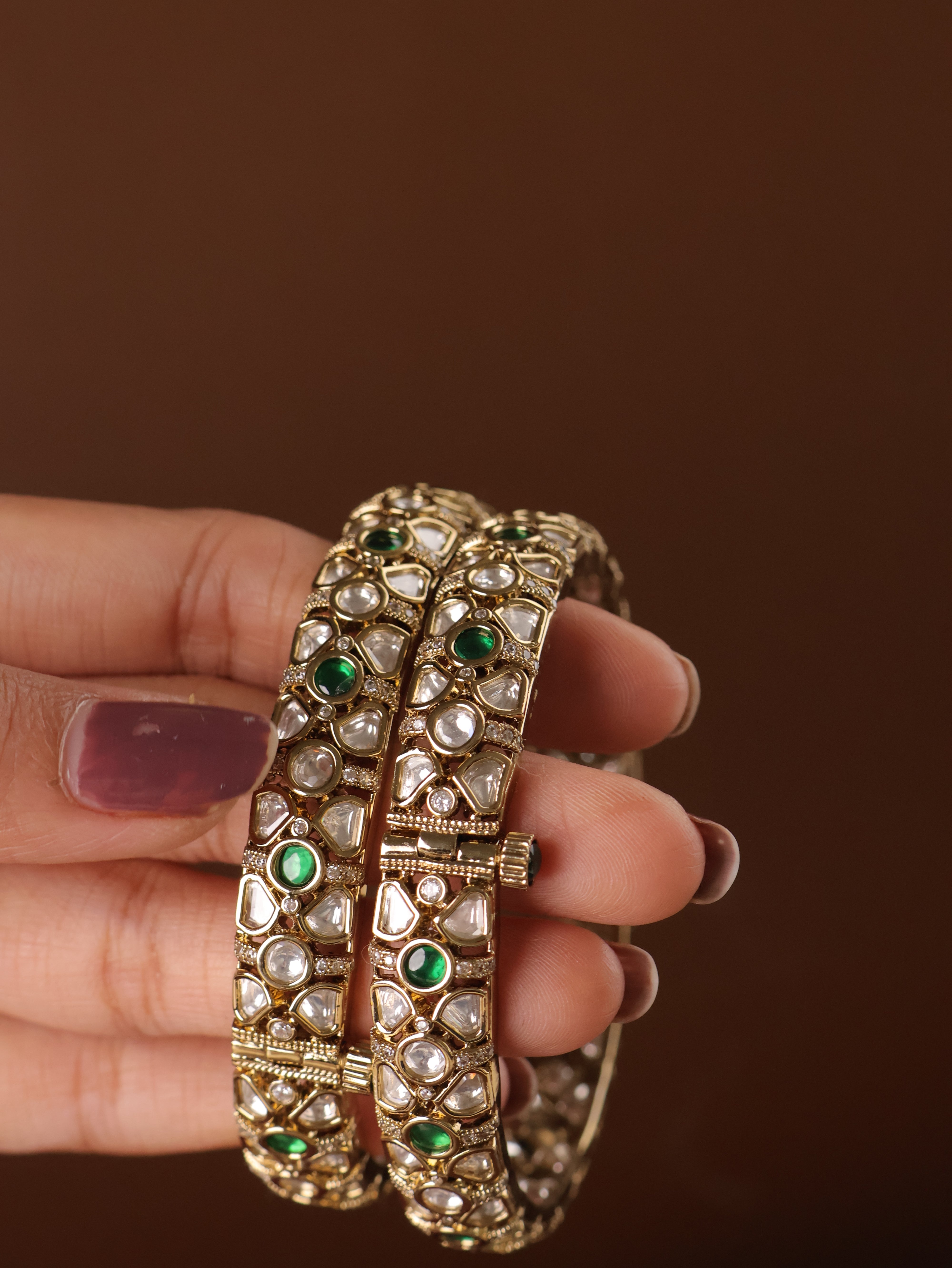 Jharokha Emerald-Edge Polki Bangles (Pair)