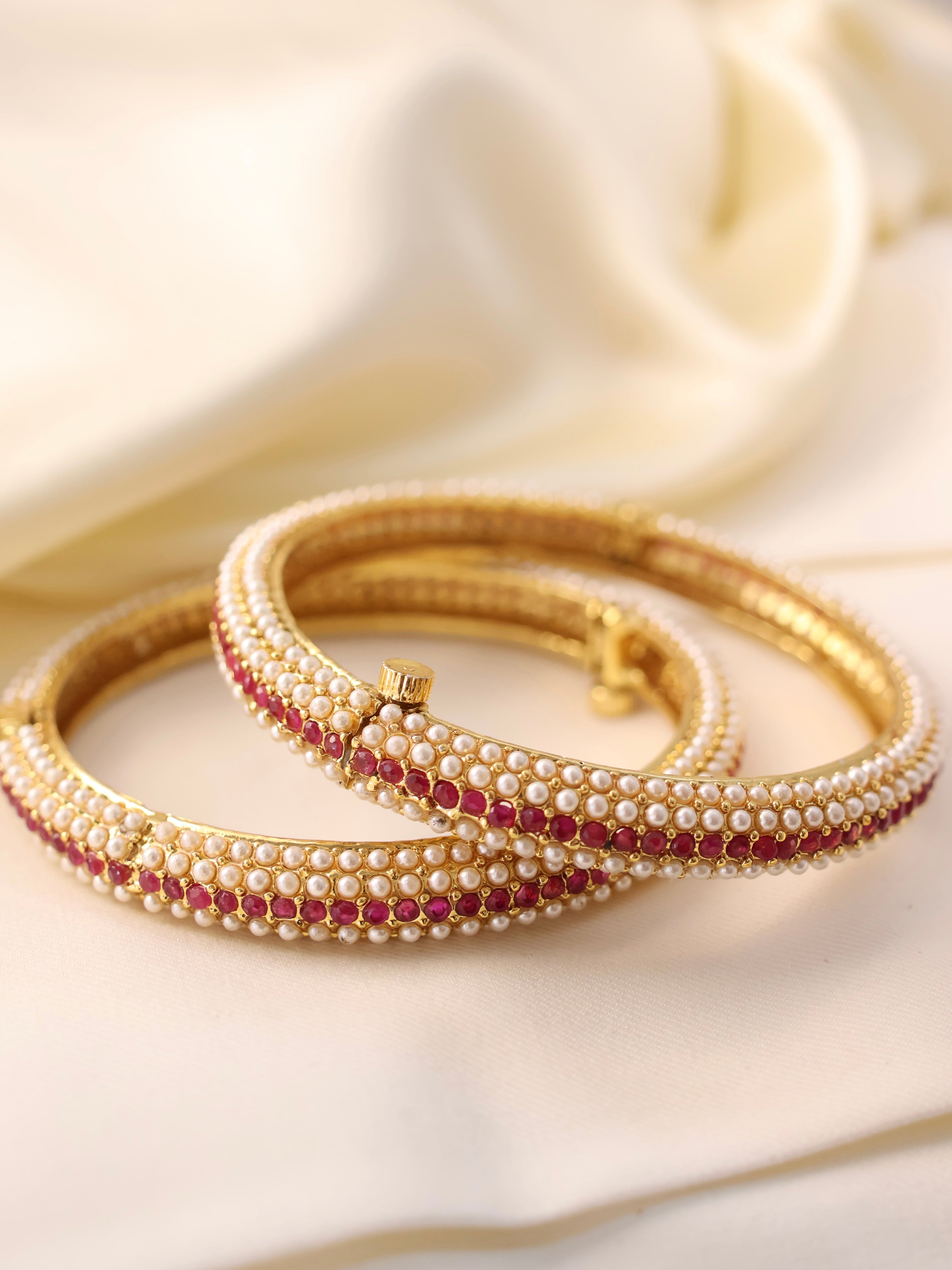 Antique Gold Ruby Pearl Bangles- Set Of 2