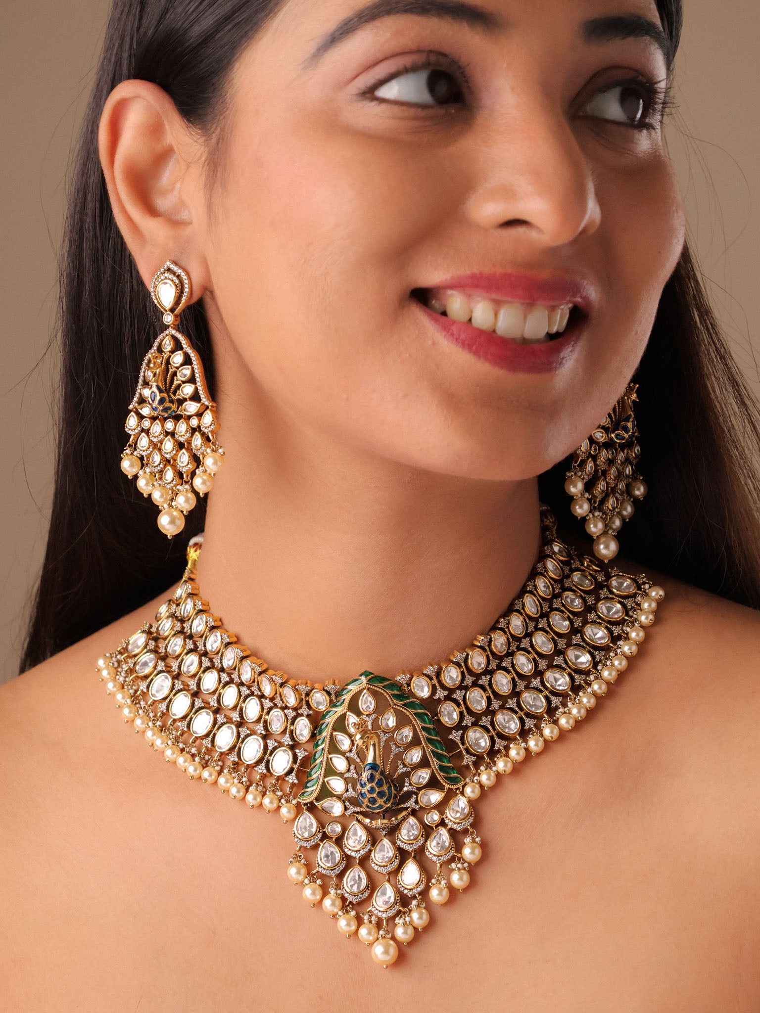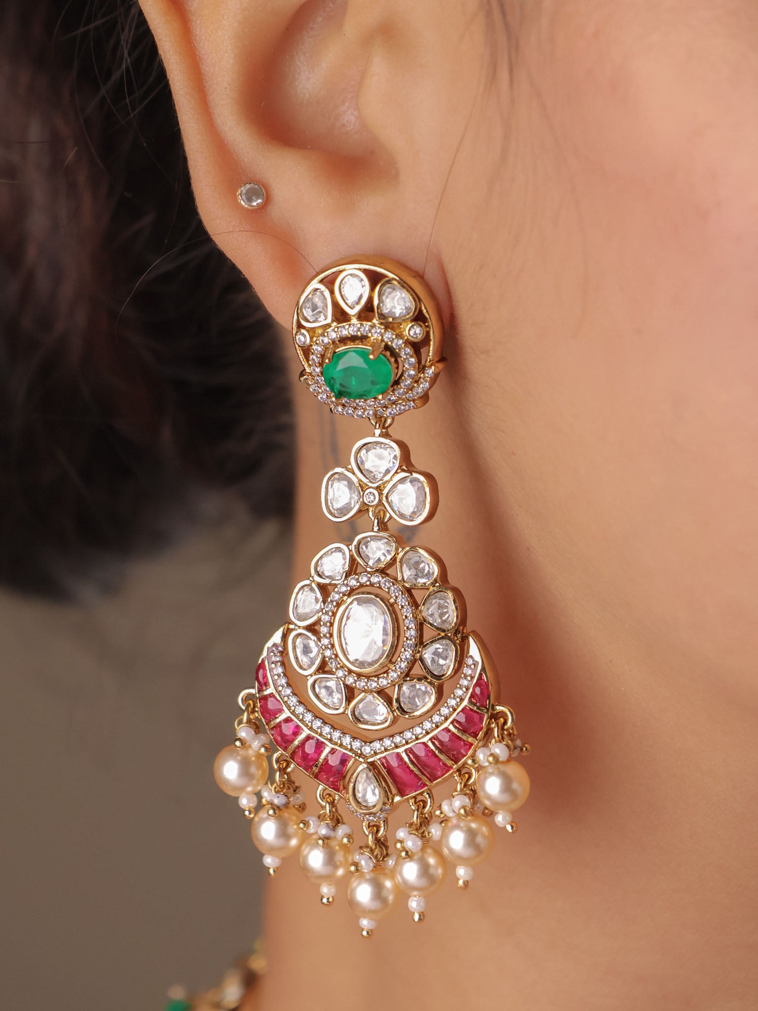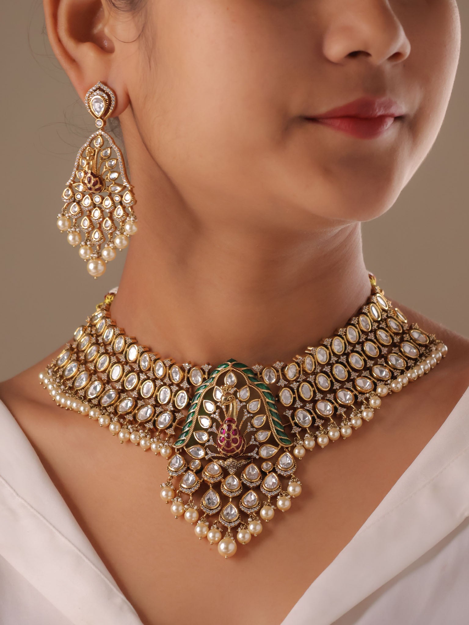 Emerald Shehzadi Polki-Drop Bridal Choker Set