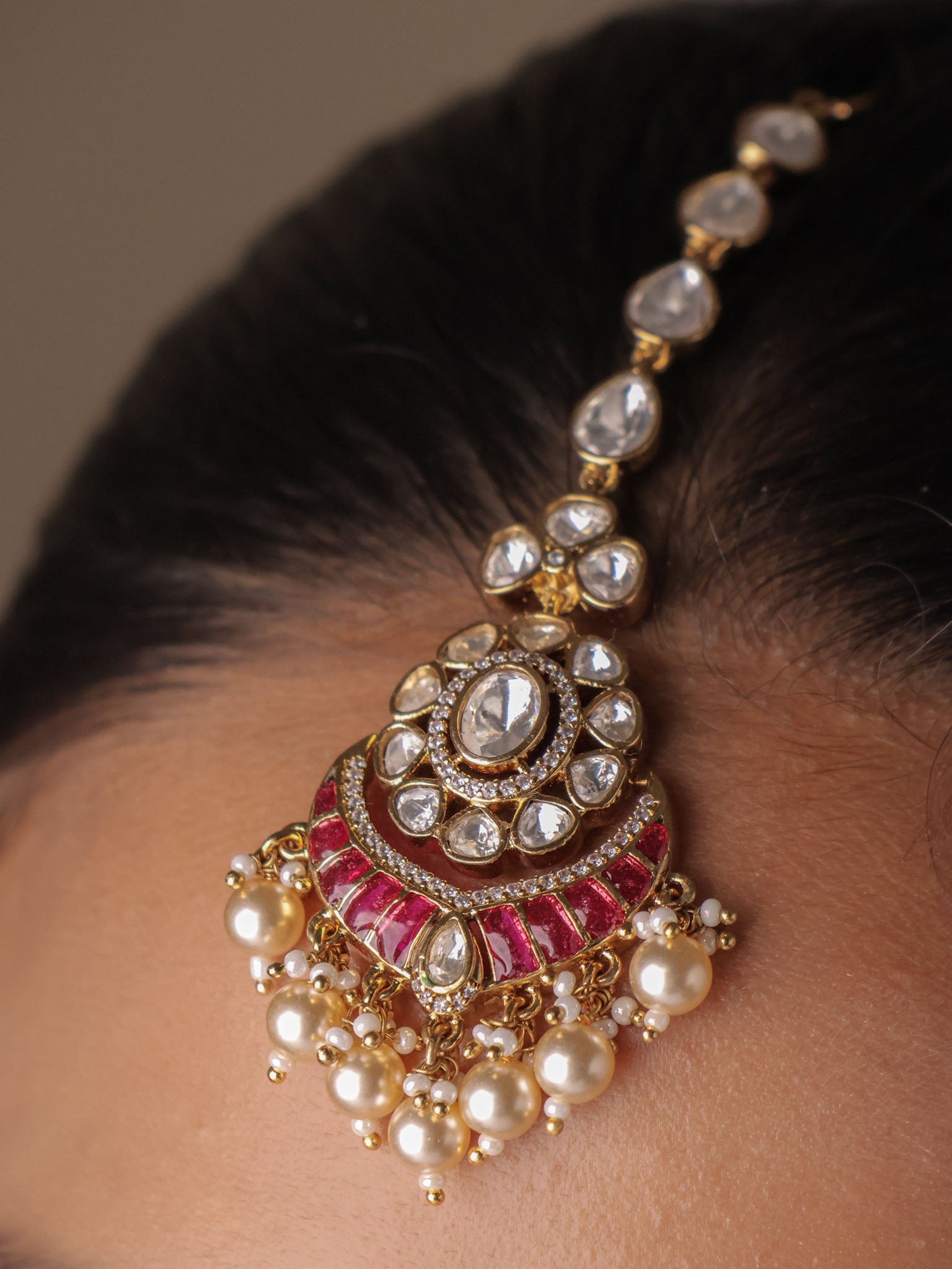 Anamika Ruby Kundan Polki Set with matching Maangtikka
