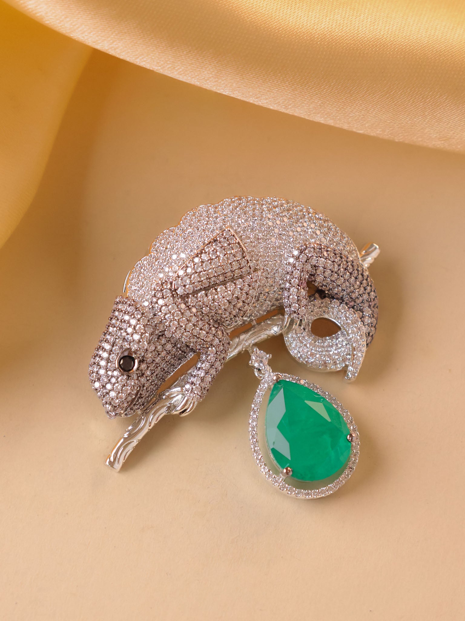 Emerald Chameleon Luxe Brooch