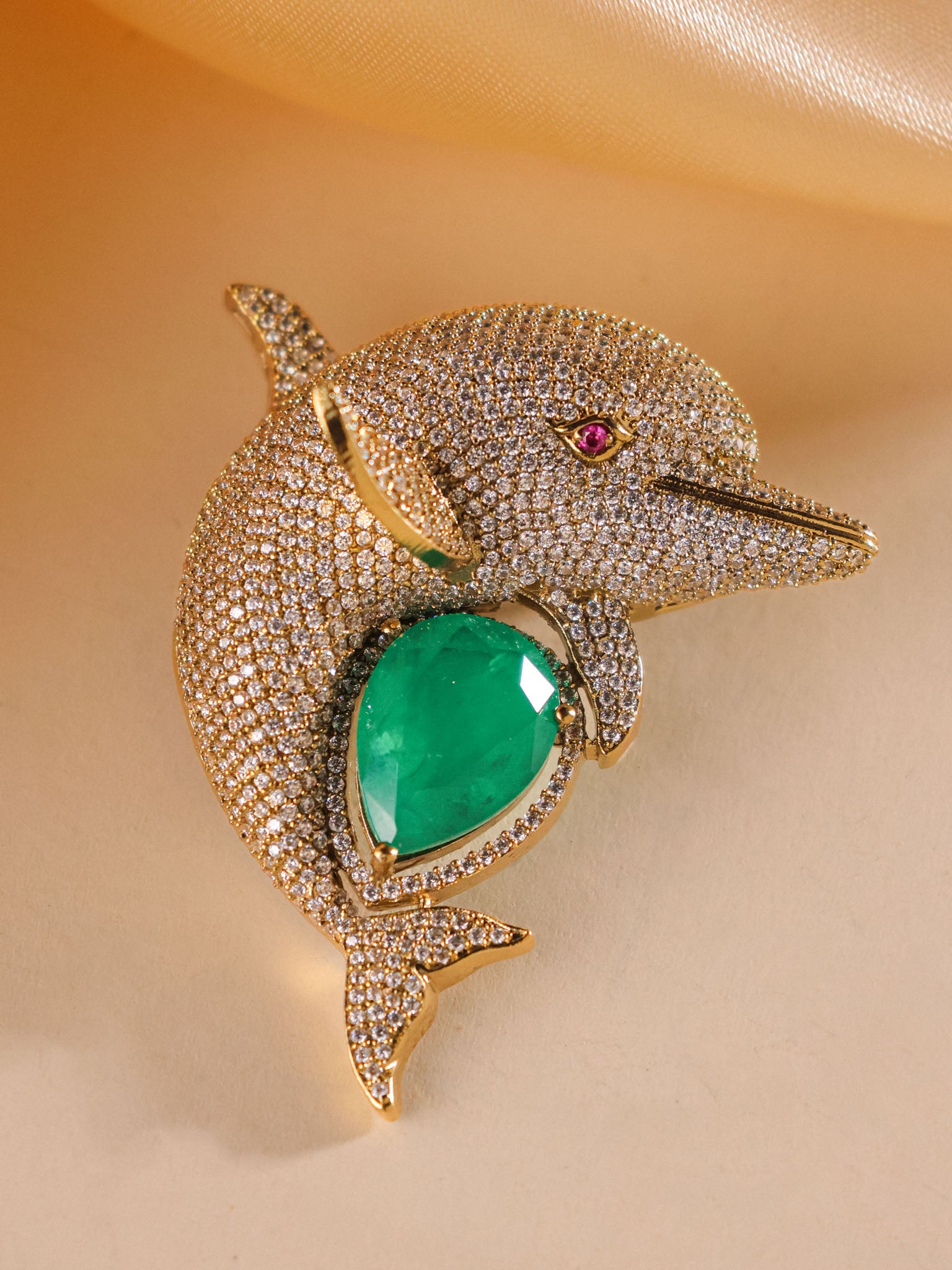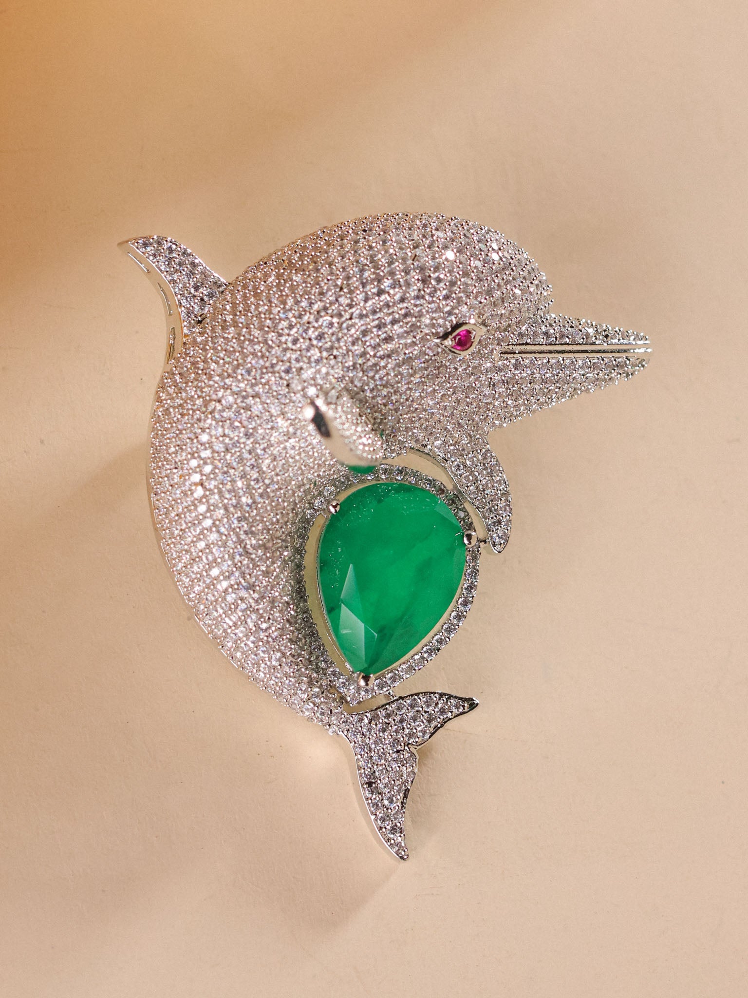 Oceanique Emerald Dolphin Luxe Brooch