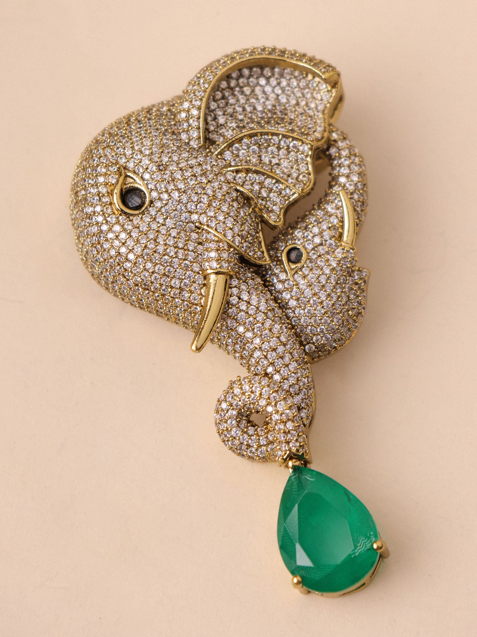 Elephant Emerald Brooch