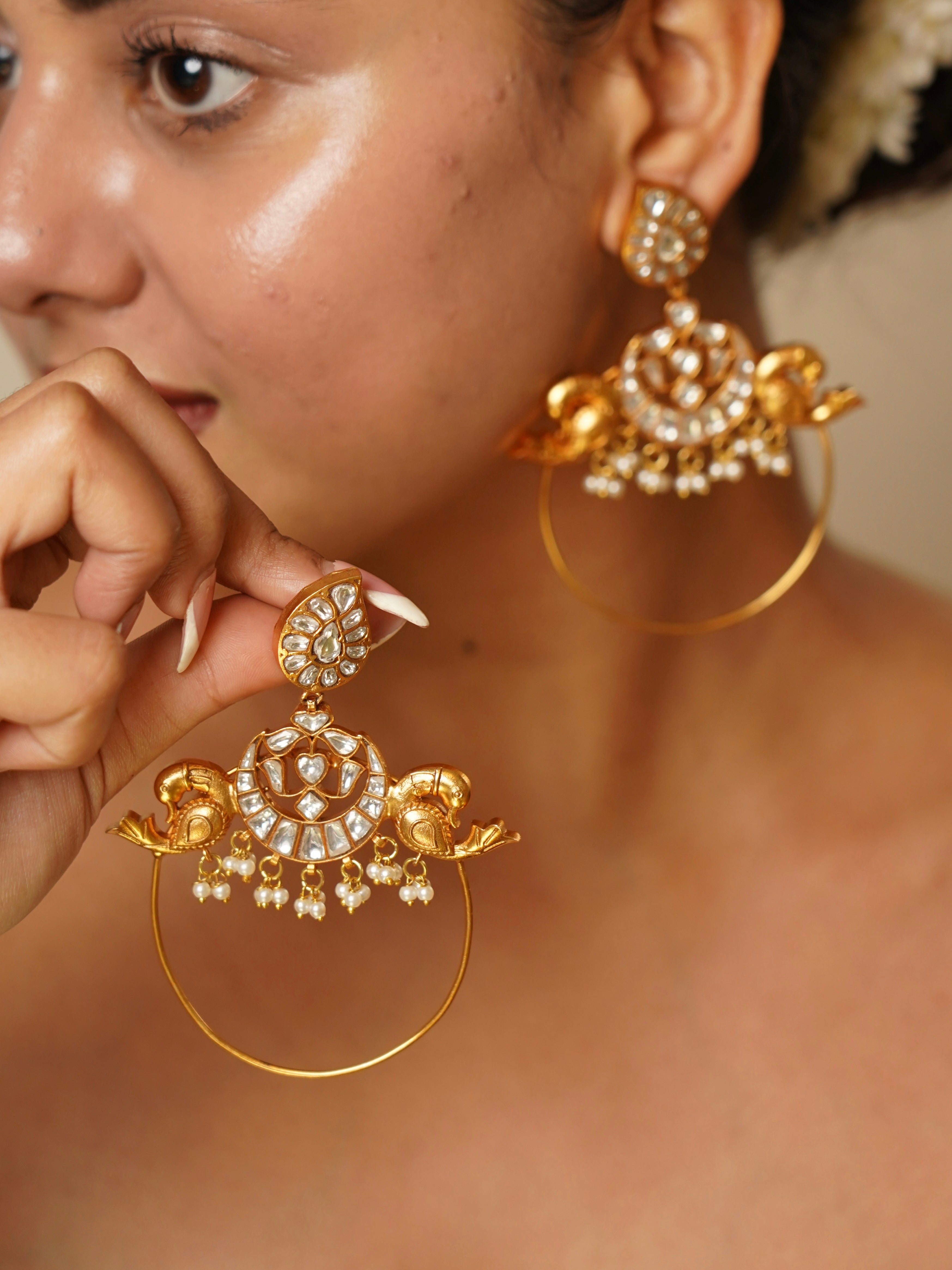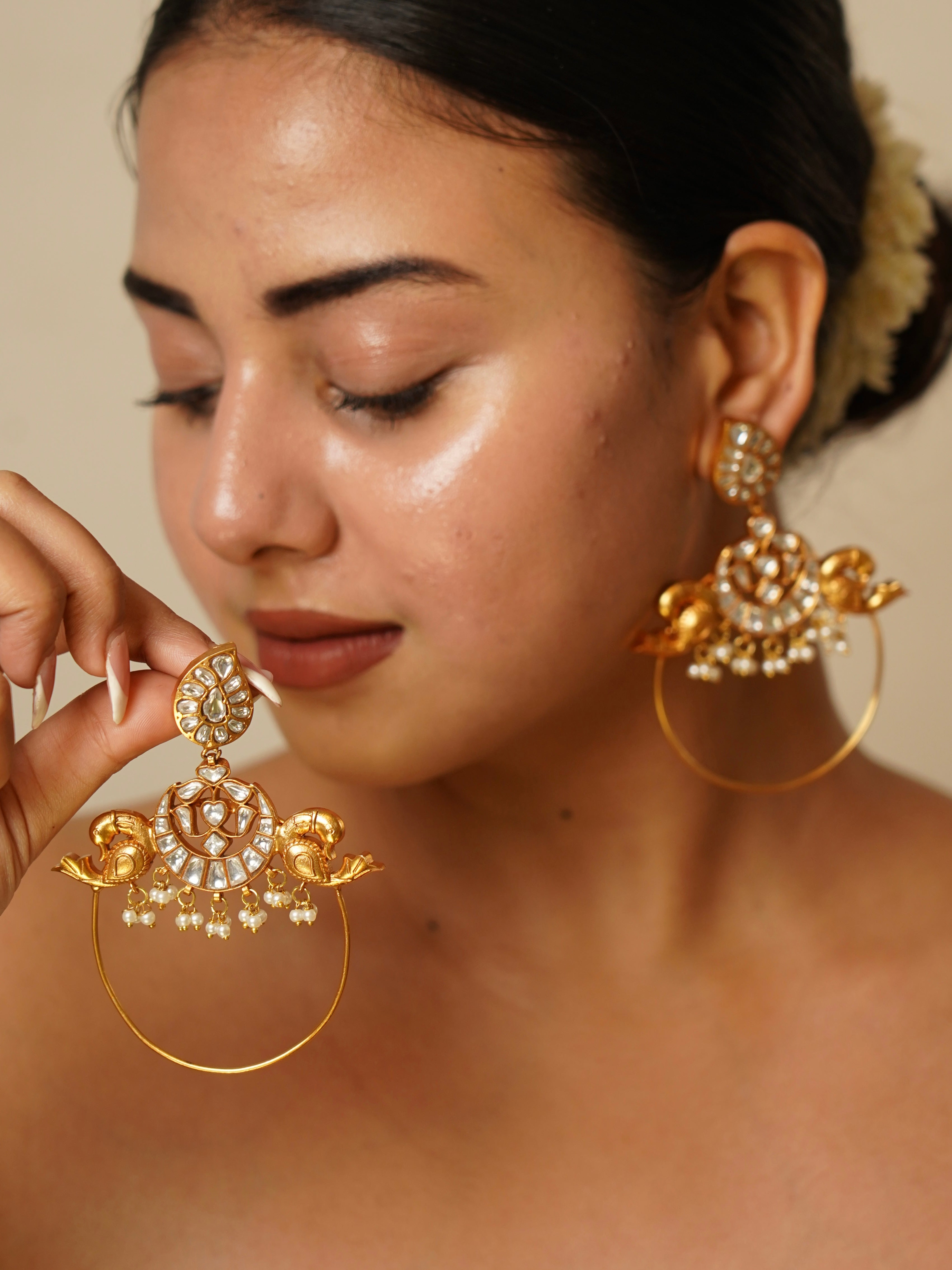 Noor Mahal Kundan Pearl Chandbali Earrings