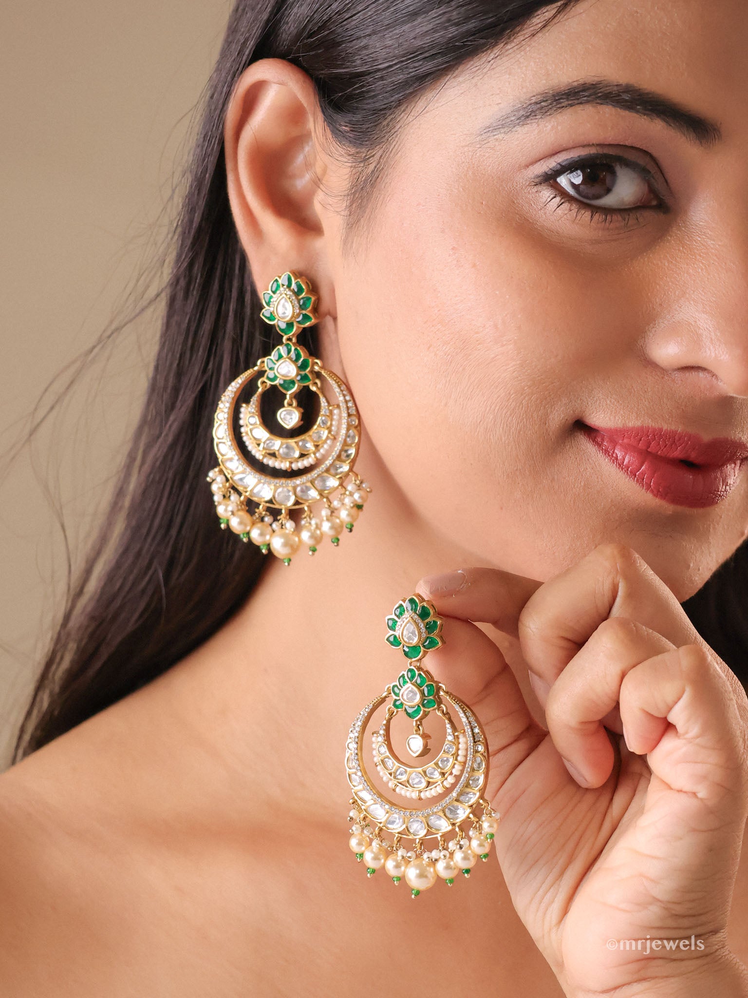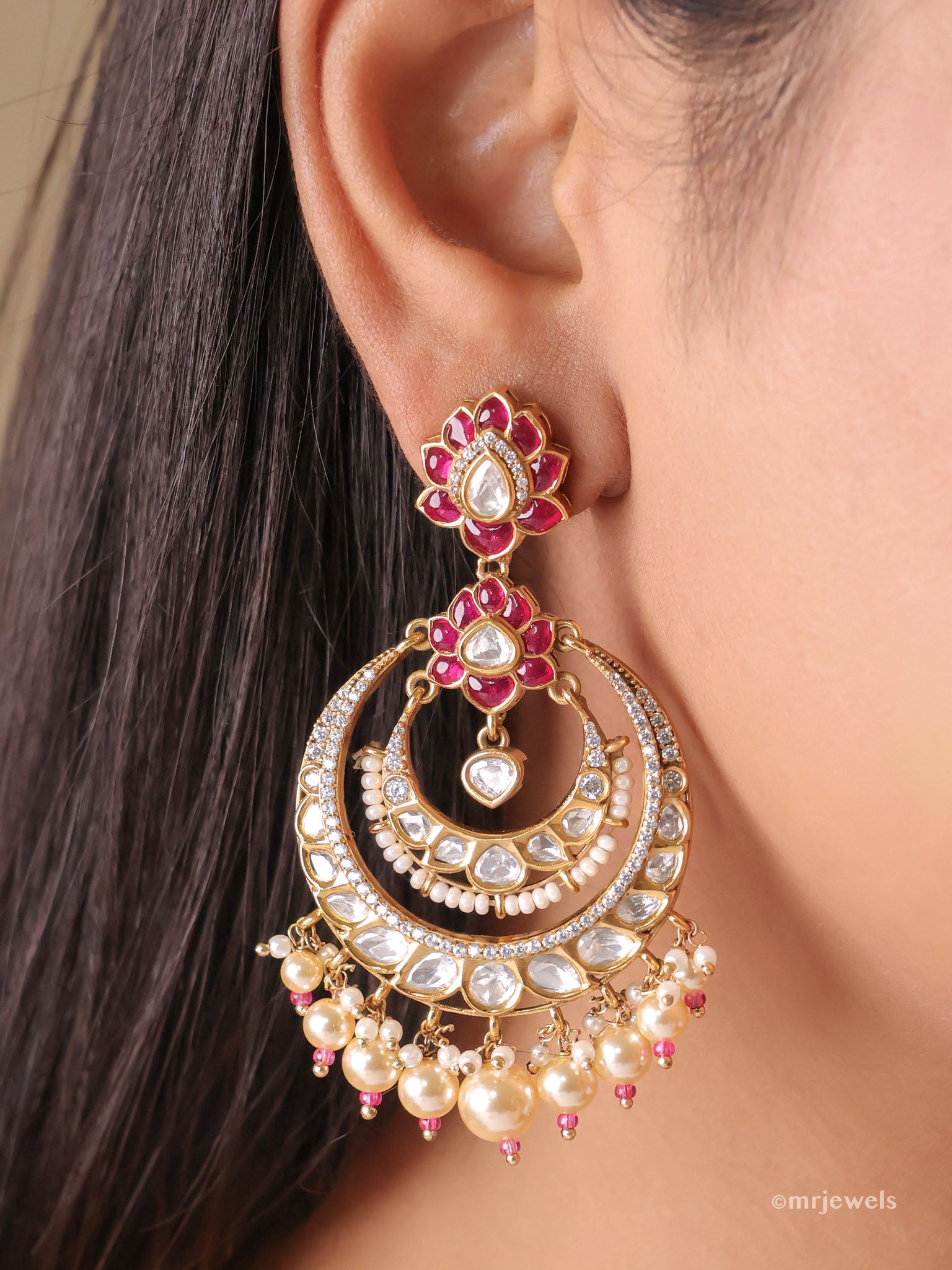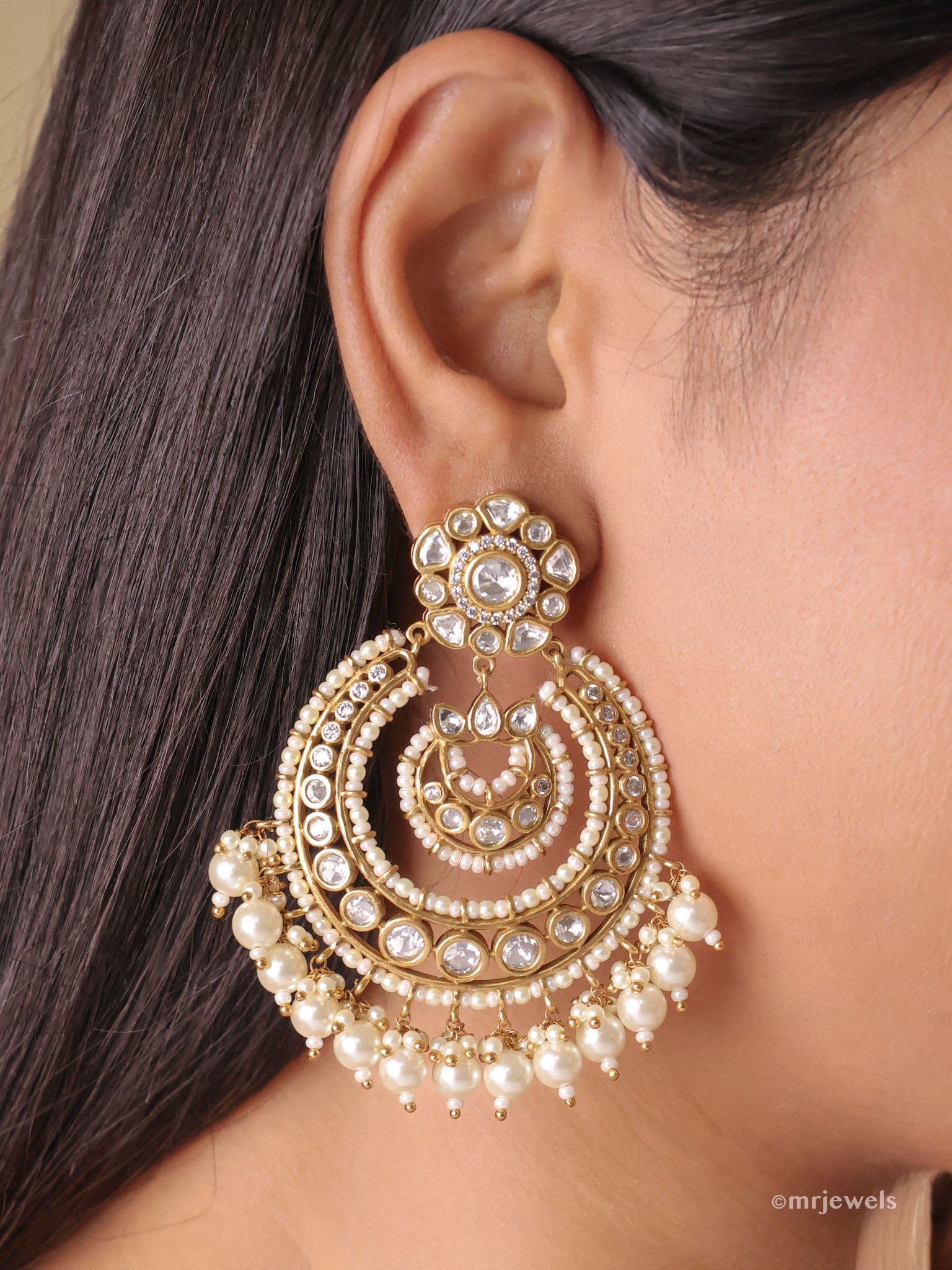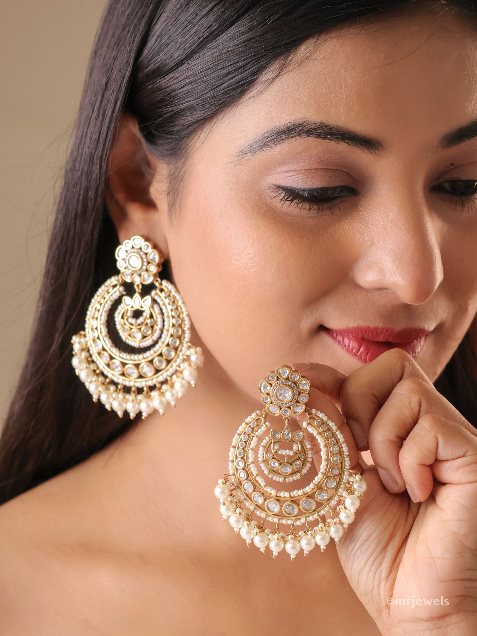 Kundan Chandbali Earrings with Pearls & Meenakari