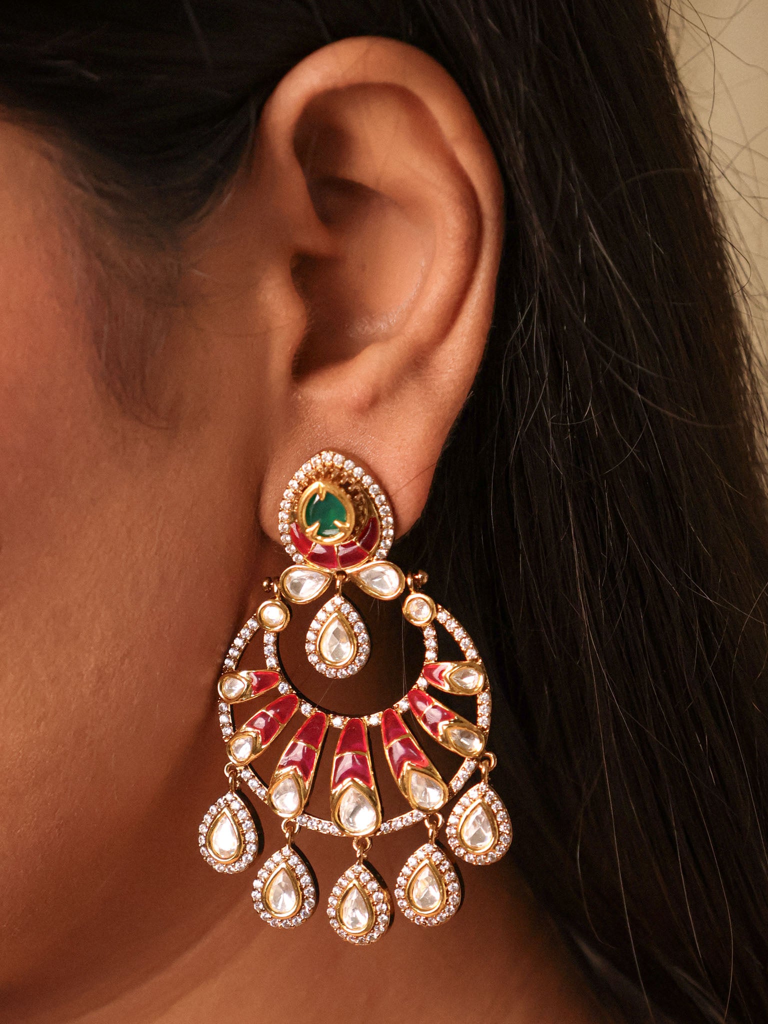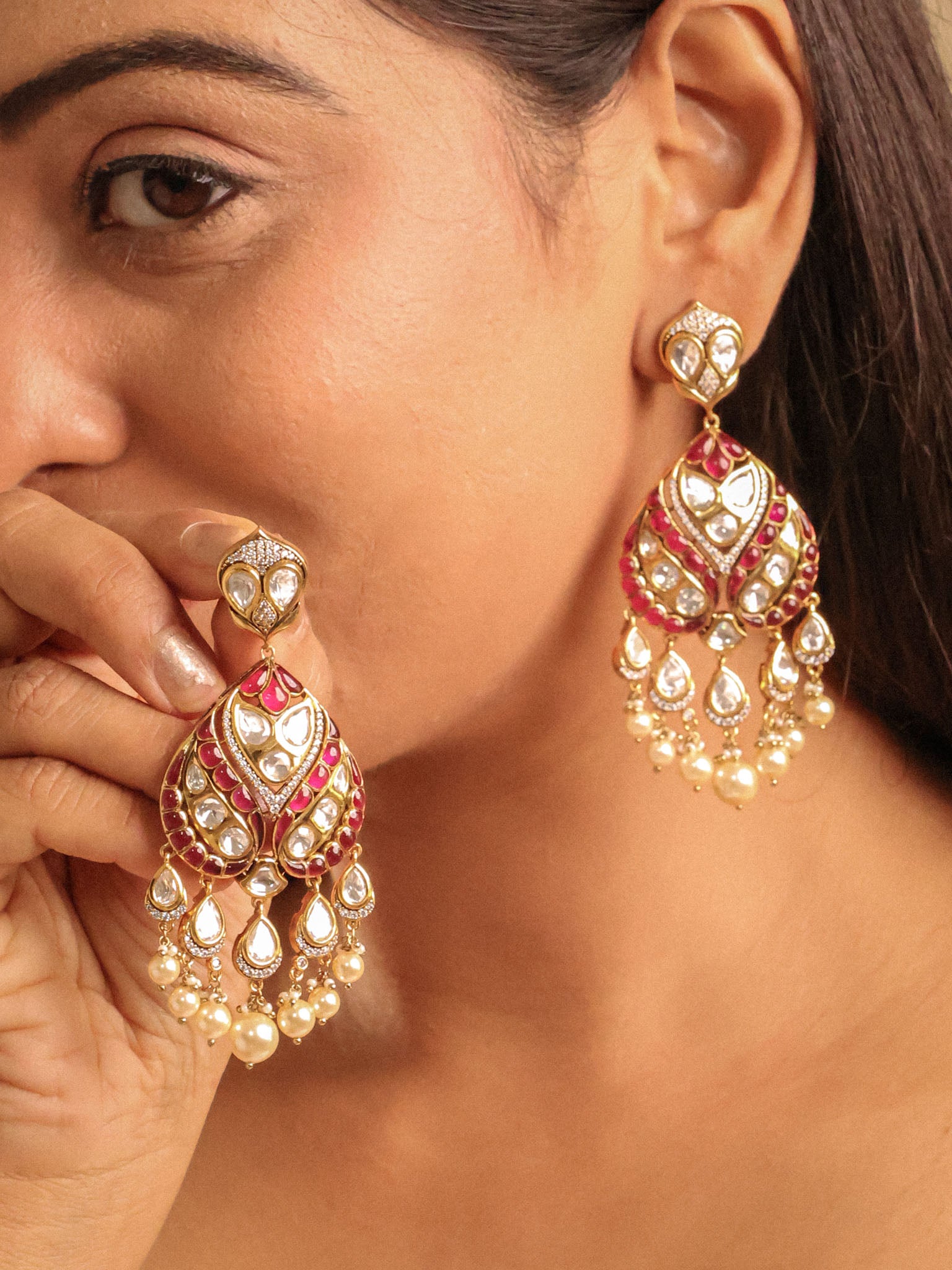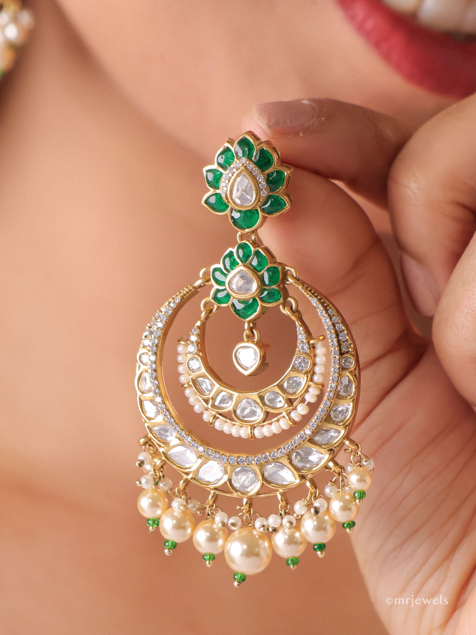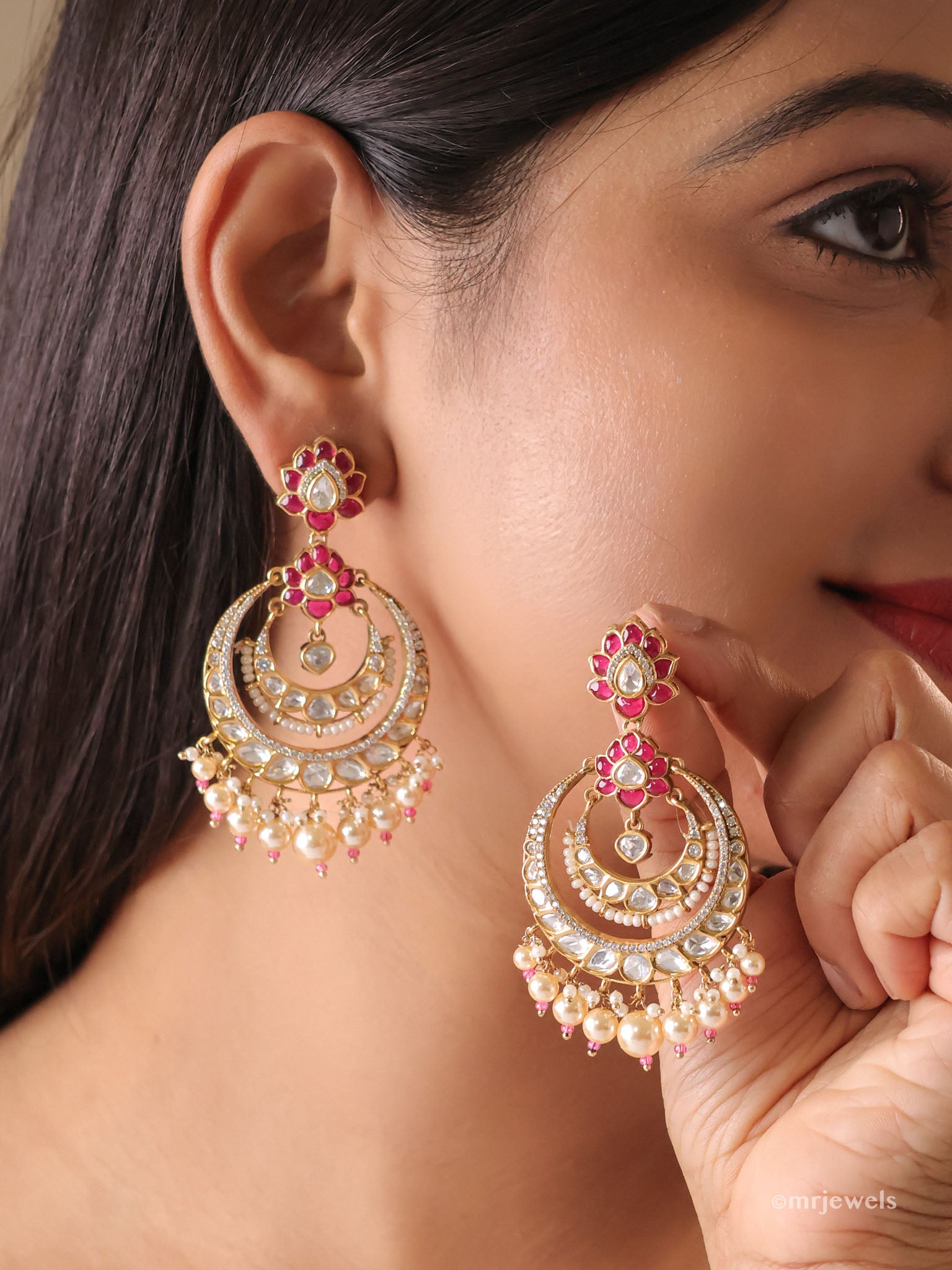 Kundan Chandbali Earrings with Pearls & Meenakari