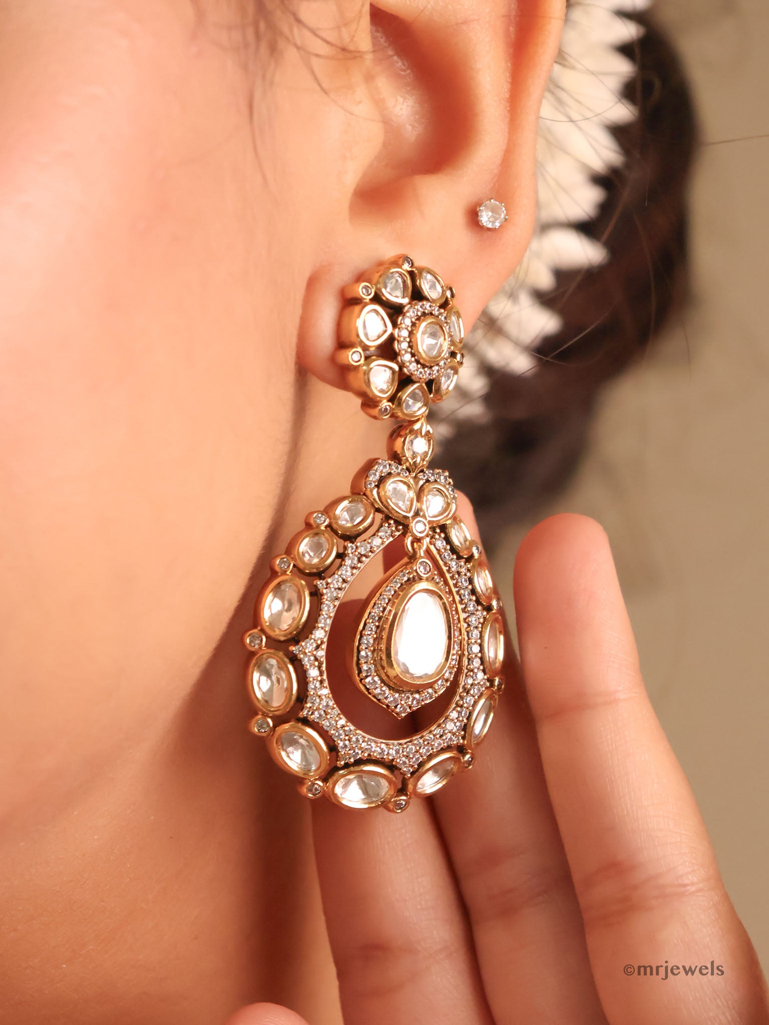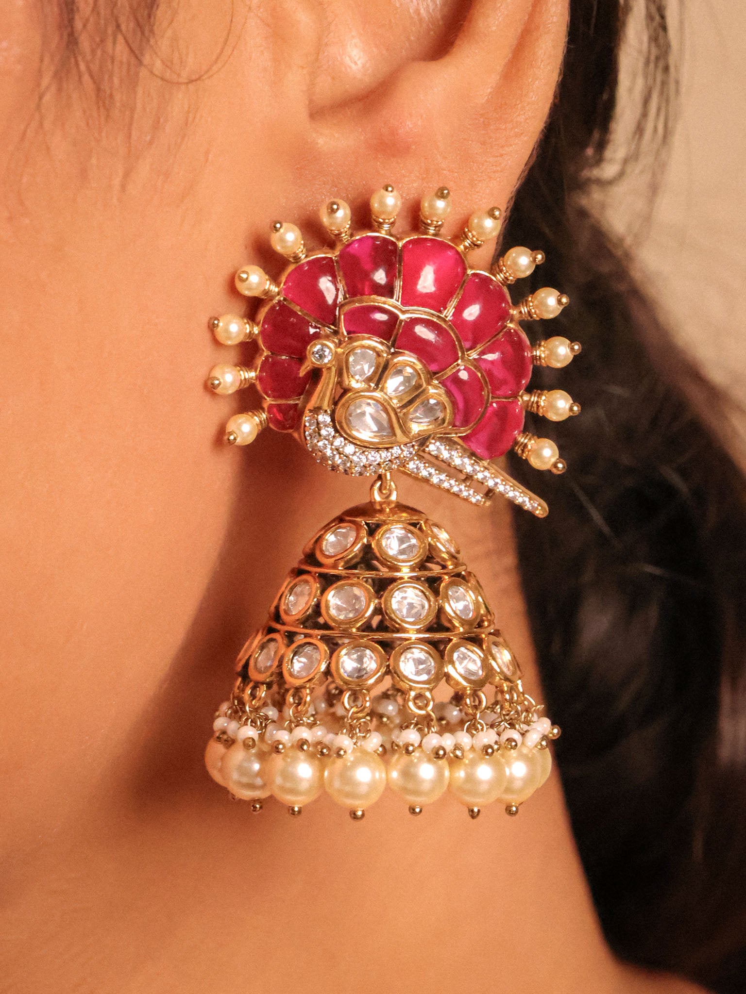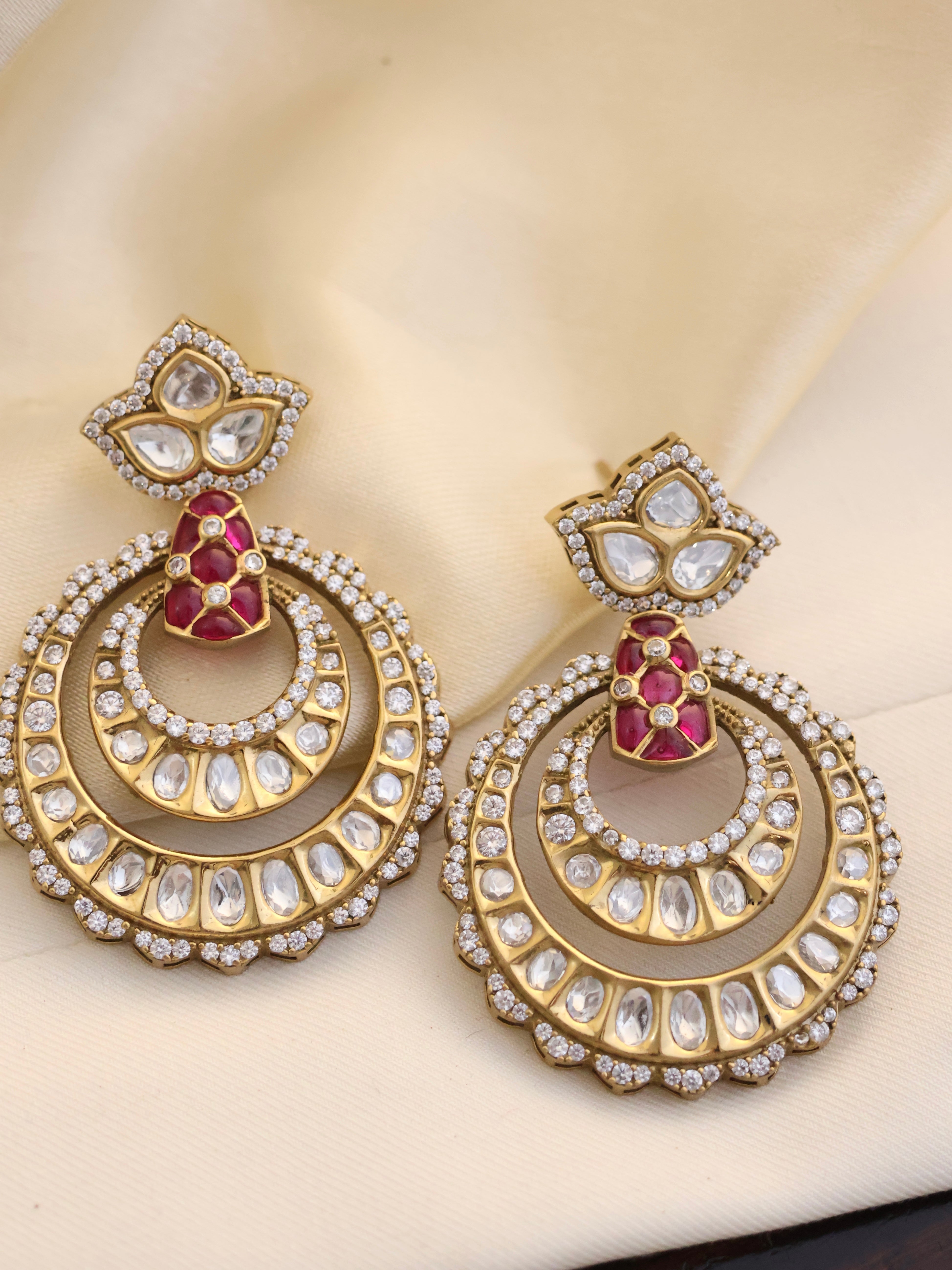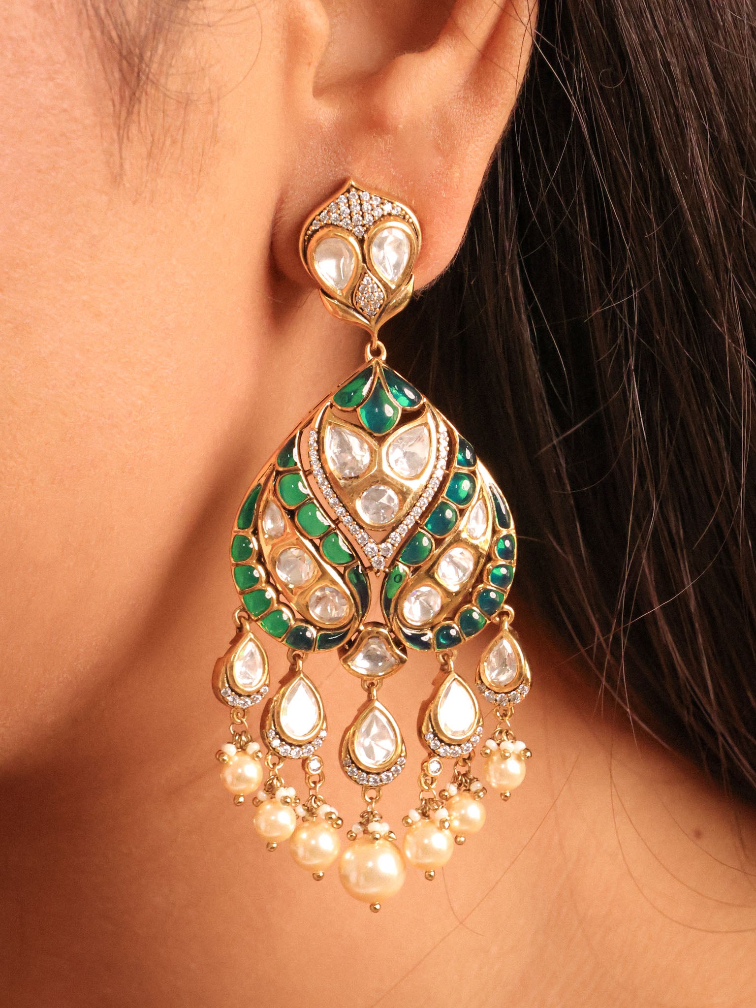 Kundan Chandbali Earrings with Pearls & Meenakari