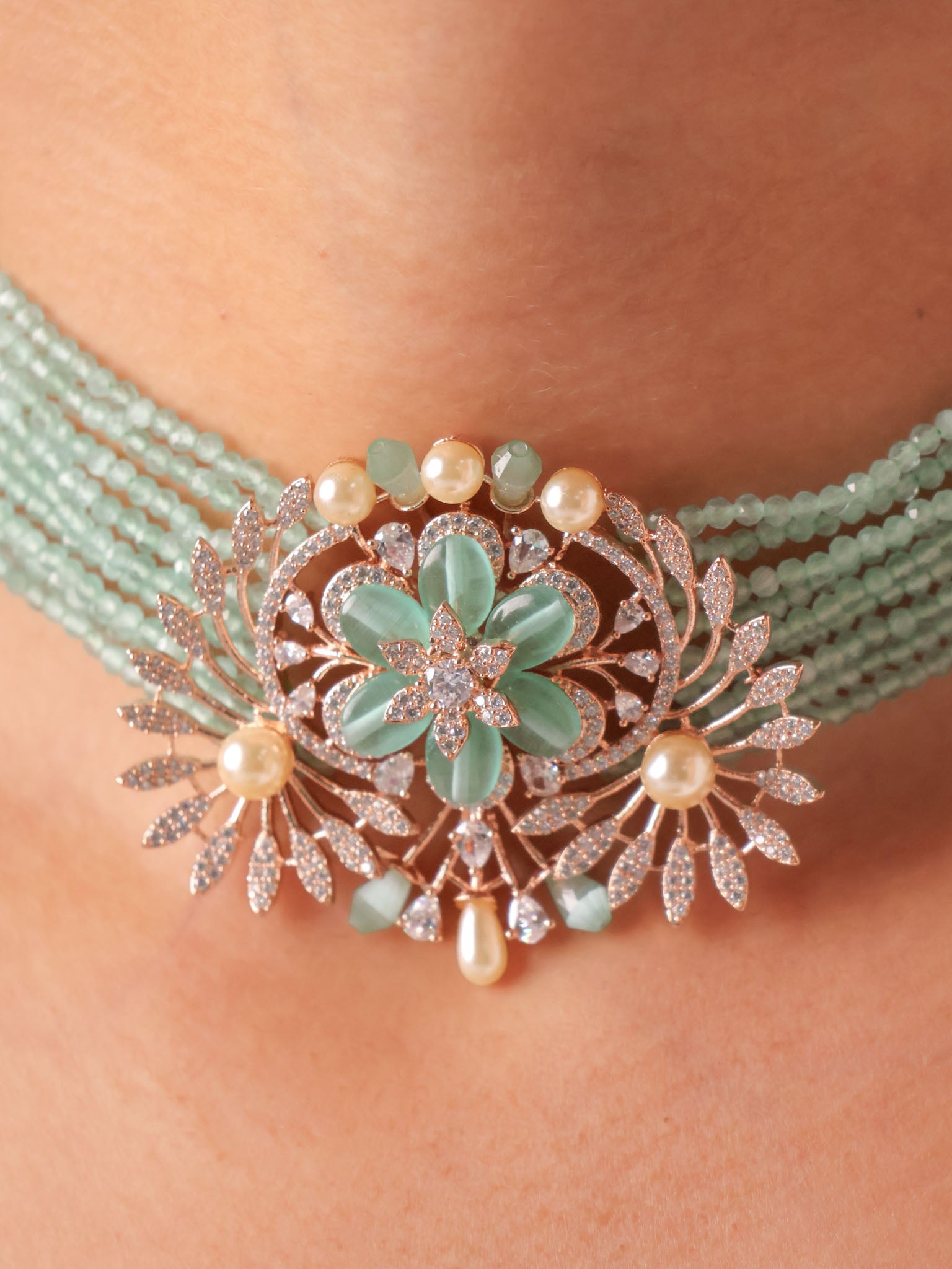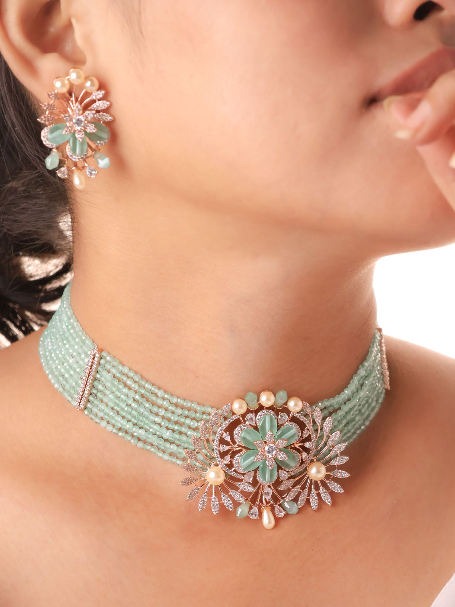 Mint Serenade Beaded Choker Set